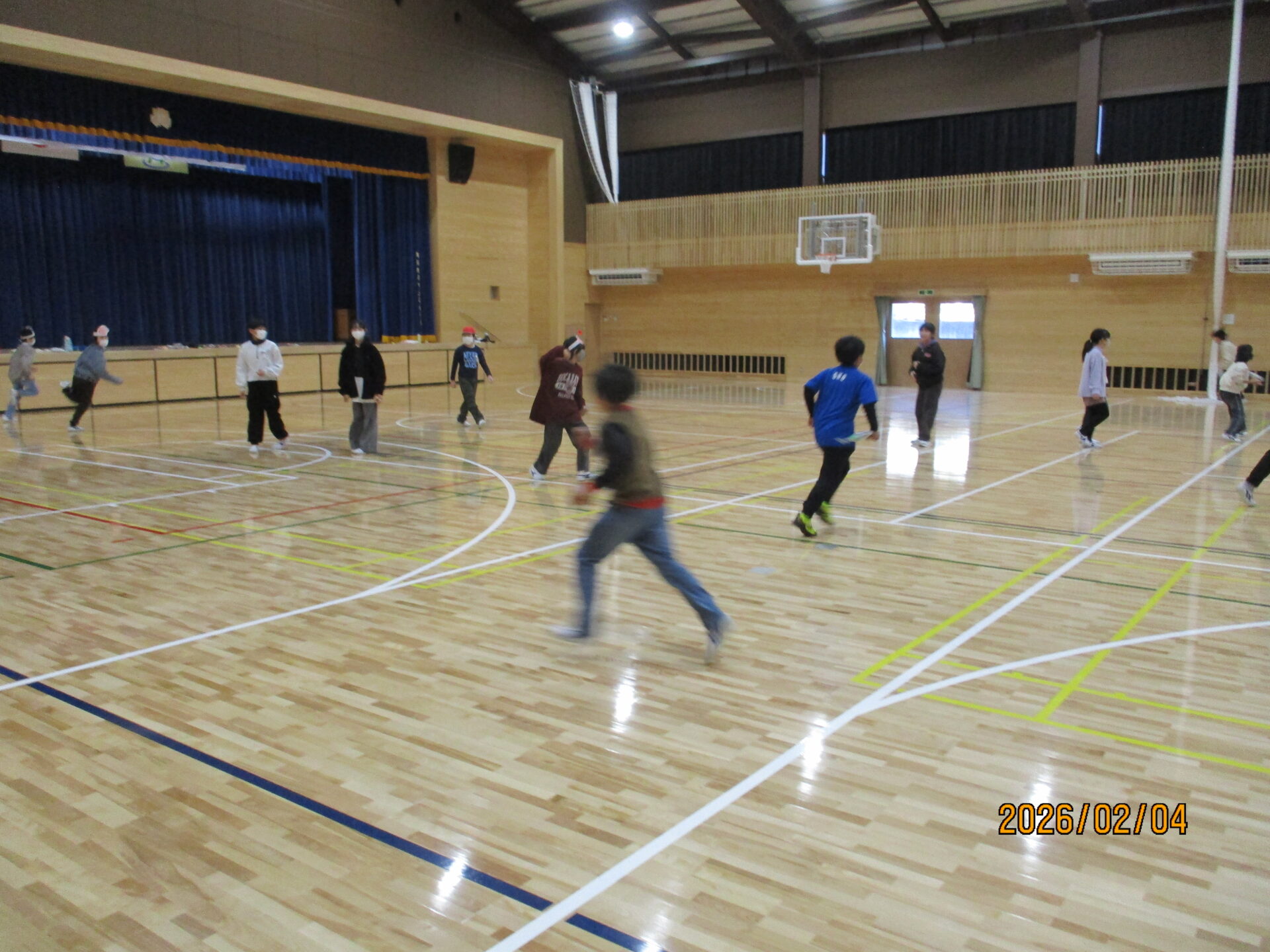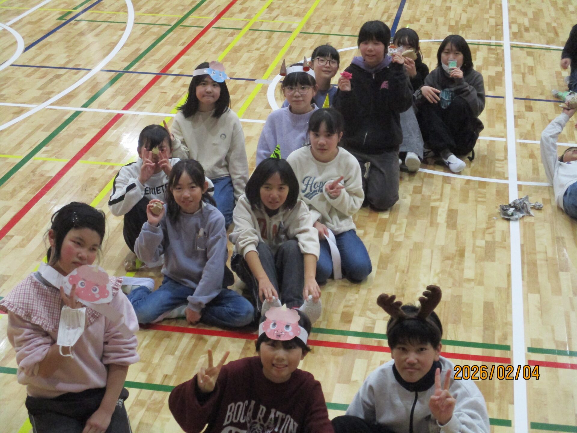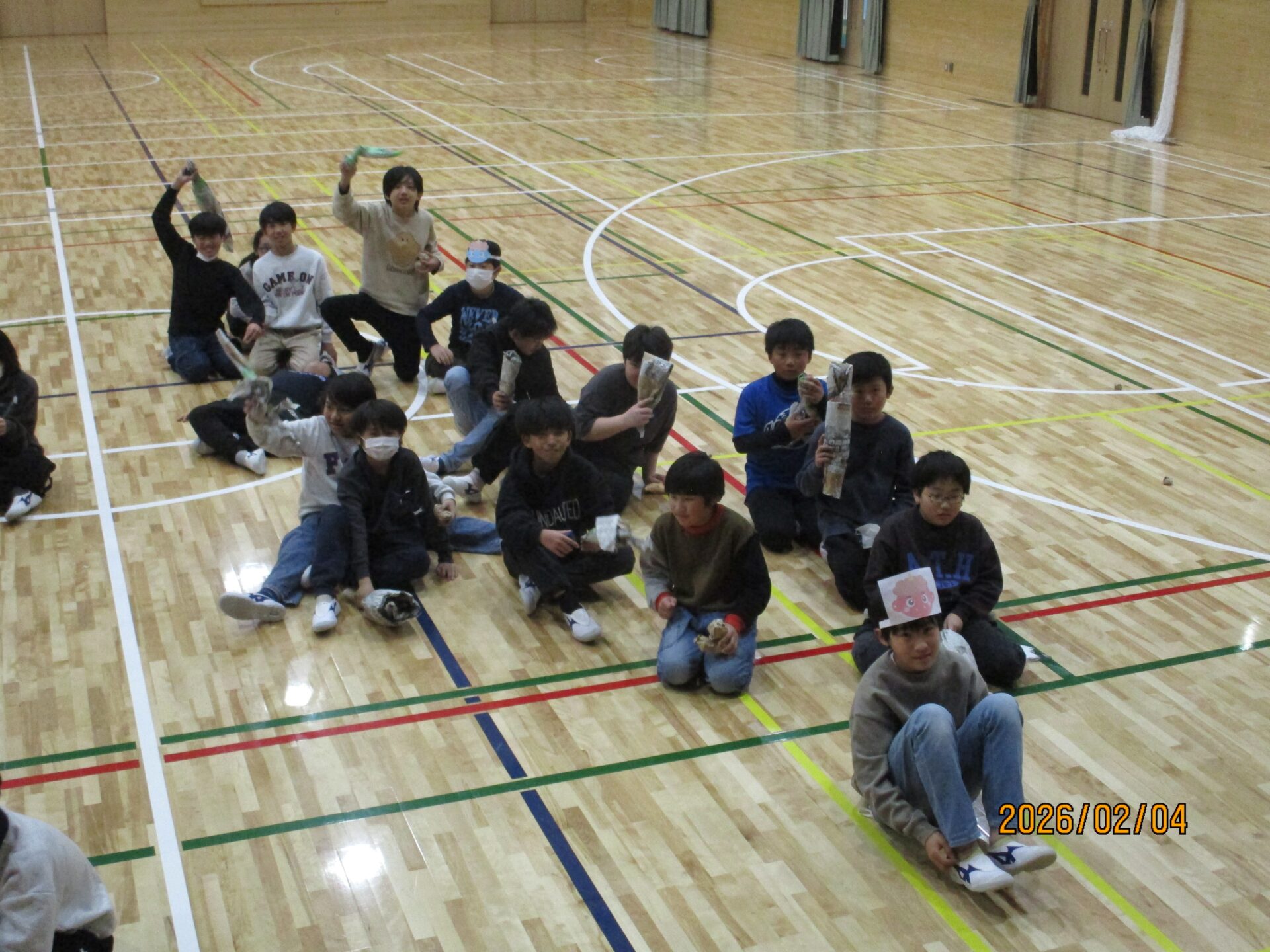 2026.02.05 5年生 節分お楽しみ会をしました! 管理者学校 今週は、節分ということもあり、5年生で節分お楽しみ会をしました。学級活動の時間にみんなで話し合い、「豆宝探しゲーム」と「仮面おにごっこ」の2つをしました。宝探しでは、大豆を折り紙で作ったケースに隠し、2チームに分かれて探しました。仮面おにごっこでは、鬼の仮面や金棒を持った人が逃げる役となり、追いかける側は、新聞紙を丸めたボールを豆と見立てて投げながら追いかけました。5年生も残り2か月を切りました。みんなで楽しい思い出を作っていきましょう。 #5年生
