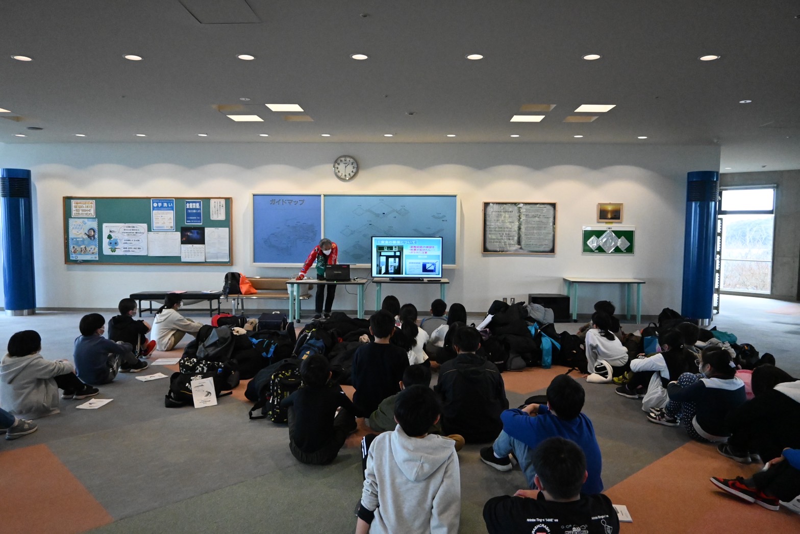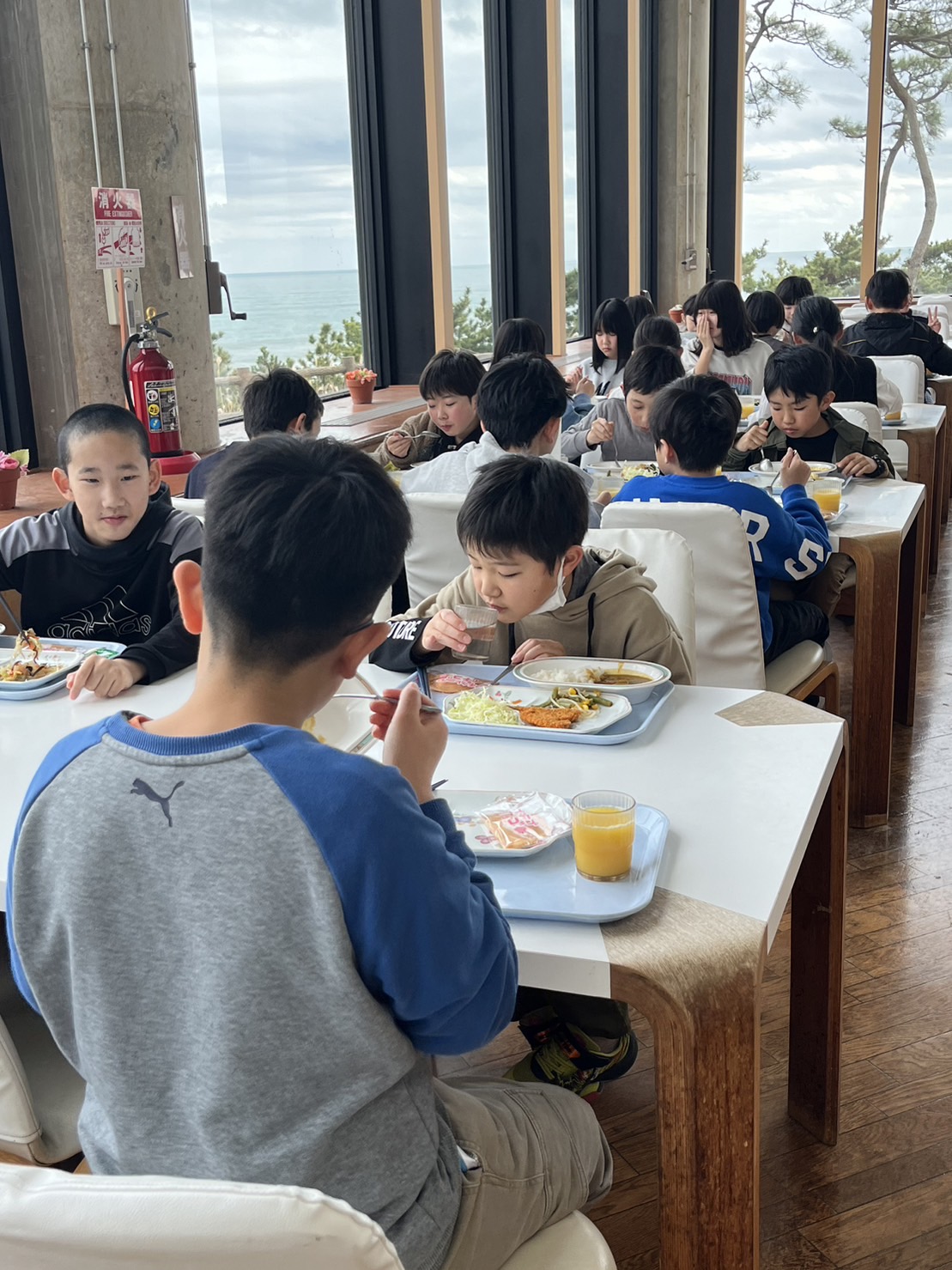 2024.01.23 5年生 臨海自然教室② 管理者学校 道の駅での休憩を挟み、『とちぎ海浜自然の家』に無事到着しました。 本日の昼食メニューは、みんな大好き【カレーライス】です。デザートもついています。 美味しくて、皆ぱくぱく食べちゃいます。ちなみに、今日の箒根学園の給食は、ひじき&卵焼きでした。こちらも美味しかったですよ。 腹ごしらえをしたら、入所式&オリエンテーション。館内の使い方などの説明を受けました。3日間お世話になります(゚゚)(。。)ペコッ #5年生