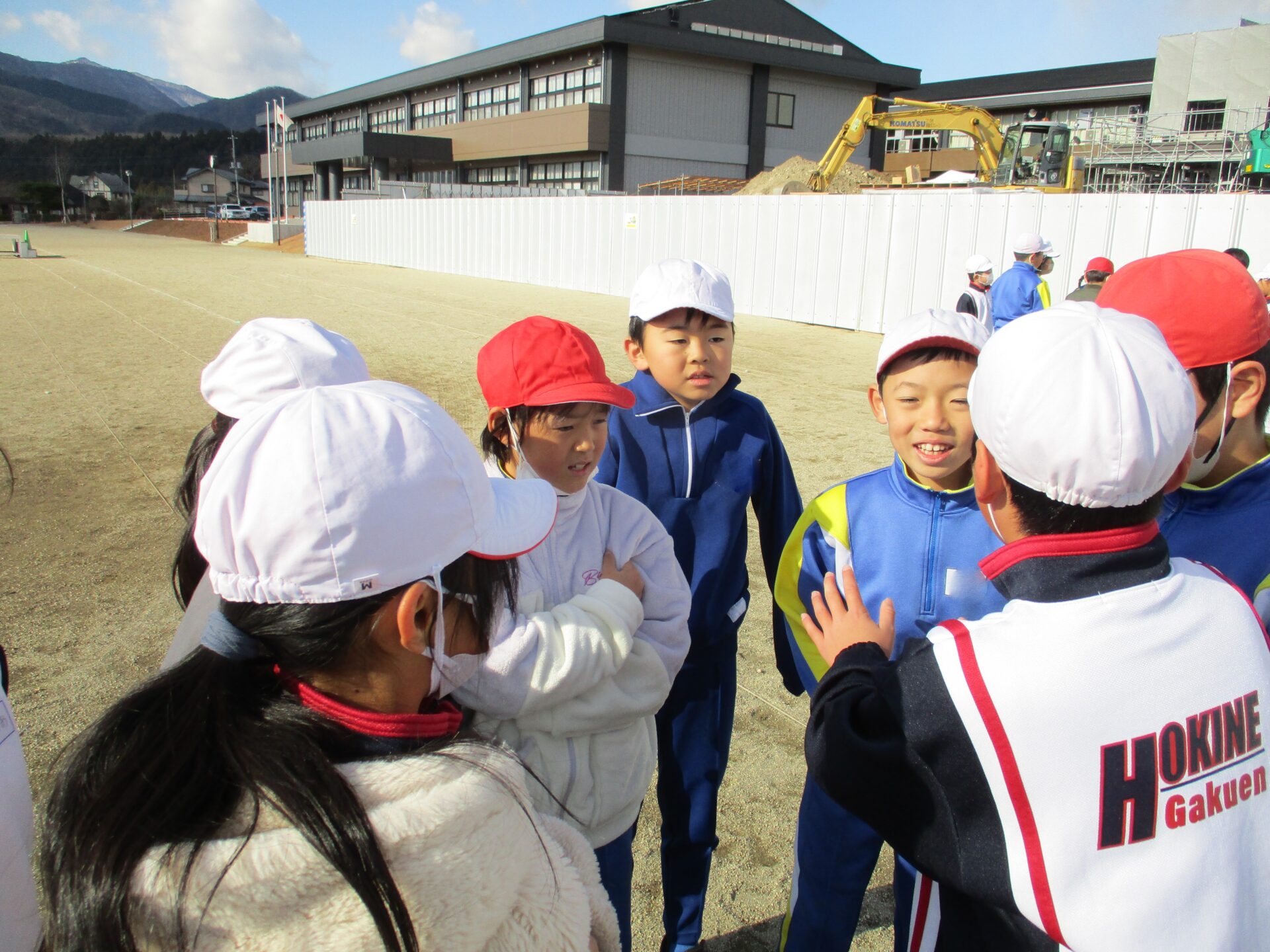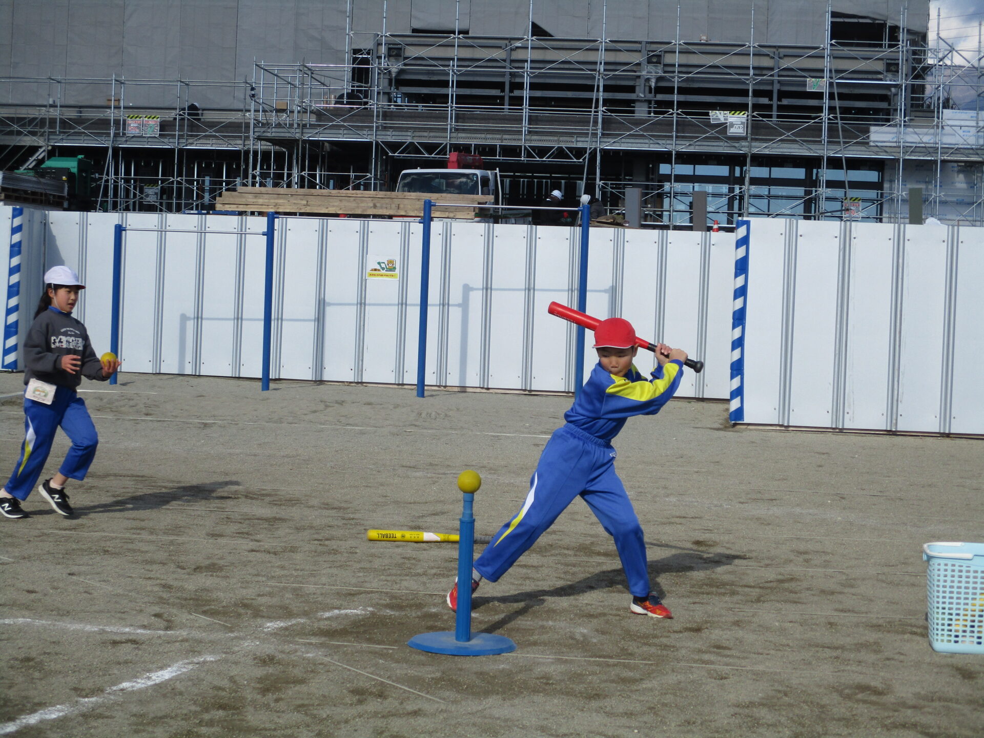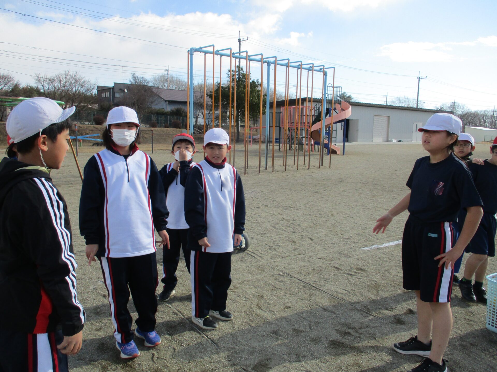 今日の体育は三角ベースボール。野球のルールを簡易化したボールゲームを行っています。本来の野球ならバットで打ちますが、三角ベースボールではバットで打ったり、ボールを投げたり蹴ったりと自分が得意なやり方で行うことができます。試合をする中で、上手くいかないことは相談してルールを変えてきました。