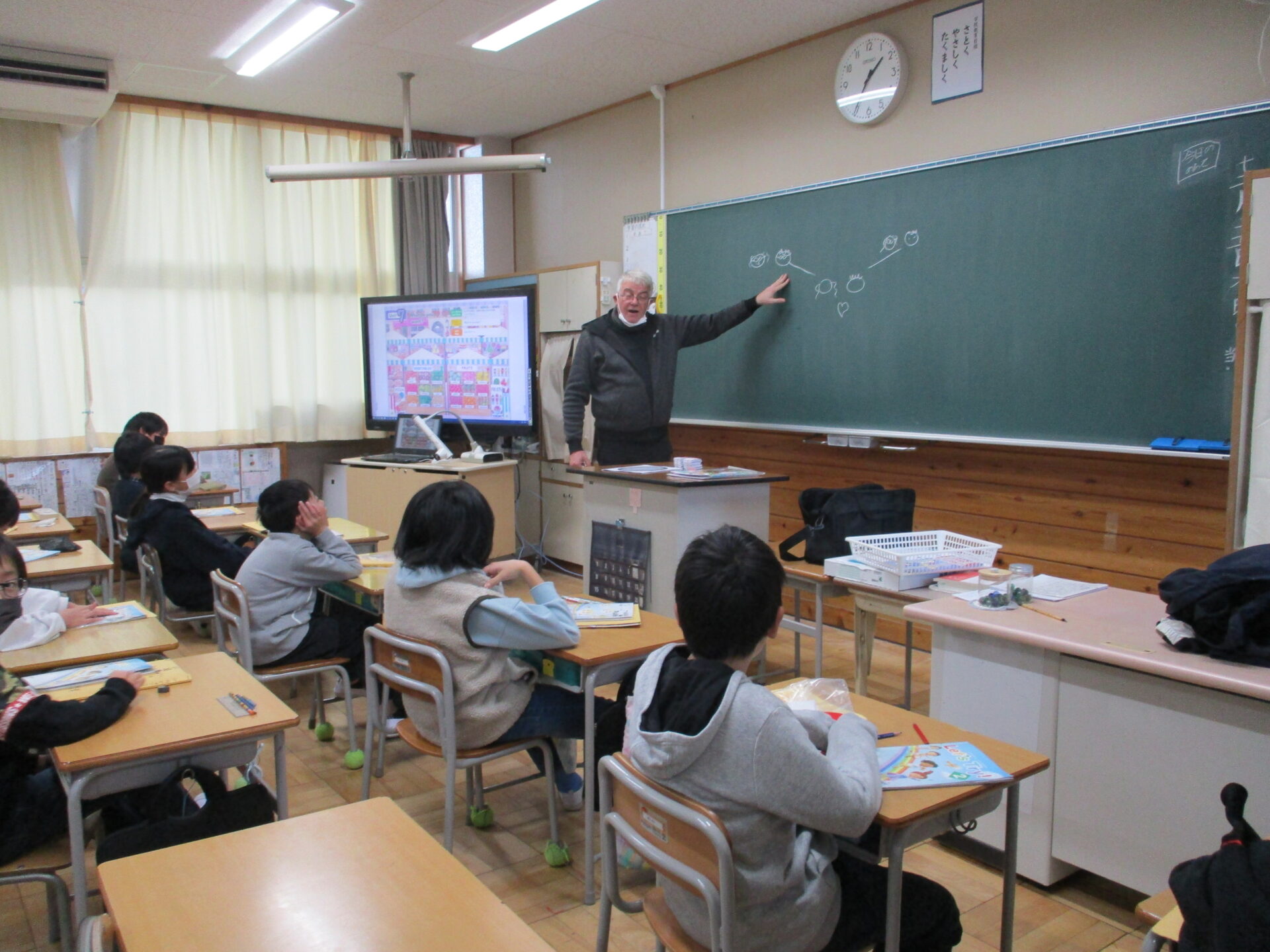 そして今日はALTの先生との最後の授業でした。子供たちも寂しさを感じつつも、最後の授業を楽しく活動していました。授業の終わりには英語でお礼を伝えたり、ALTの先生と記念撮影をしたりしました。M先生楽しい授業をありがとうございました。