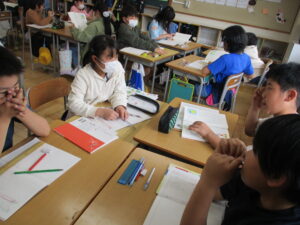 2023.04.21 4年生 元気に過ごしています 管理者学校 箒根学園がスタートして2週間が経過しました。授業では積極的に発言したり、休み時間には友達と遊んだりしています。 物語を読んで、不思議に思ったこと、気になったことを問いの形にして考えてきました。今日はグループでその問いの答えを考え、まとめていました。全員が協力してまとめようとする姿が見られました。 考えてもらったまとめを月曜日に発表してもらう予定です。どんなまとめになっているか楽しみです。 #4年生