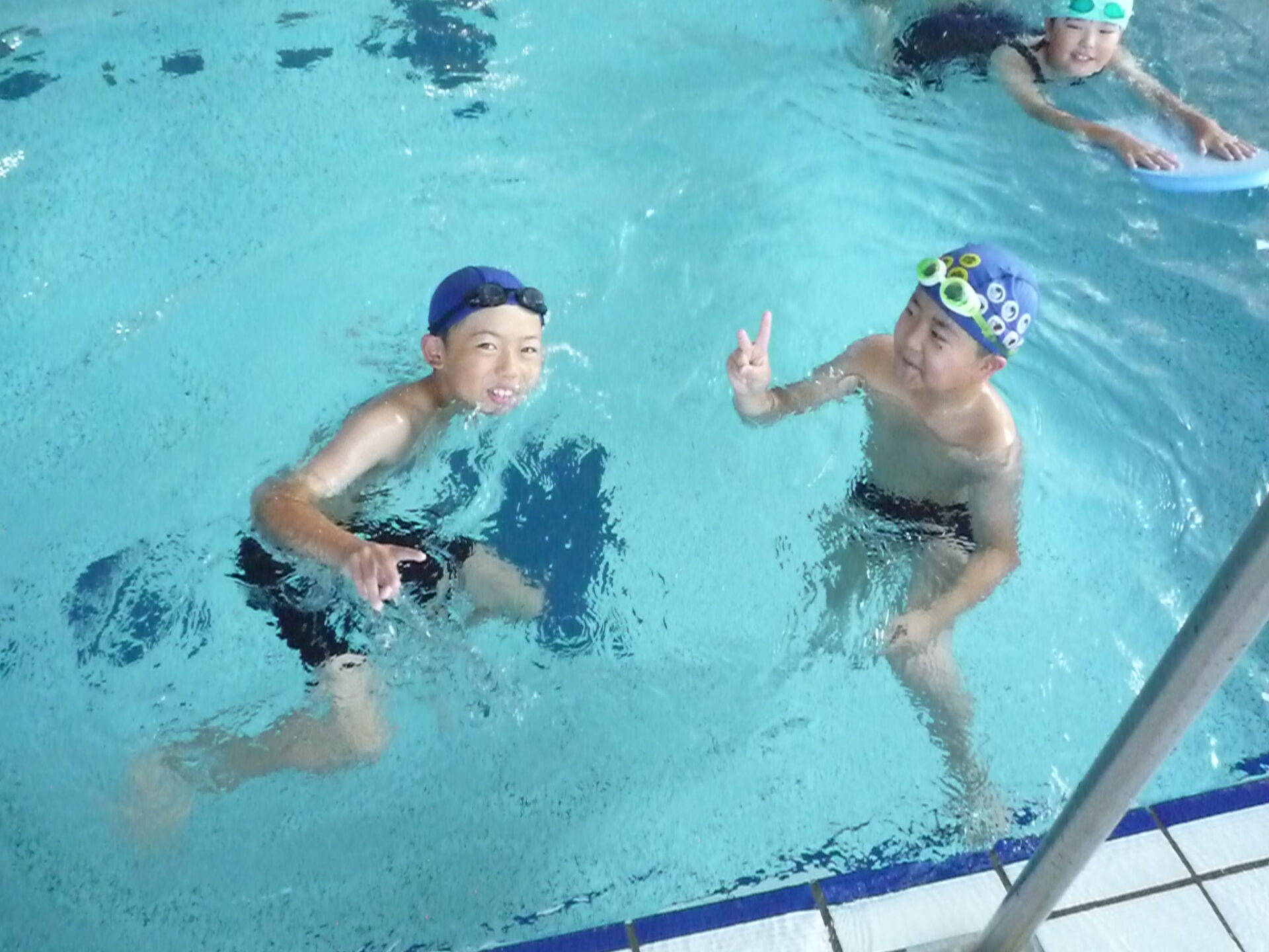2023.08.29 2023.09.01 4年生 水泳学習 管理者学校 夏休みが明け、4年生28名全員が元気に登校してくれました。久しぶりに会う友達も多かったようで、様々な所で夏休みの出来事を話していました。 学校が始まり2日目ですが水泳学習を行いました。 それぞれのコースに分かれて泳ぎの練習をしました。最初はビート板で泳いでいた子が、ビート板なしで泳いでみたり、水に顔をつけられなかった子が少しずつつけられるようになったりと、前回の水泳学習よりも上達しているなと感じました。 今年の水泳学習は終わりましたが、来年も楽しみですね。 #4年生