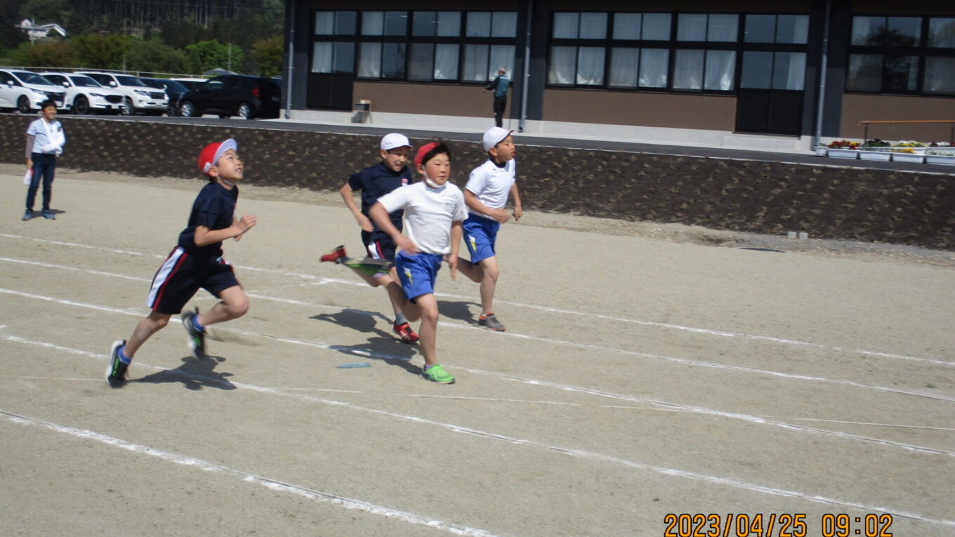 体育では、50m走の練習をしました。どの子も力強い走りで、体育祭が楽しみです。