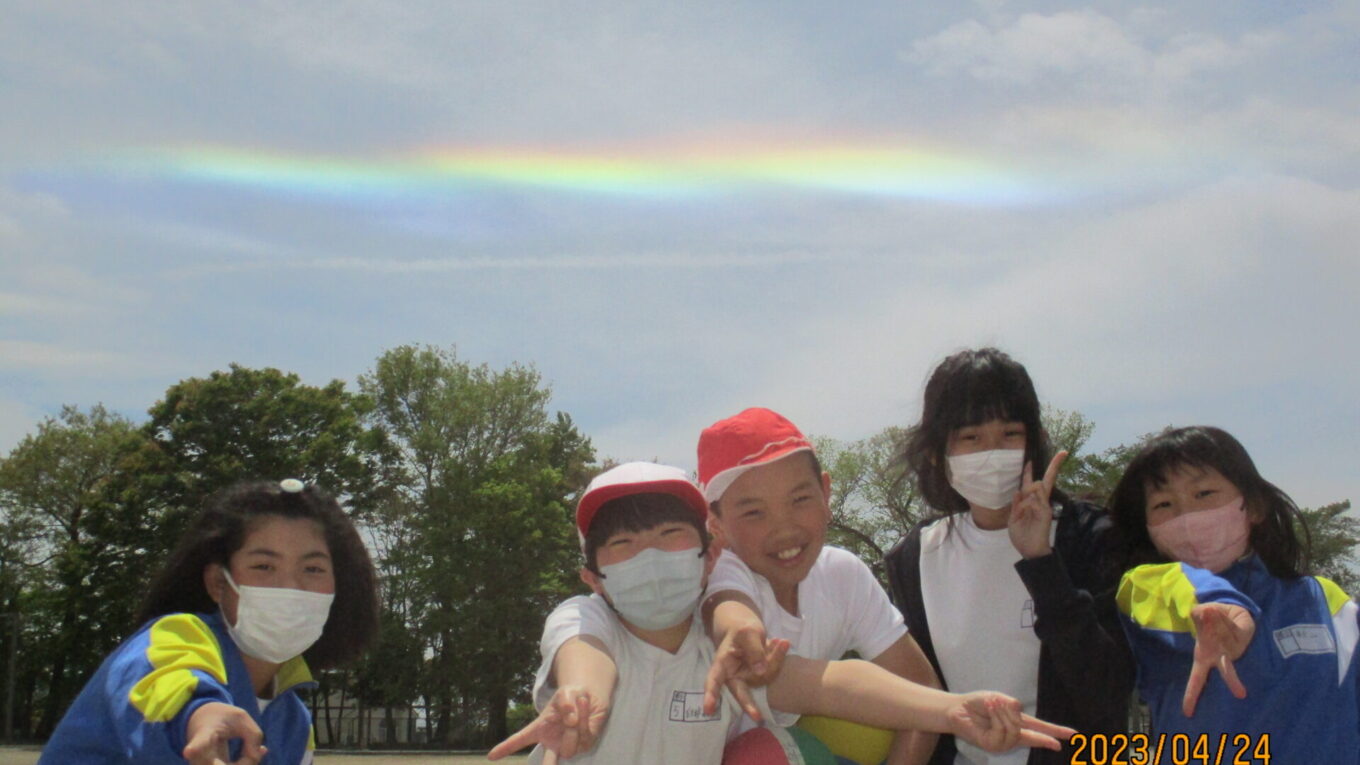 そして昨日は、空を見上げるとまっすぐでとてもきれいな虹が出ていました。子供たちの素敵な笑顔にほっこりした「ちょっといいこと」でした。