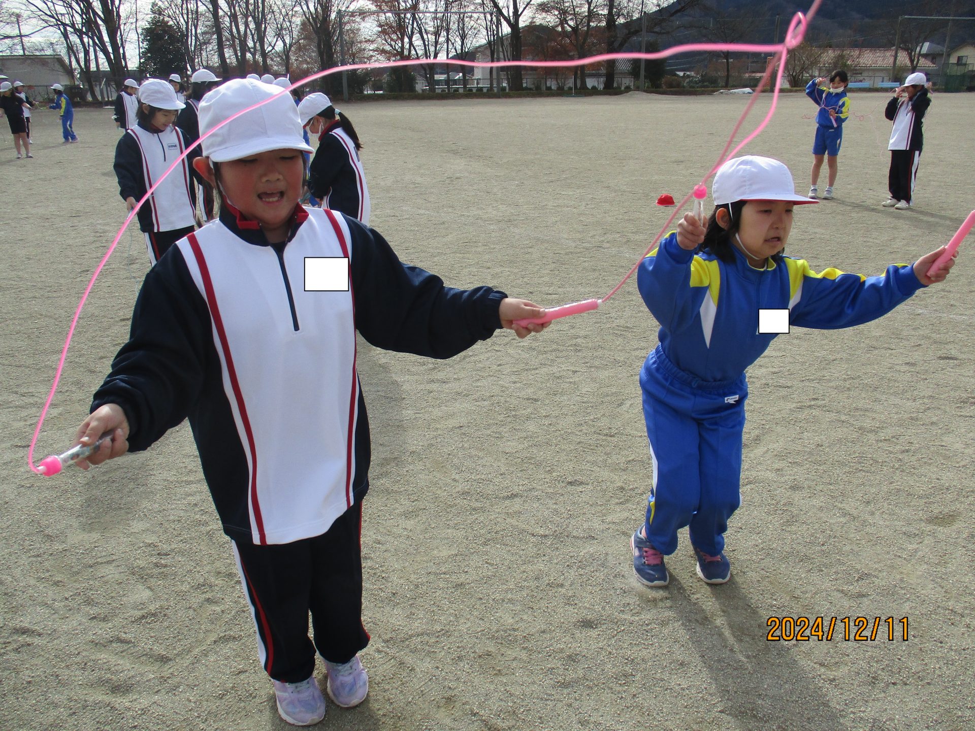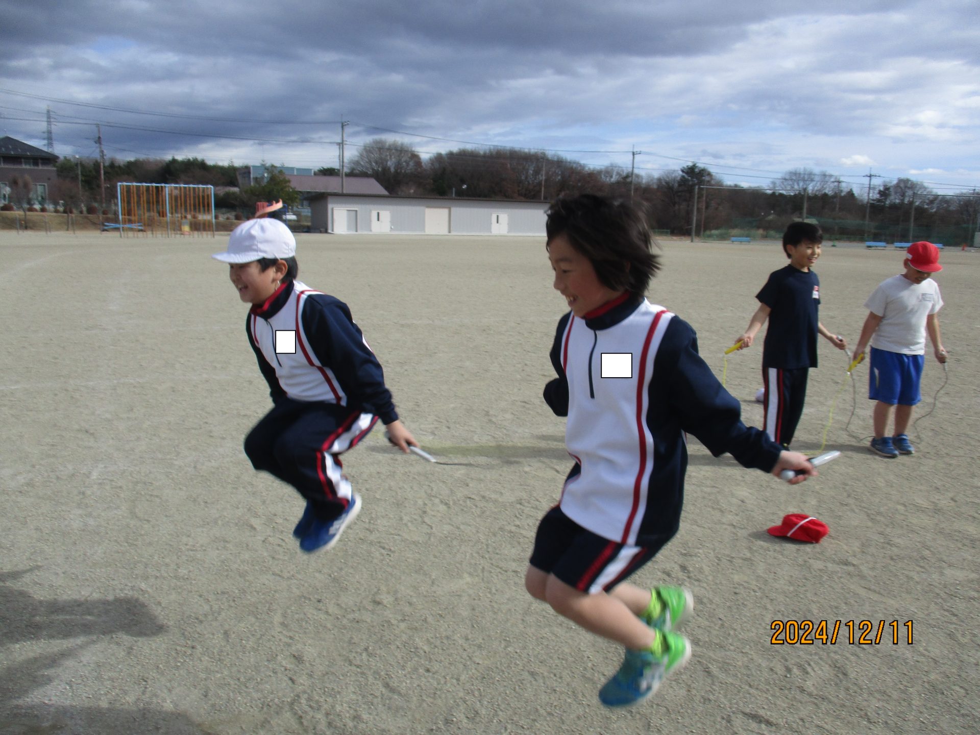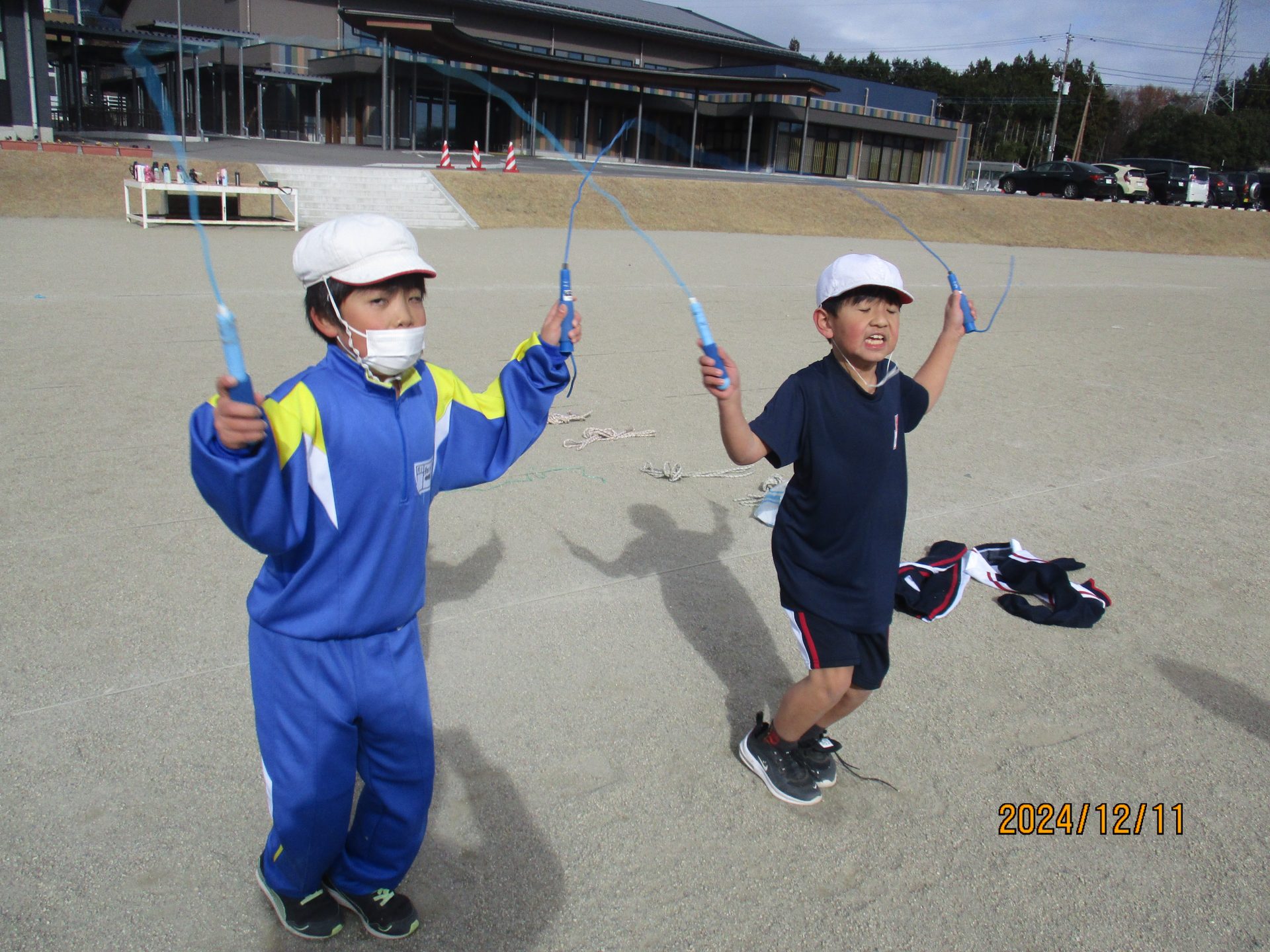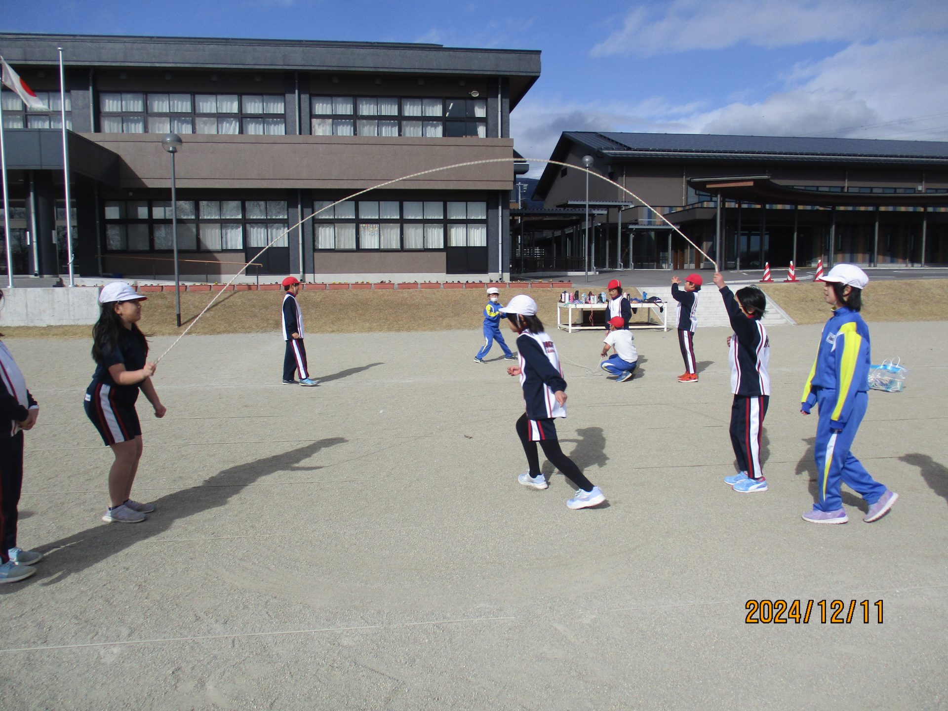 2024.12.11 3年生 なわとびの練習 管理者学校 体育の学習でなわとびの練習が始まりました。友達と息を合わせて一緒に跳ぶ技を練習しました。 大縄跳びでは、8の字跳びの練習中です。だんだん跳べる回数が増えてきました。 #3年生
