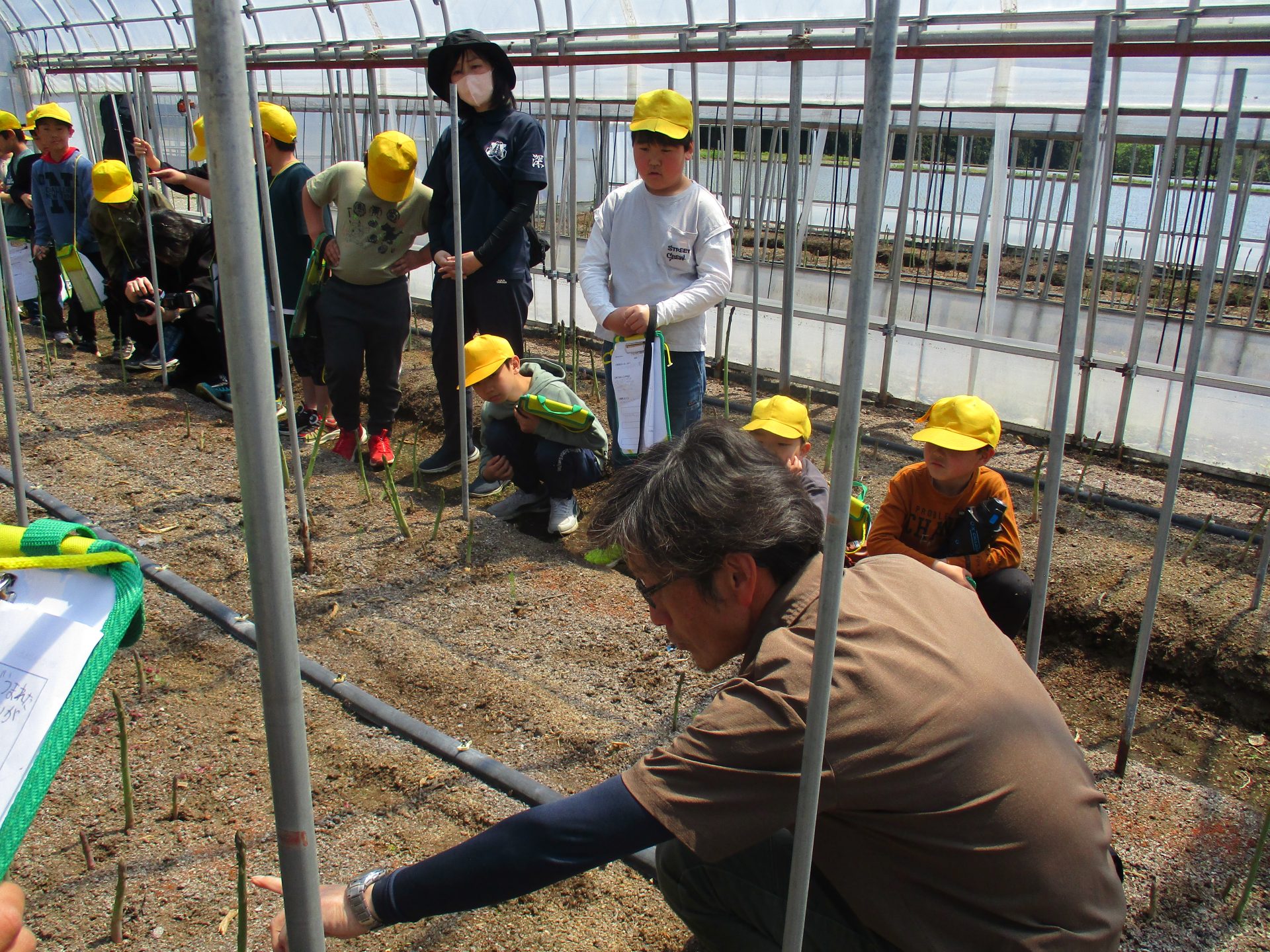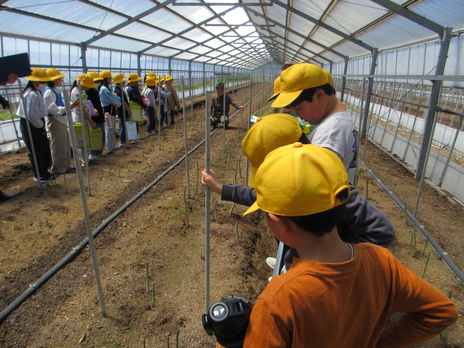 2025.05.08 3年生 児童生徒の日常 アスパラ圃場行ってきました! 管理者学校 総合「地域たんけんたい」の学習で アスパラ圃場へ校外学習に行ってきました。 どうやって育てているのか、どんなふうに育つのか、 農家の郡司さんから話をよく聞いて学習してきました。 収穫体験もさせていただきました! 太く、大きく、立派なアスパラを収穫することができて 子供たちはとても嬉しそうにしていました。 #3年生