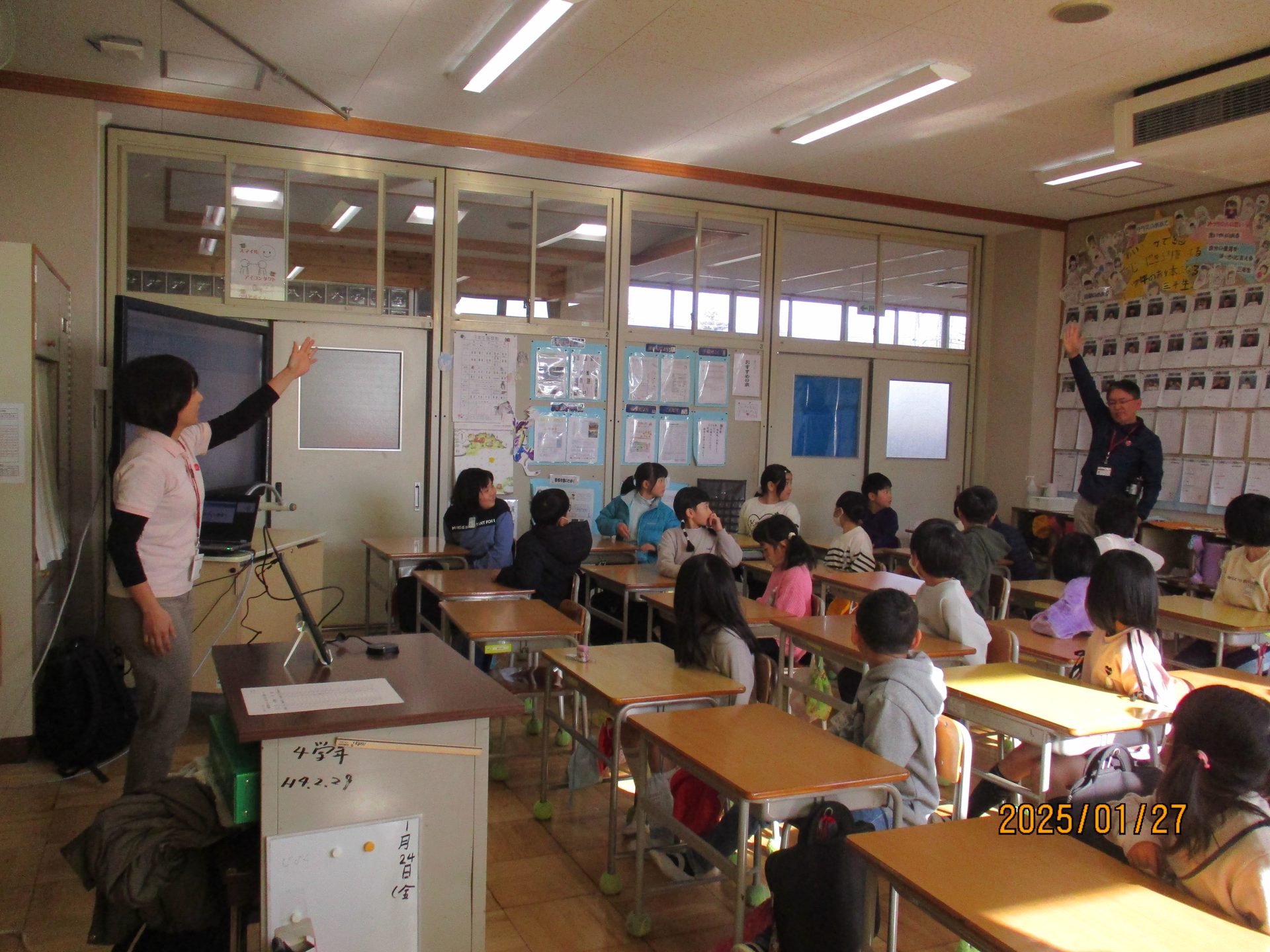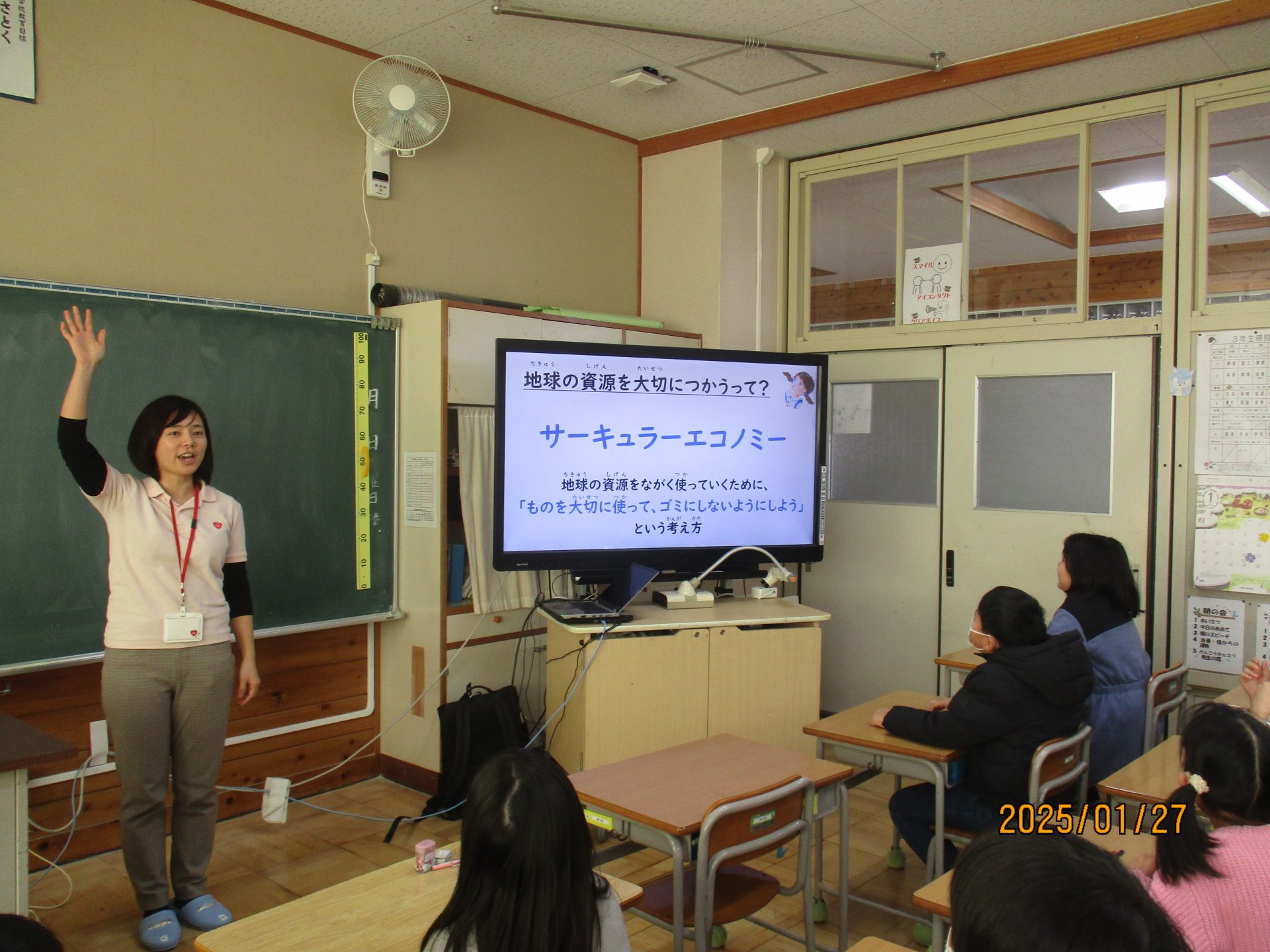 2025.01.27 3年生 カゴメ出張授業 管理者学校 今日はカゴメの出張授業がありました。 カゴメのトマトについてやSDGsのことなどを教えてもらいました。 また、ベジチェックという機械で野菜摂取量を測りました。自分の結果を見てびっくりしていました。 #3年生