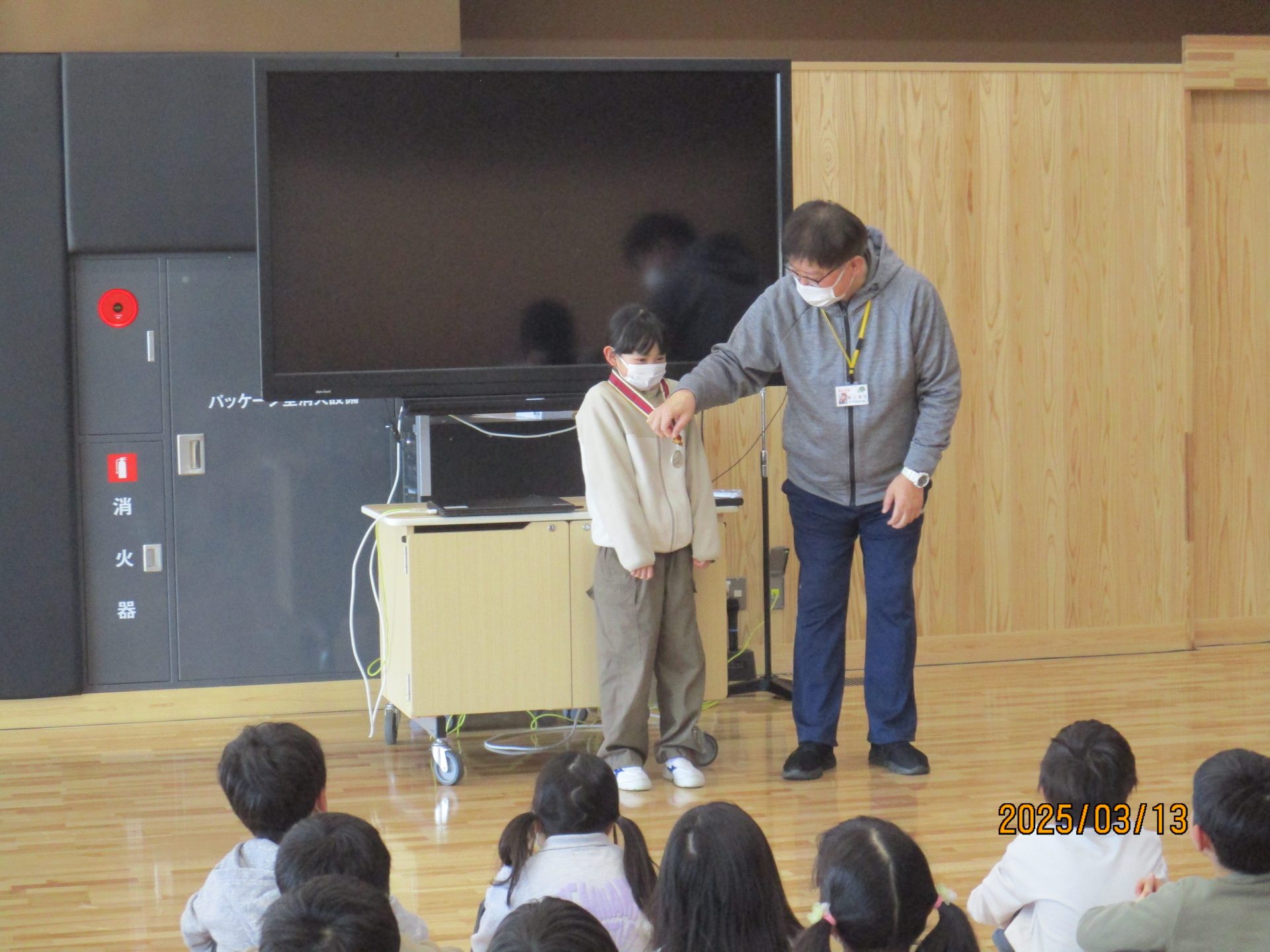 集会では、21日まで体験入学にきているお友達のクイズや表彰を行いました。