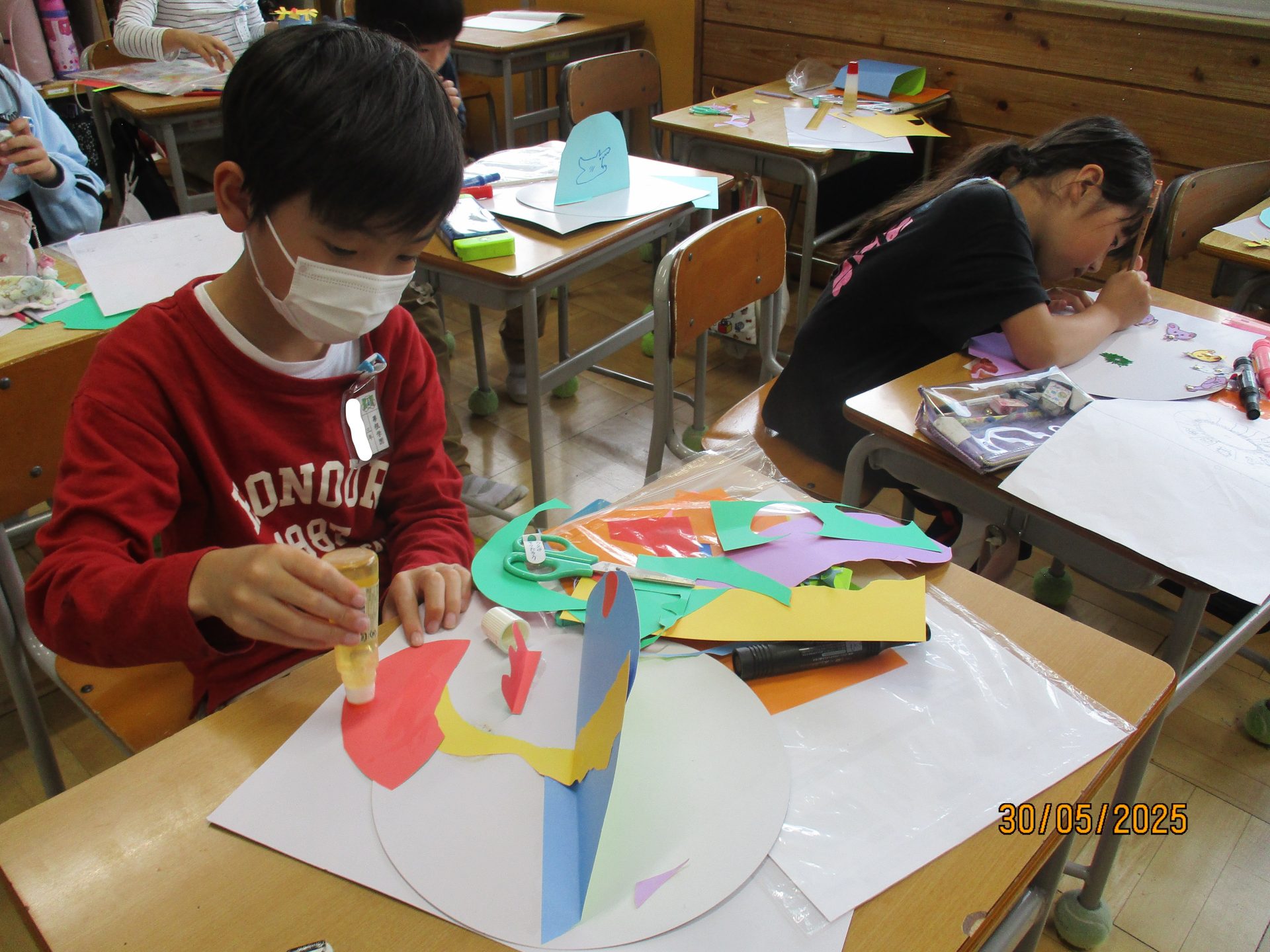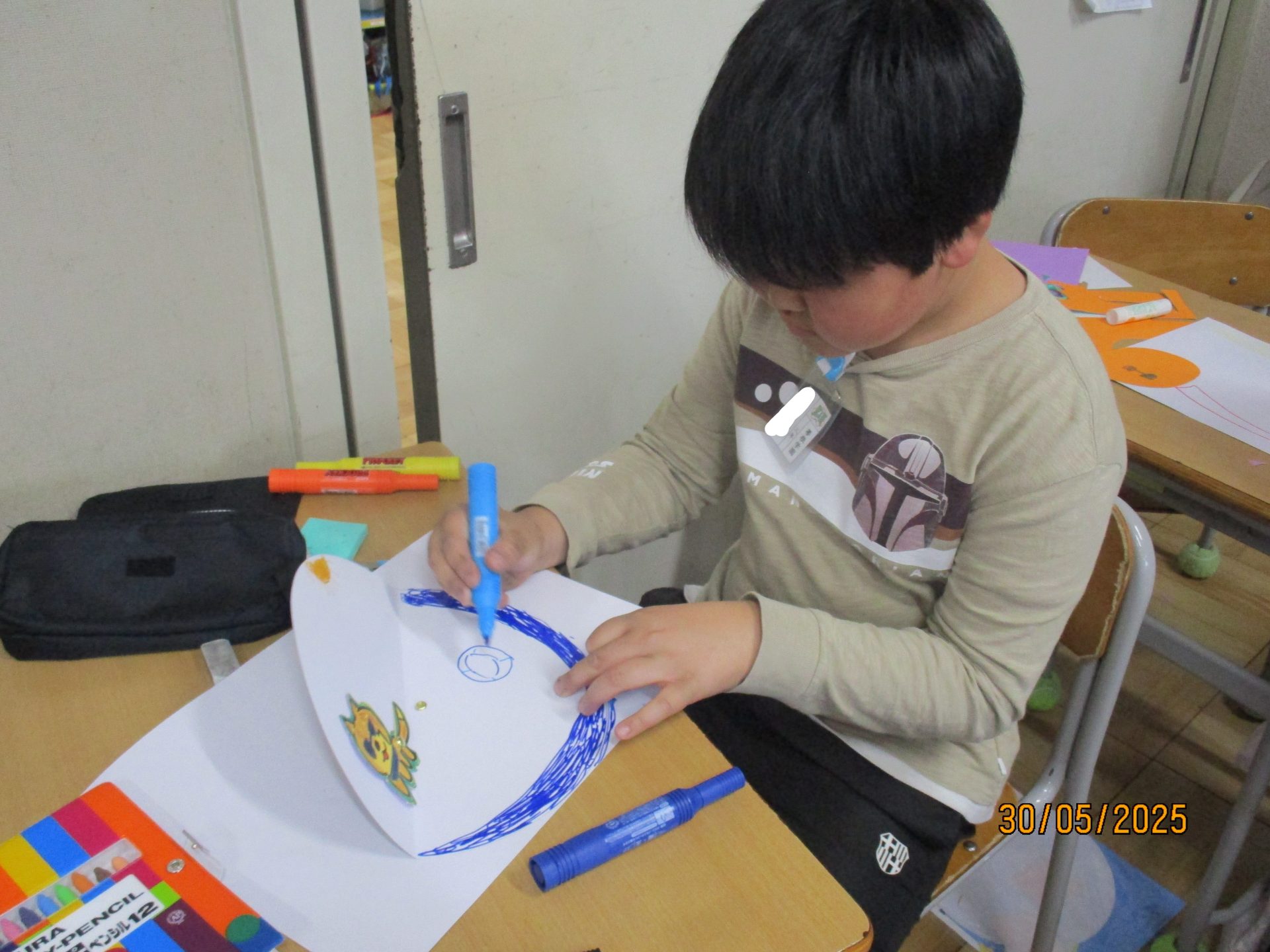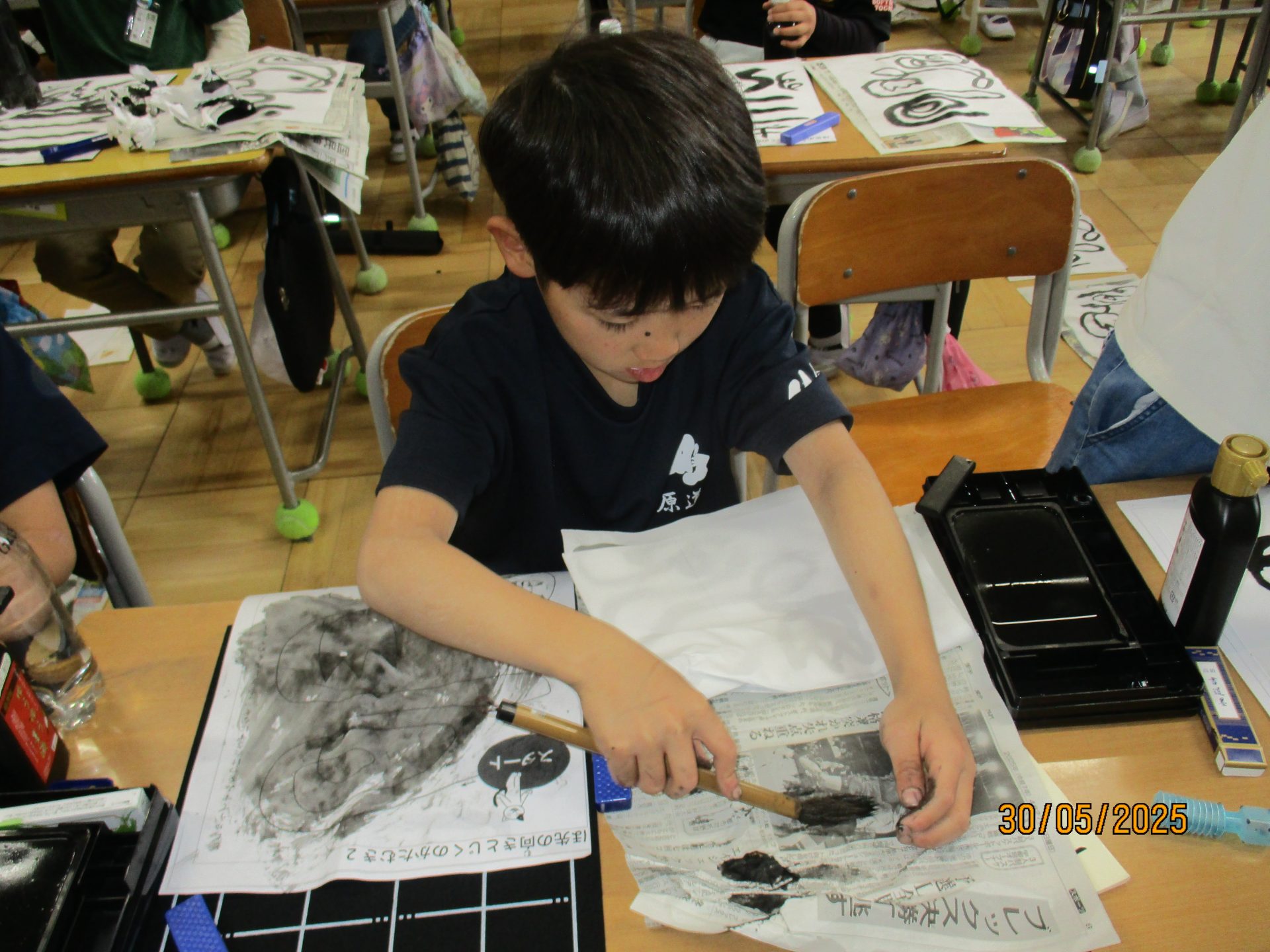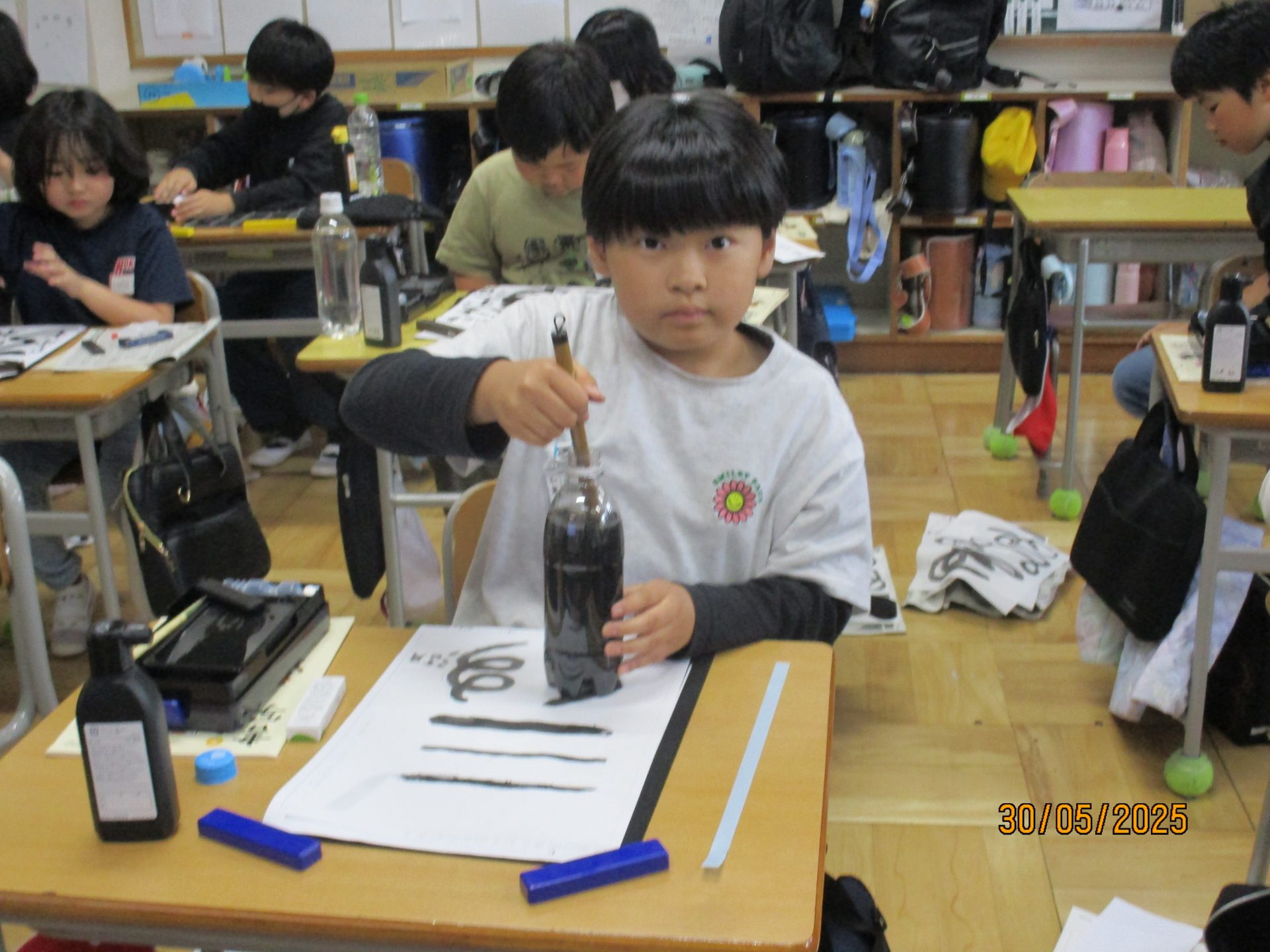 2025.05.30 3年生 児童生徒の日常 今日の3年生 管理者学校 書写の時間です。 今日は墨汁を使わず、固形の墨を硯で磨ってみました。 その墨を使って、筆を動かす練習をしました。 回を重ねるごとに、後片付けも上手になってきました。 図工では、「わりピン」を使った作品を製作中です! どんな作品が完成するか楽しみです。 #3年生