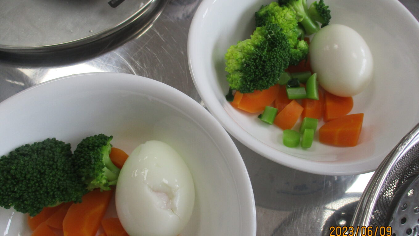 5、6時間目には調理実習がありました。今日はゆで野菜とゆで卵です。