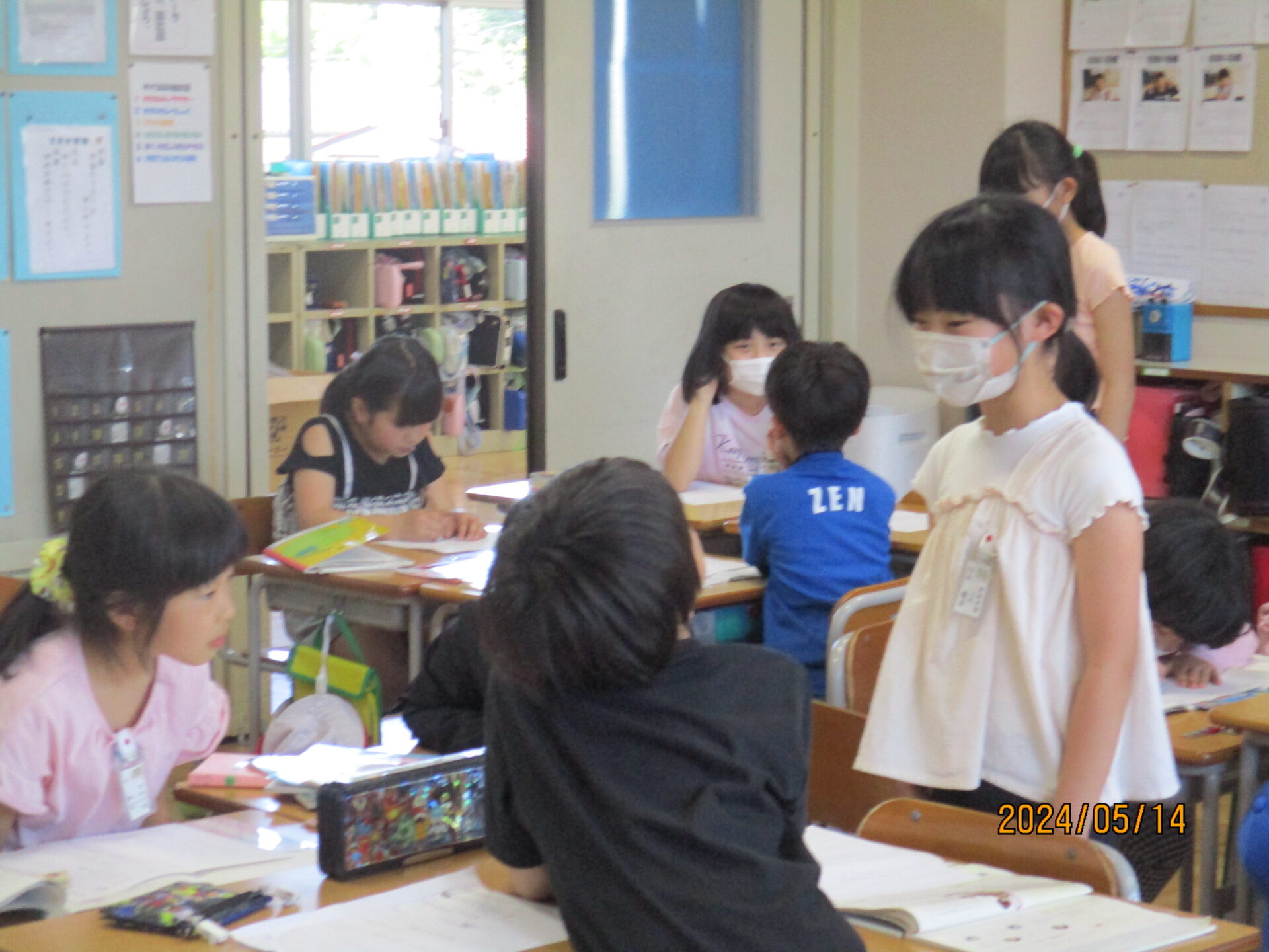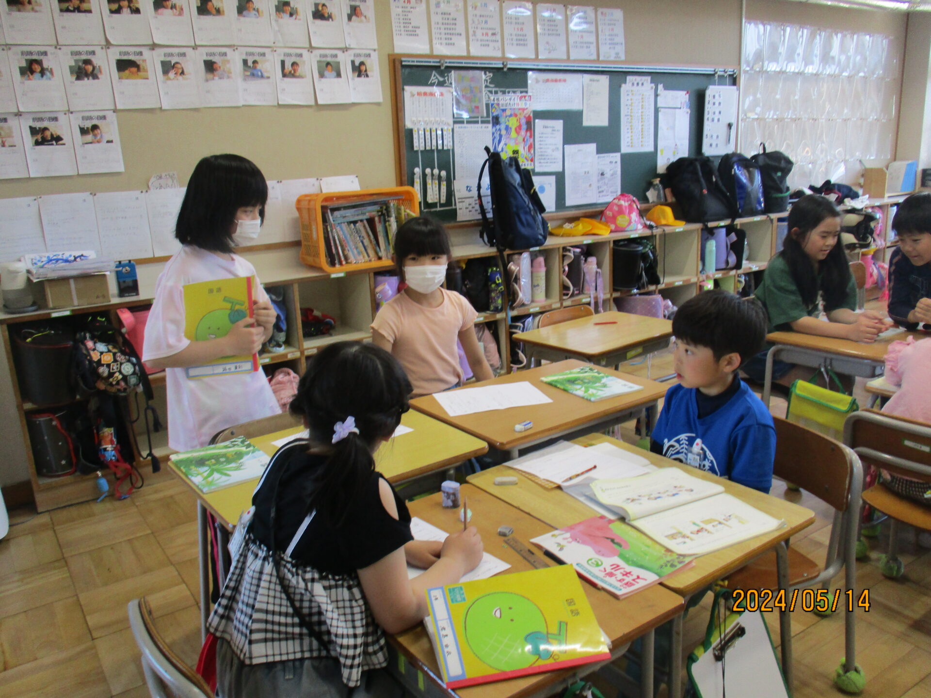 国語では、「もっと知りたい、友だちのこと」で、友だちの話を聞き、質問をする学習をしました。