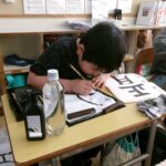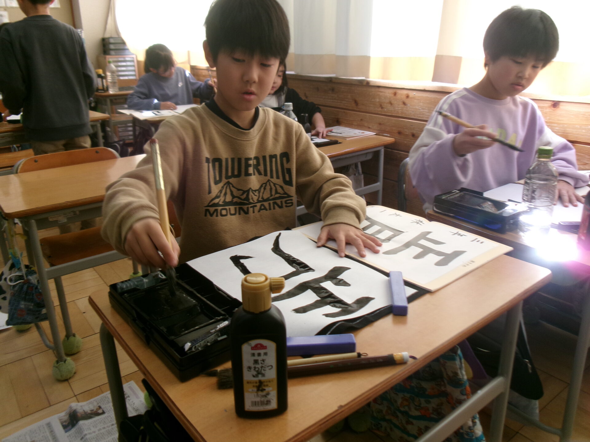 書写の授業です。年度初めと比べ、筆の扱いがとても上手になりました。