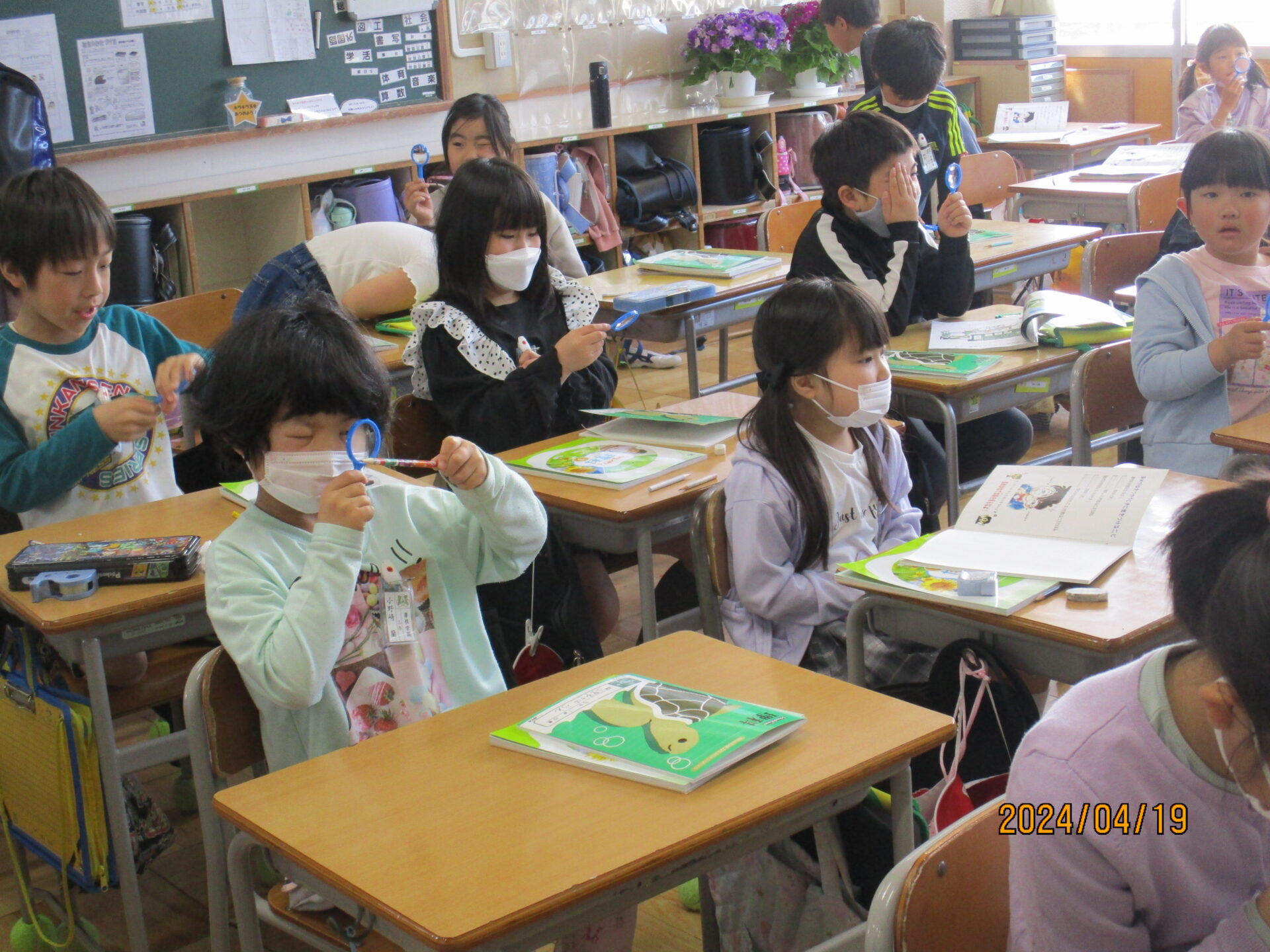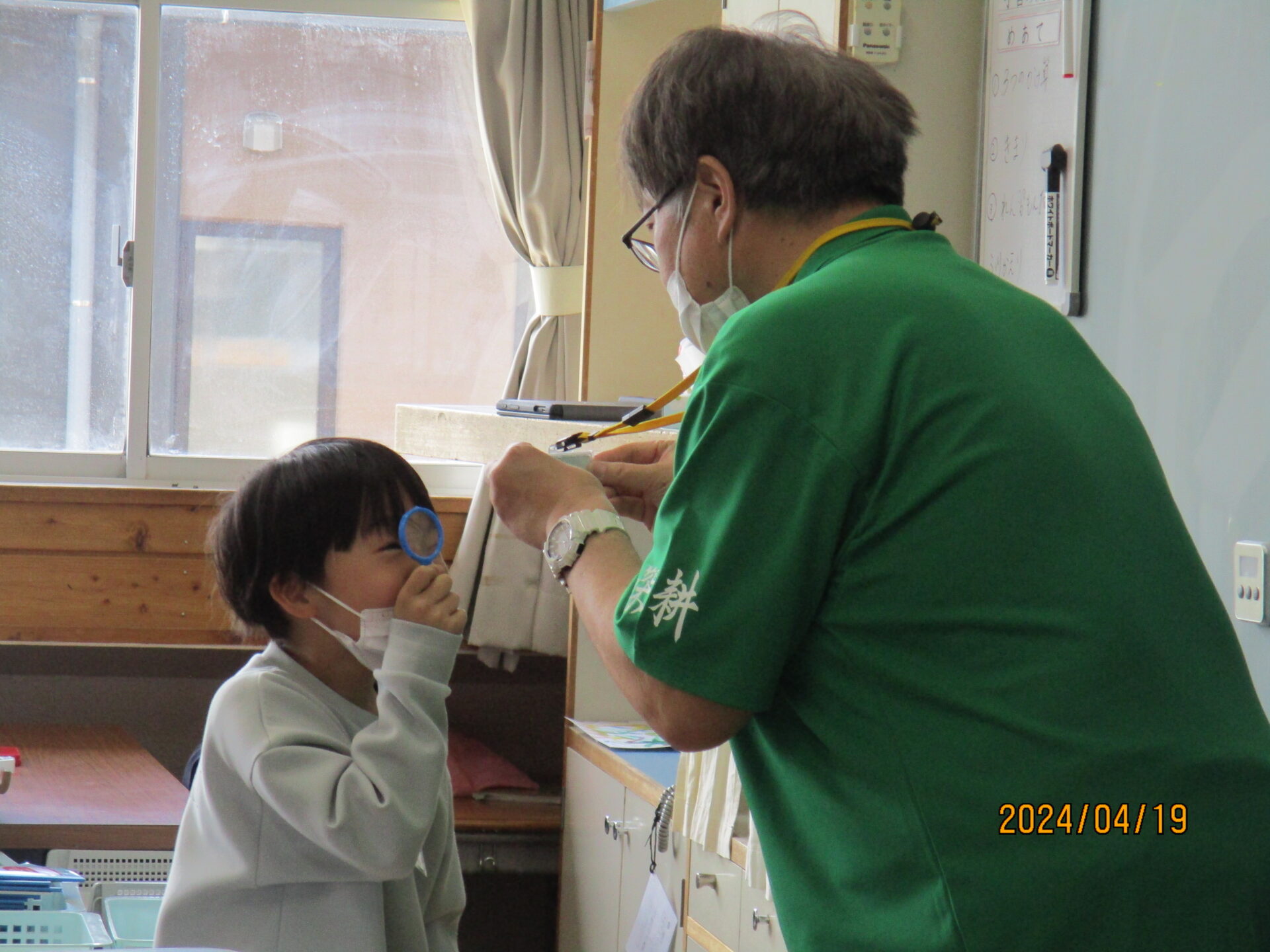 2024.04.19 3年生 理科の学習 管理者学校 理科の授業の様子です。虫眼鏡の使い方を習いました。 和香園で虫眼鏡とタブレットを使って観察をしました。 詳しく観察することができましたね。 #3年生