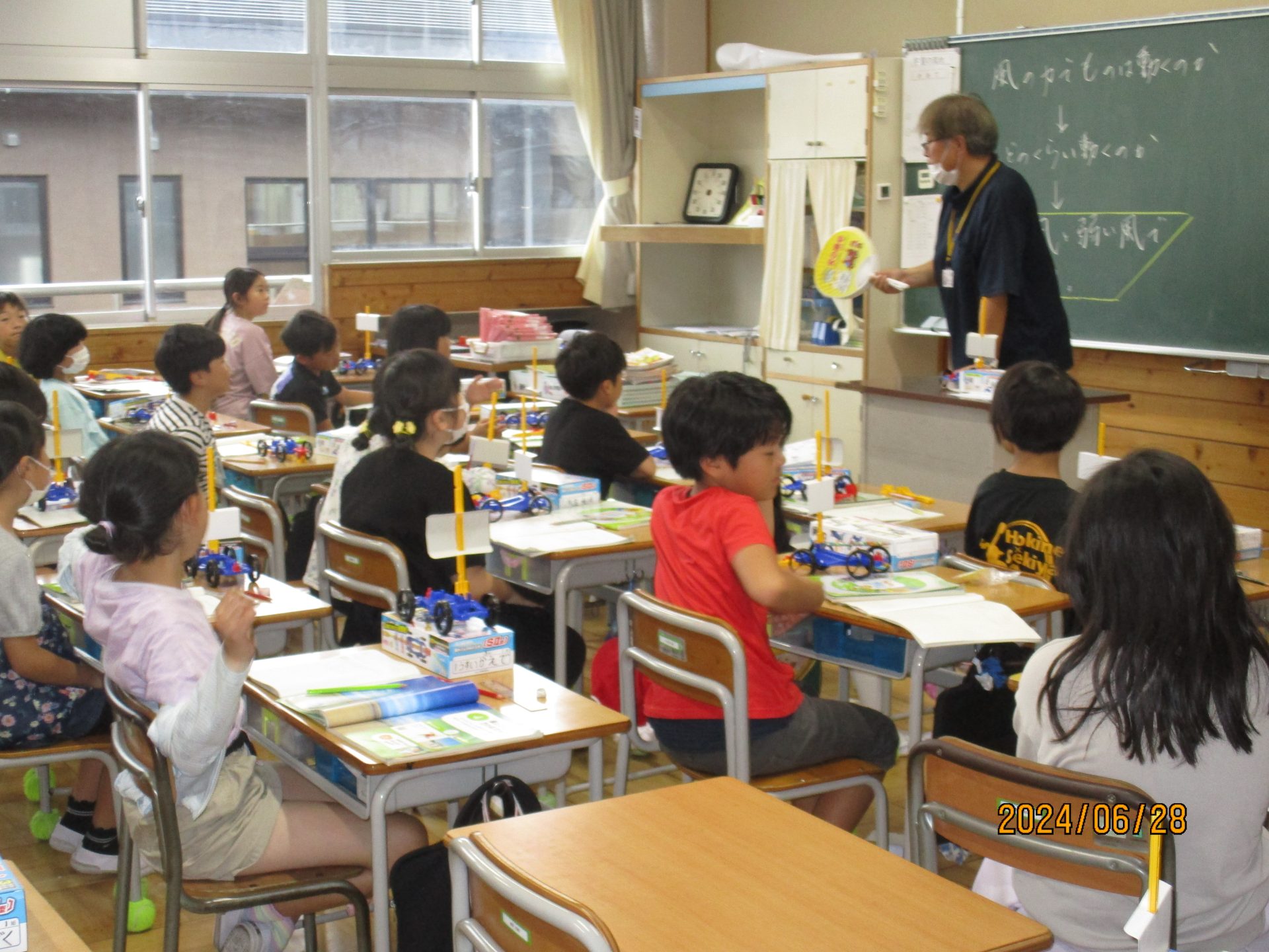 2024.06.28 3年生 理科の授業の様子 管理者学校 今日は理科で「風とゴムの力のはたらき」の実験を行いました。 送風機を使って、風の強さを変えて実験をしました。どんな結果が出たでしょうか? #3年生