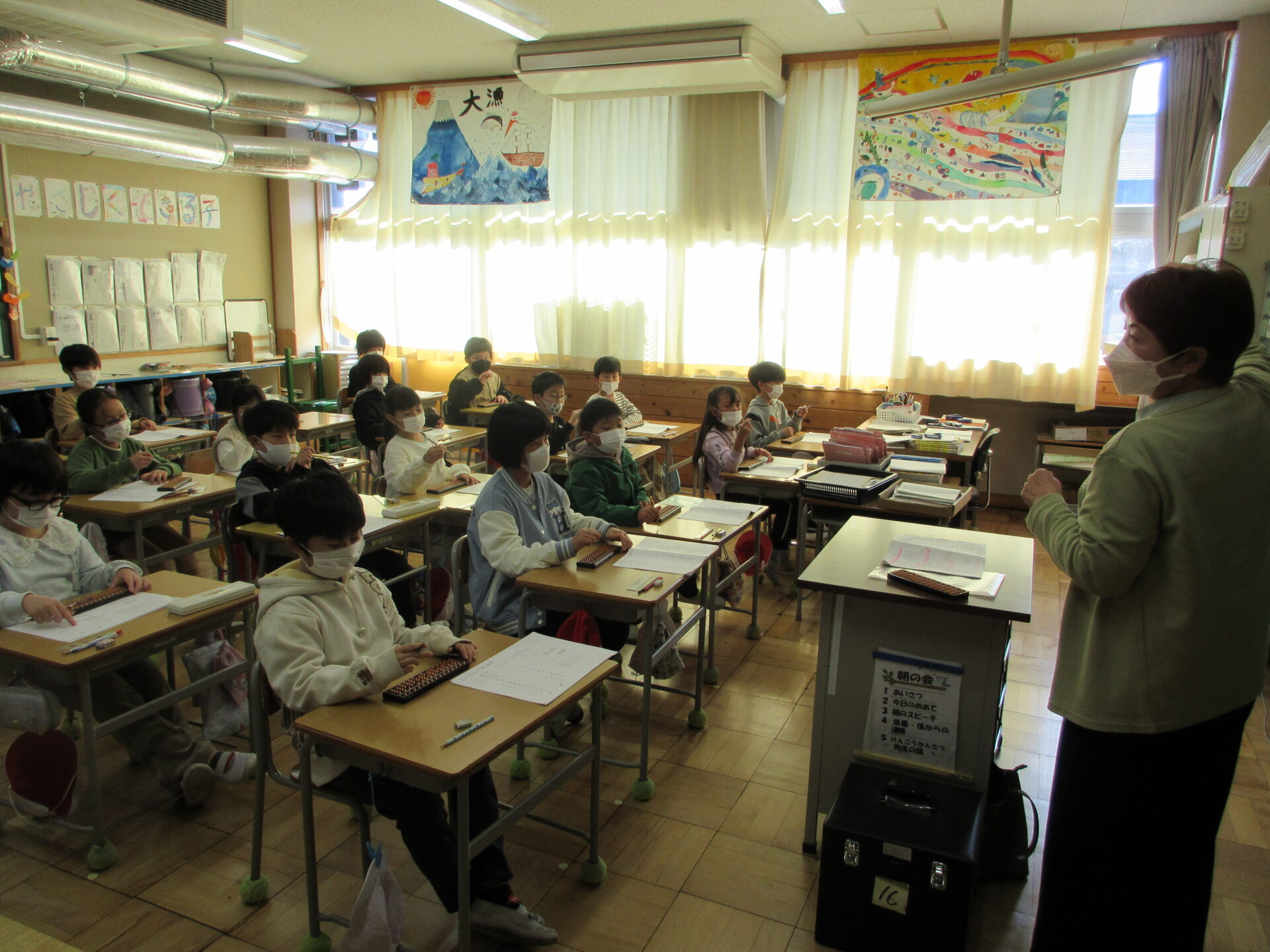 2024.02.16 3年生 立てて、置いて、はじいて 管理者学校 「はい!立てて、置いて、はじいて、、、1+5+、、、、」 パチ、パチ、パチ! けんもくスクールの佐藤先生のご指導の下、子どもたちが一斉にそろばんをはじいています。 先生に追いつこうと、子どもたちも集中力を発揮し、頑張りました!! 「できた!!」「やったあ!あってる!!」 問題を解くごとに、子どもたちの声が教室に響きます! あっという間の2時間でした。 #3年生
