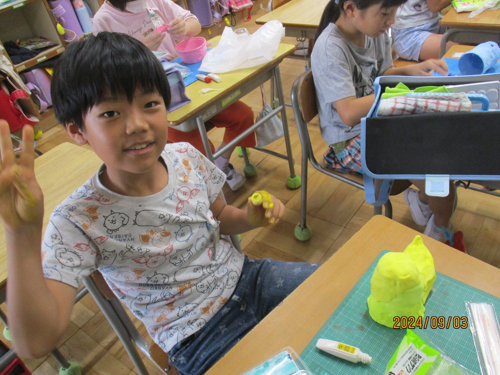 2024.09.03 3年生 3年生の図工の様子 管理者学校 図工の学習で「空きようきのへんしん!」をやりました。 みんな持ってきた空き容器に色とりどりの紙粘土をつけています。 完成までもう少しです。 #3年生