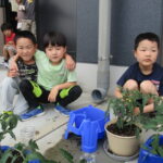アブラムシがつき始めてしまっています。今日は、子供たちとアブラムシをどう対処するか考えました。家でやってることや、自分で考えた意見など積極的に発表してくれました。おいしいミニトマトができるまで、みんなで協力して育てていきます。