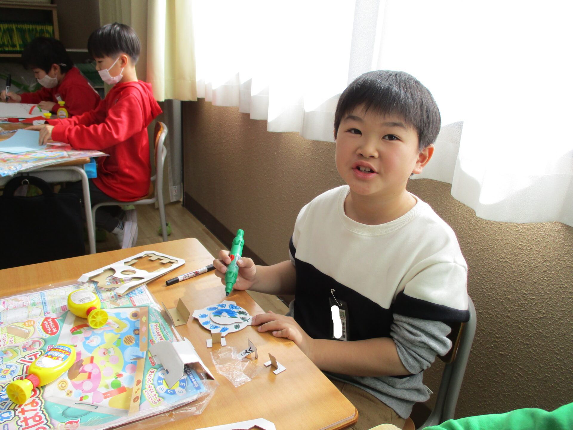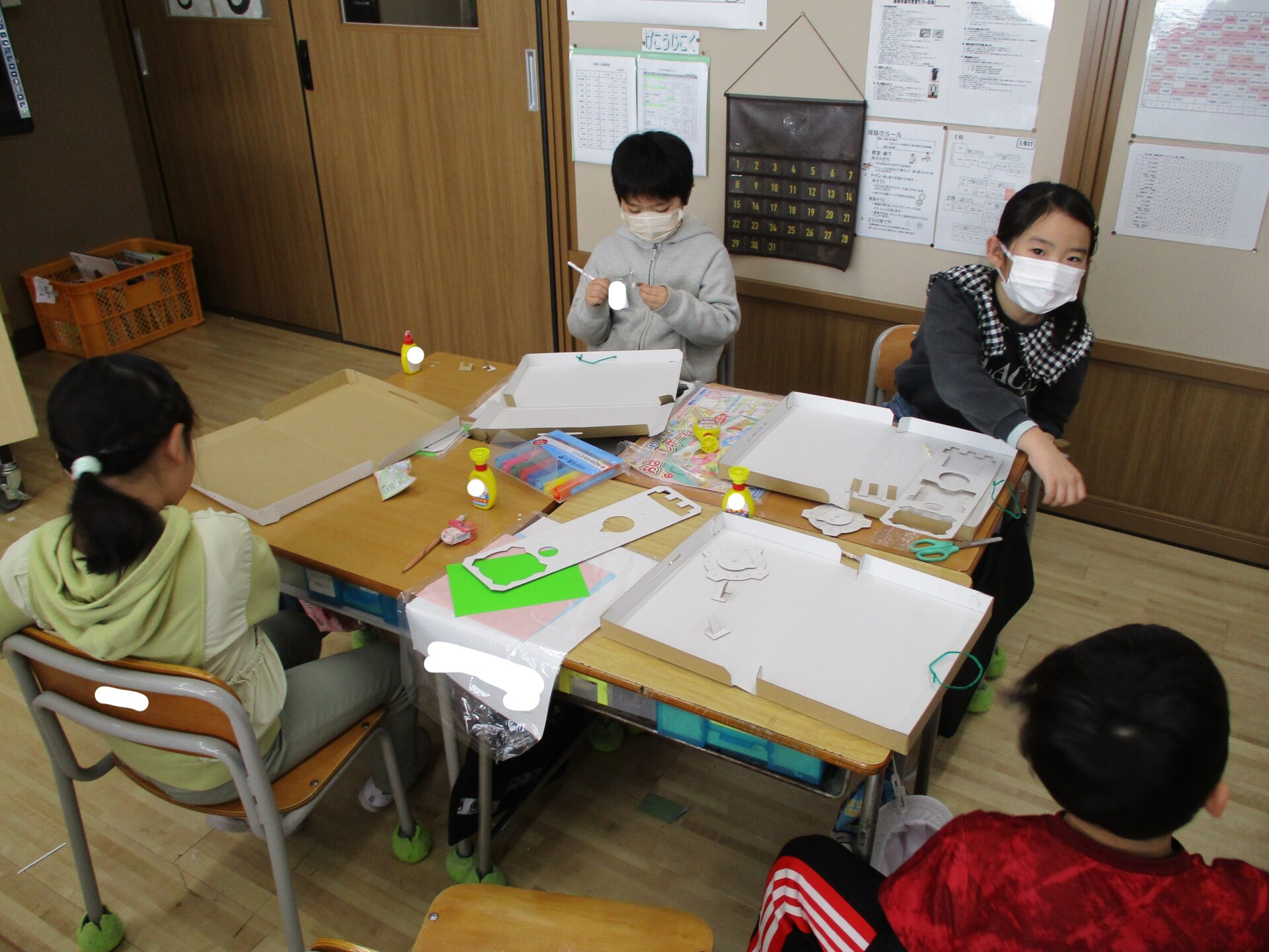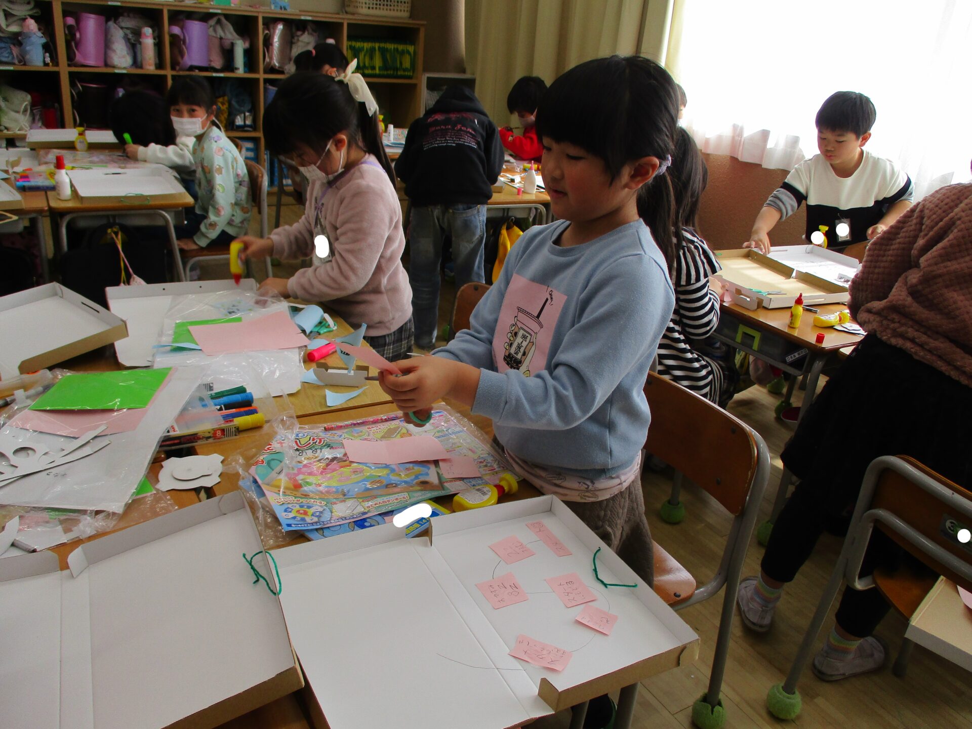 お友達に箱の作り方を教えてあげて大活躍。