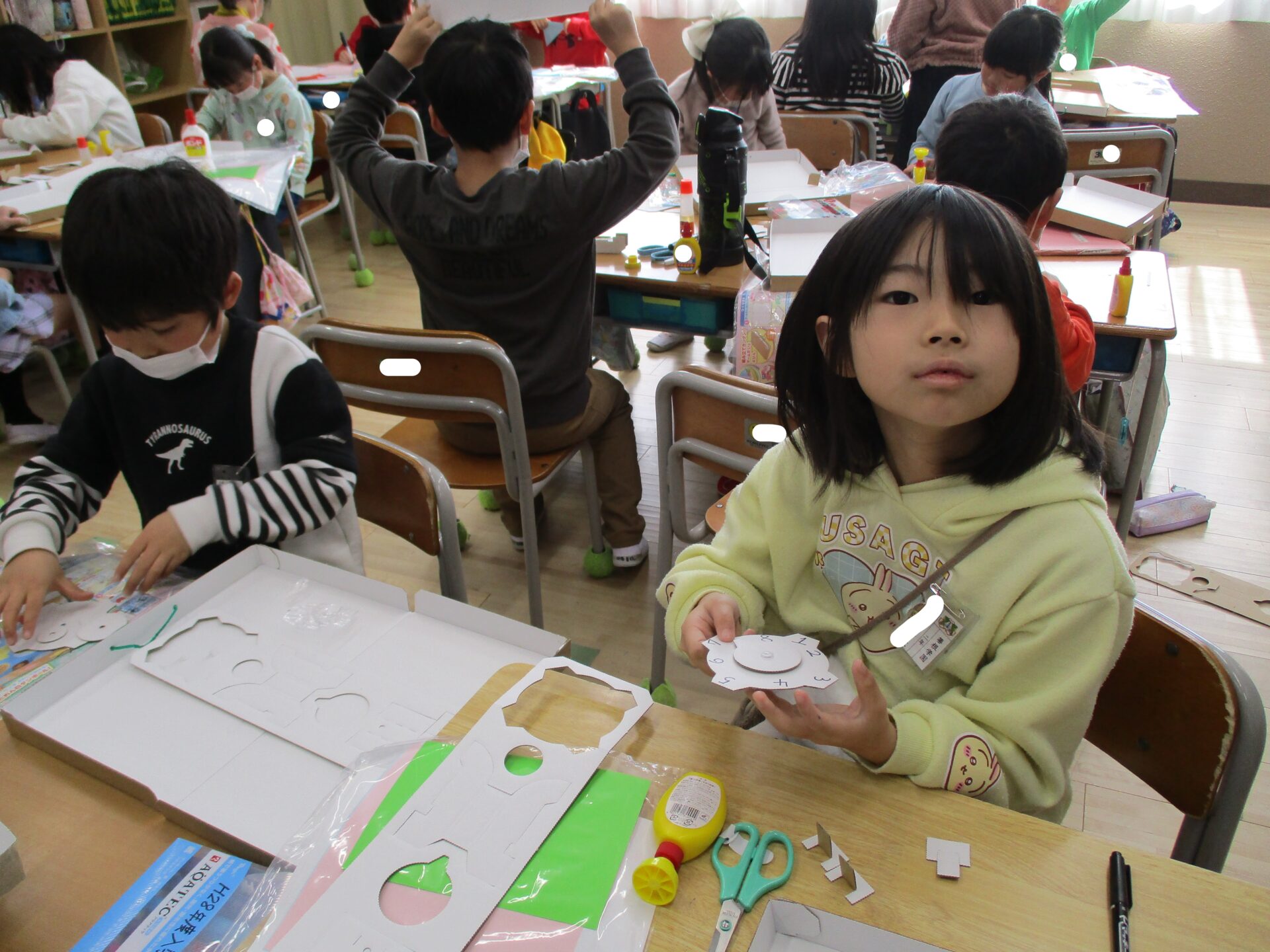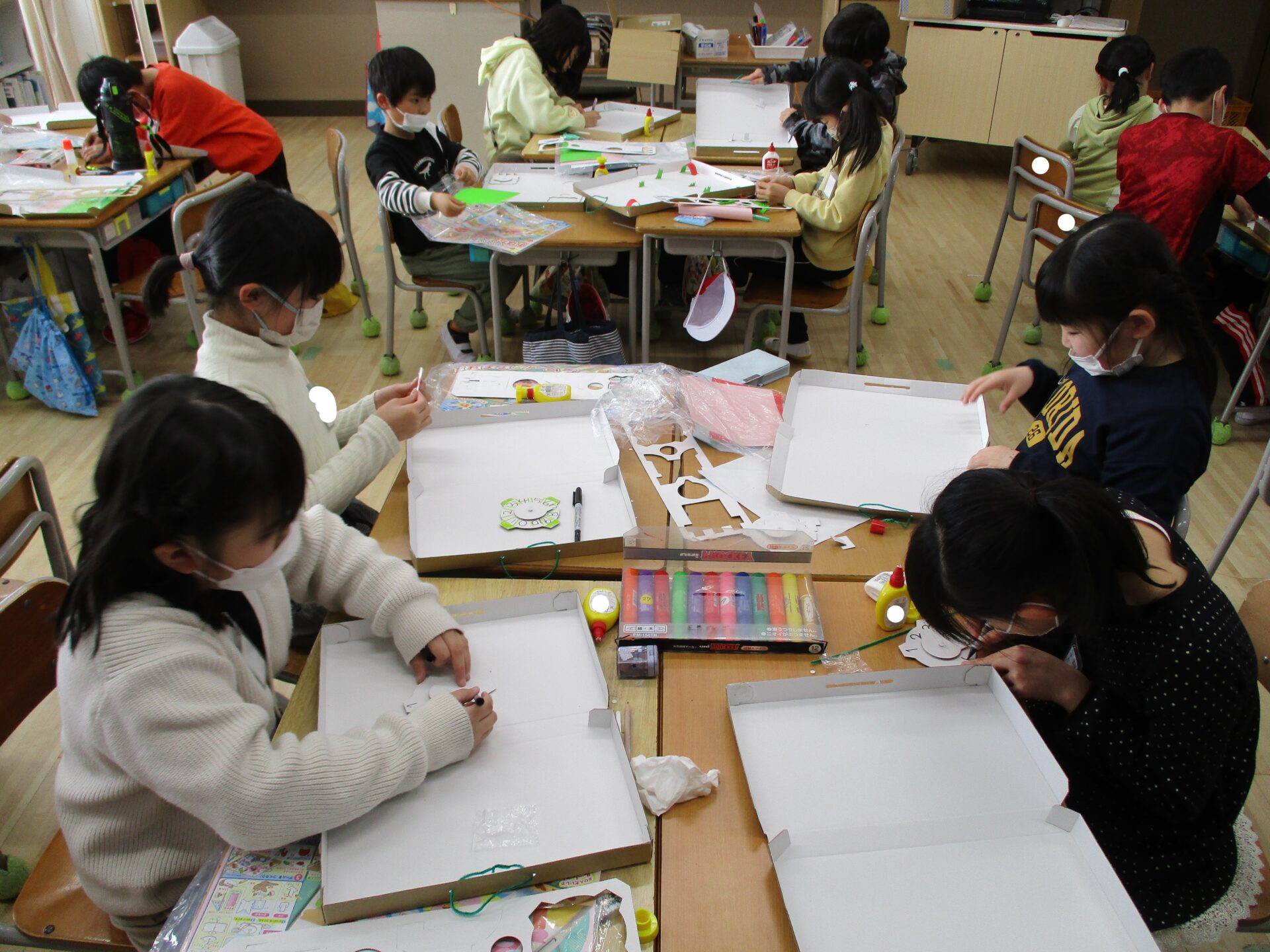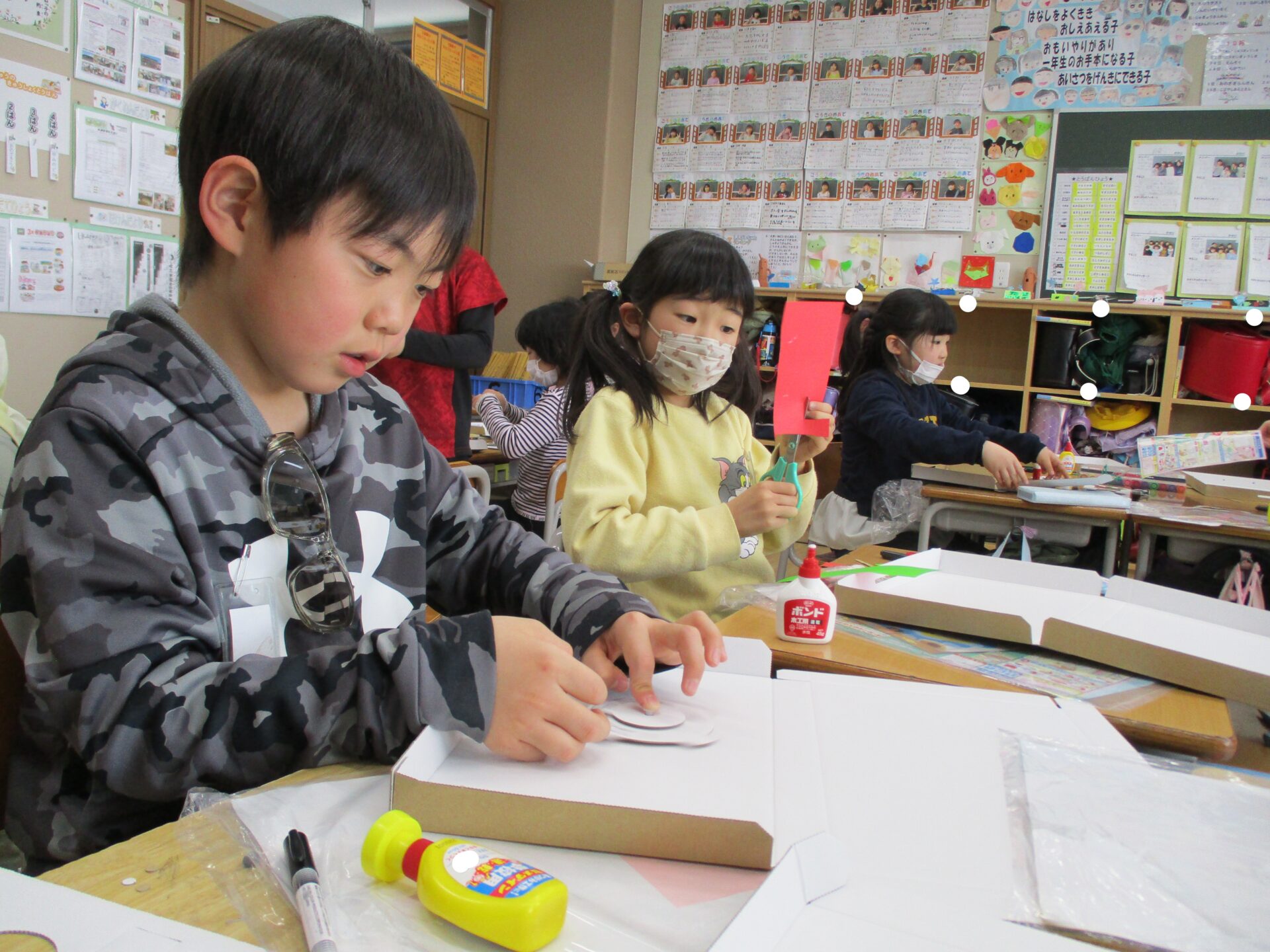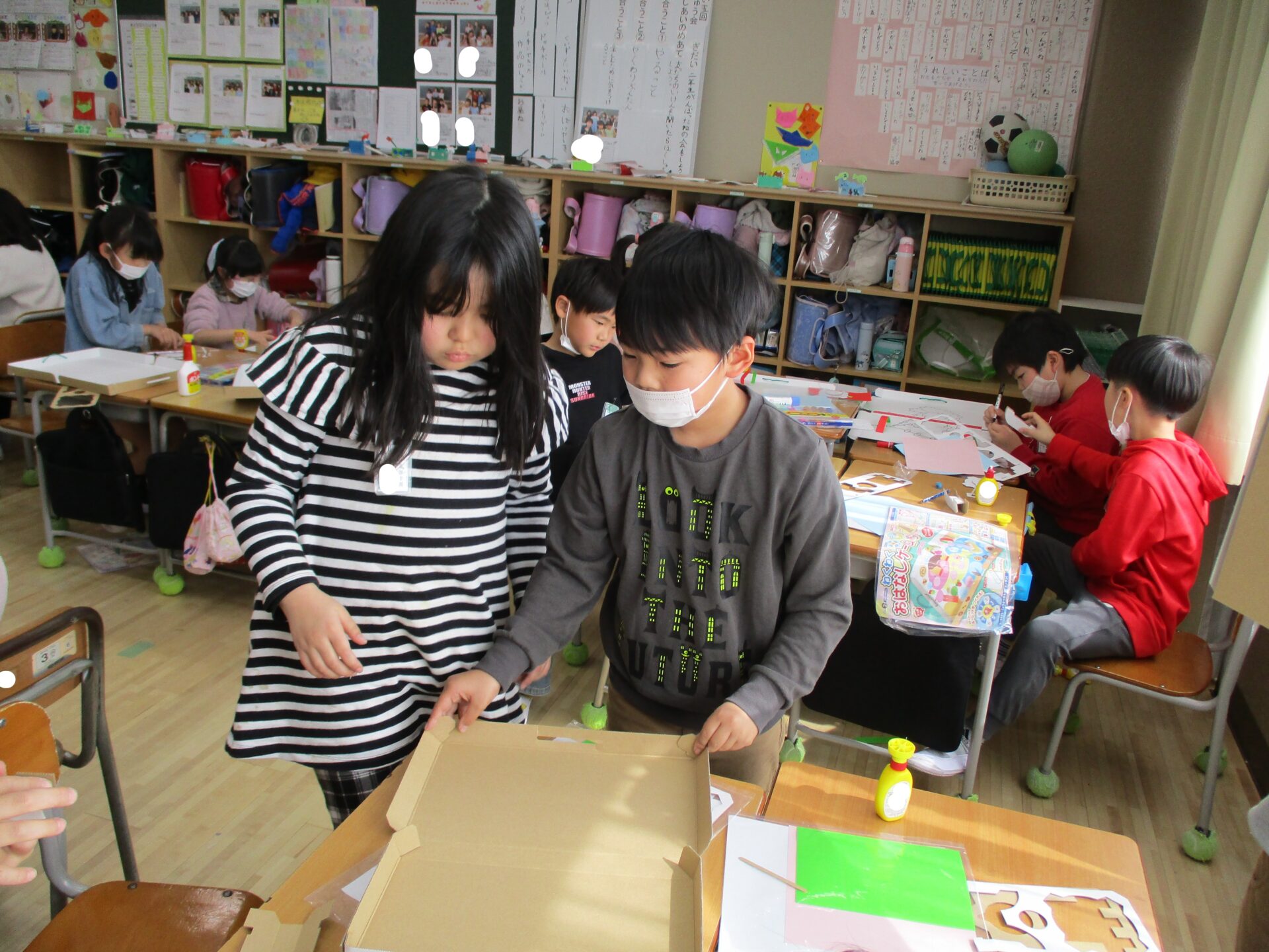 お友達に箱の作り方を教えてあげて大活躍。
