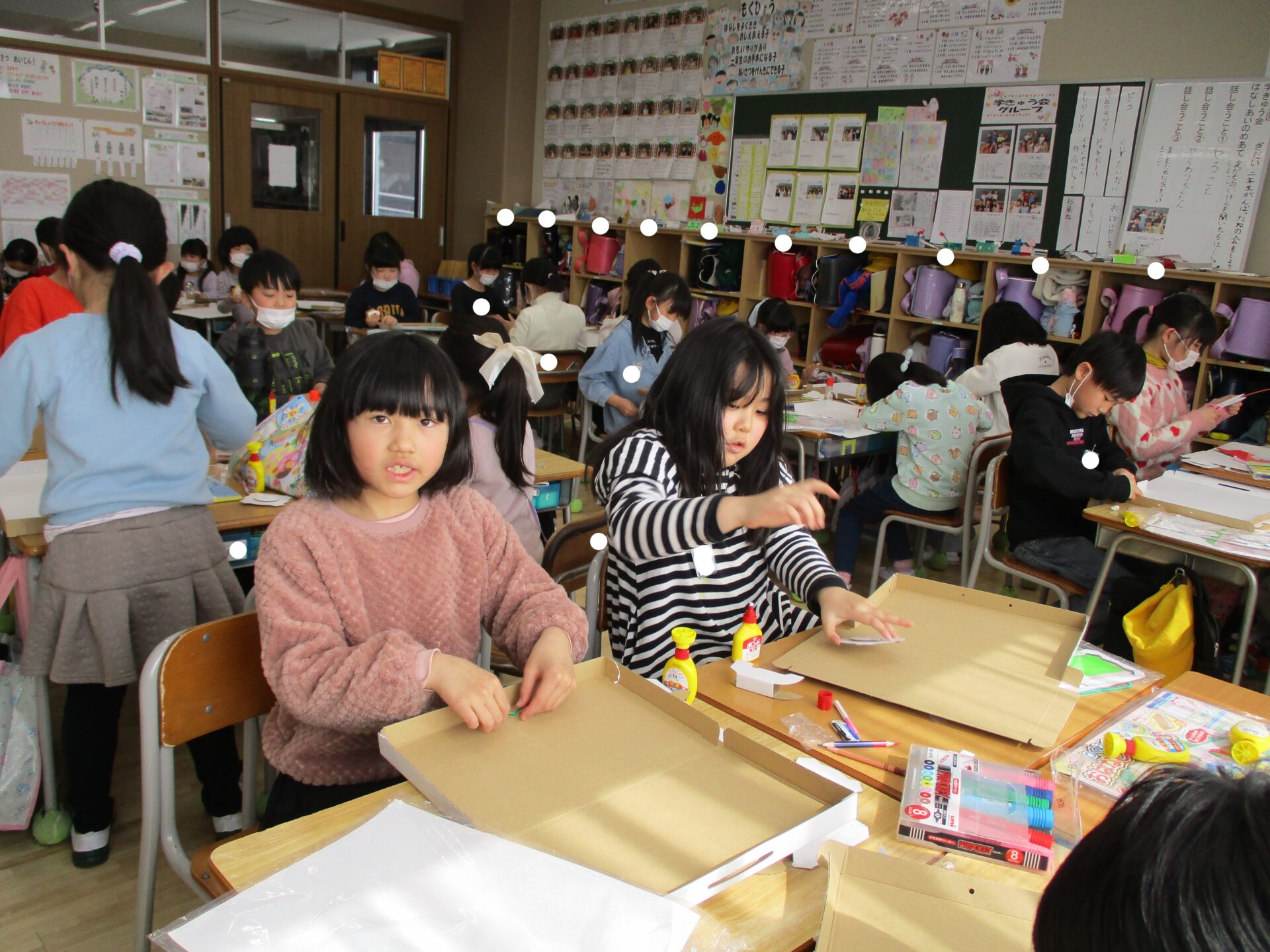 グループでカラーペンなどを共有して作ります。