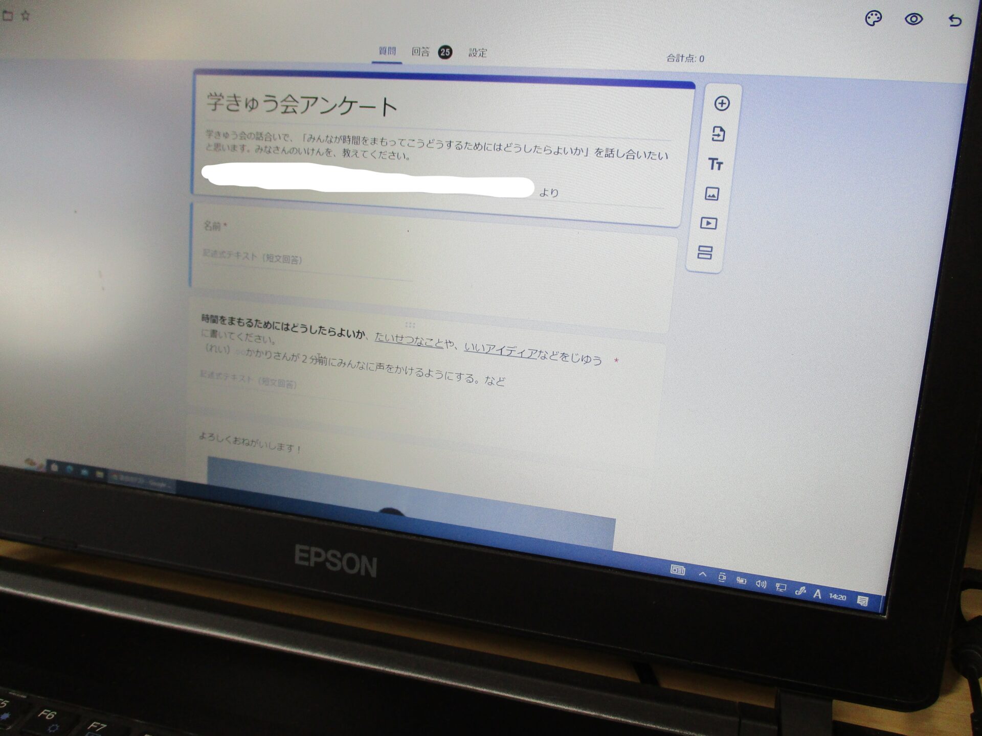 「タブレットでアンケートをとりたい」