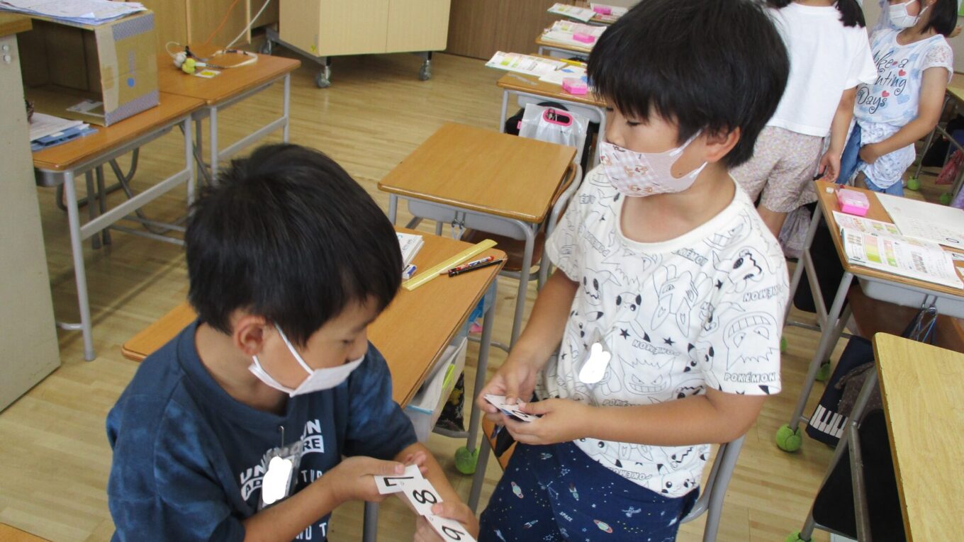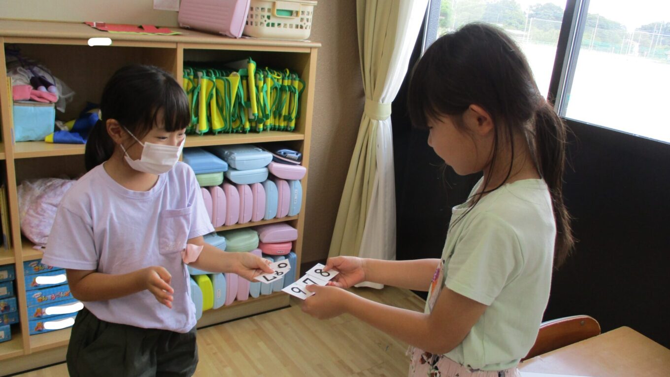 算数の時間は、100より大きい数の学習で、3枚のカードを並べて大きな数字を作るゲームをしました。