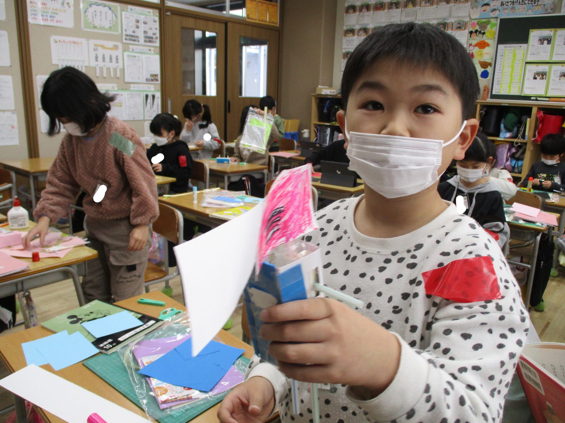 2024.02.09 2年生 パタパタストロー 管理者学校 今週の図工の時間は、ストローを使って工作を作りました。 後片付けも協力してできました。 最後まで頑張って素晴らしいです! 工作はロッカーの上に飾りました。 #2年生