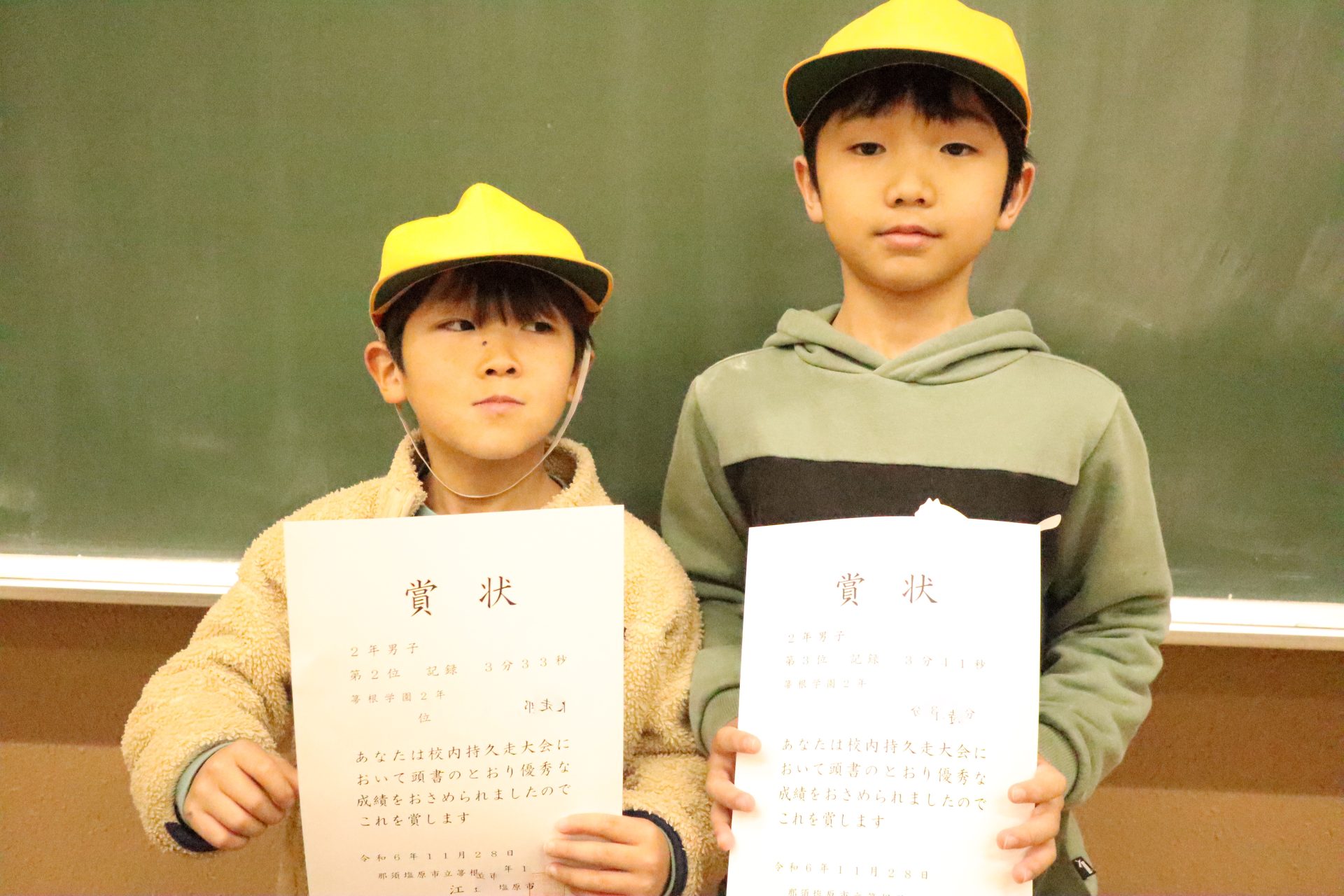 2024.12.05 2年生 今日の2年生 管理者学校 今日の昼休みに、児童生徒会主催でケイドロを2・5・8年生で行いました。児童生徒会のメンバーが警察役で、他の児童生徒が泥棒役でした。2年生はお兄さん、お姉さんから必死に逃げながらも、楽しそうに遊んでいました。 かけ算九九や持久走大会、那須地区芸術祭などのたくさんの賞状を受け取りました。様々な場面で頑張っています! #2年生