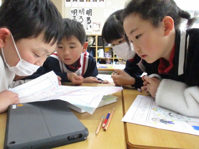 国語では人の役に立つロボットを考えました。本で情報を収集し、あったらいいなと思うロボットを考え、友達に伝えました。