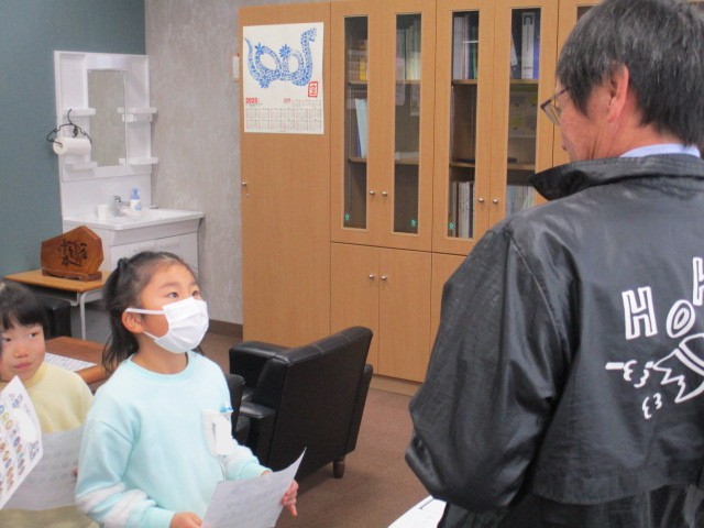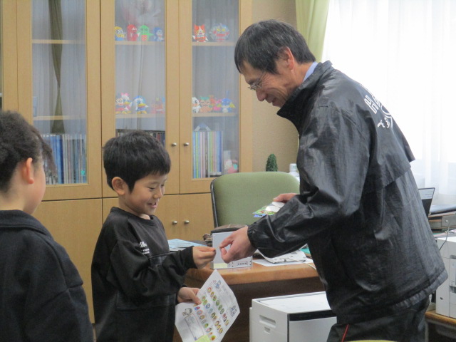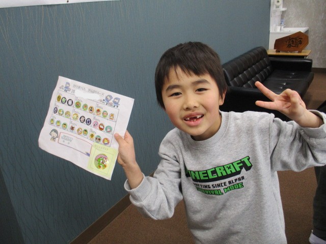 最後の確認テストは校長先生です。今回は8人が合格の証に大きいシールを校長先生からいただきました。がんばりました!