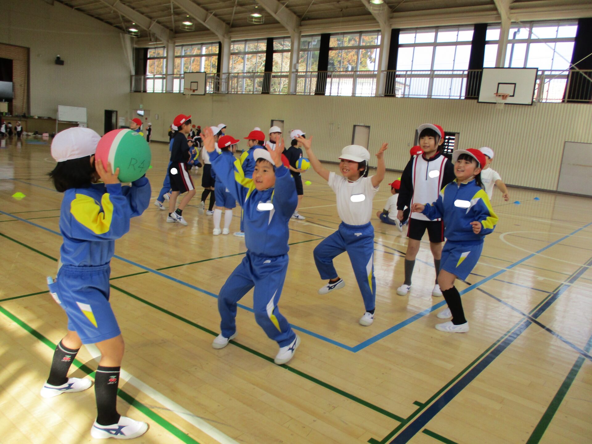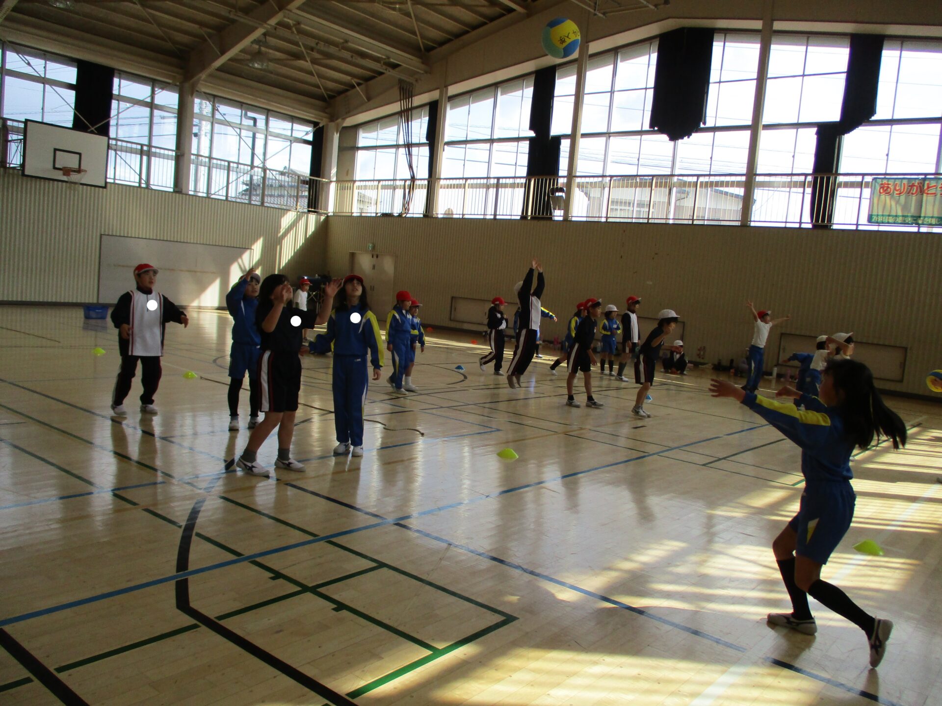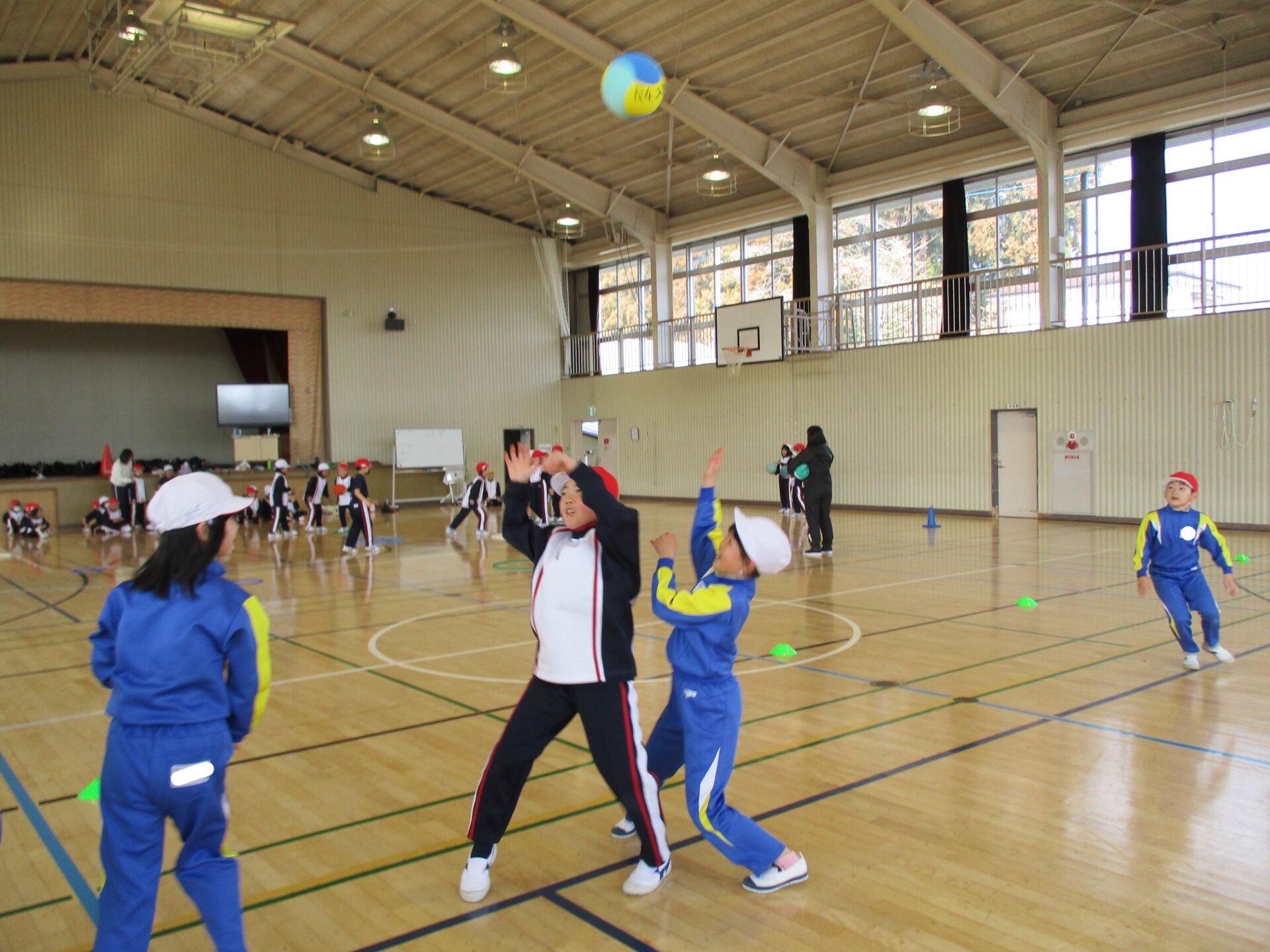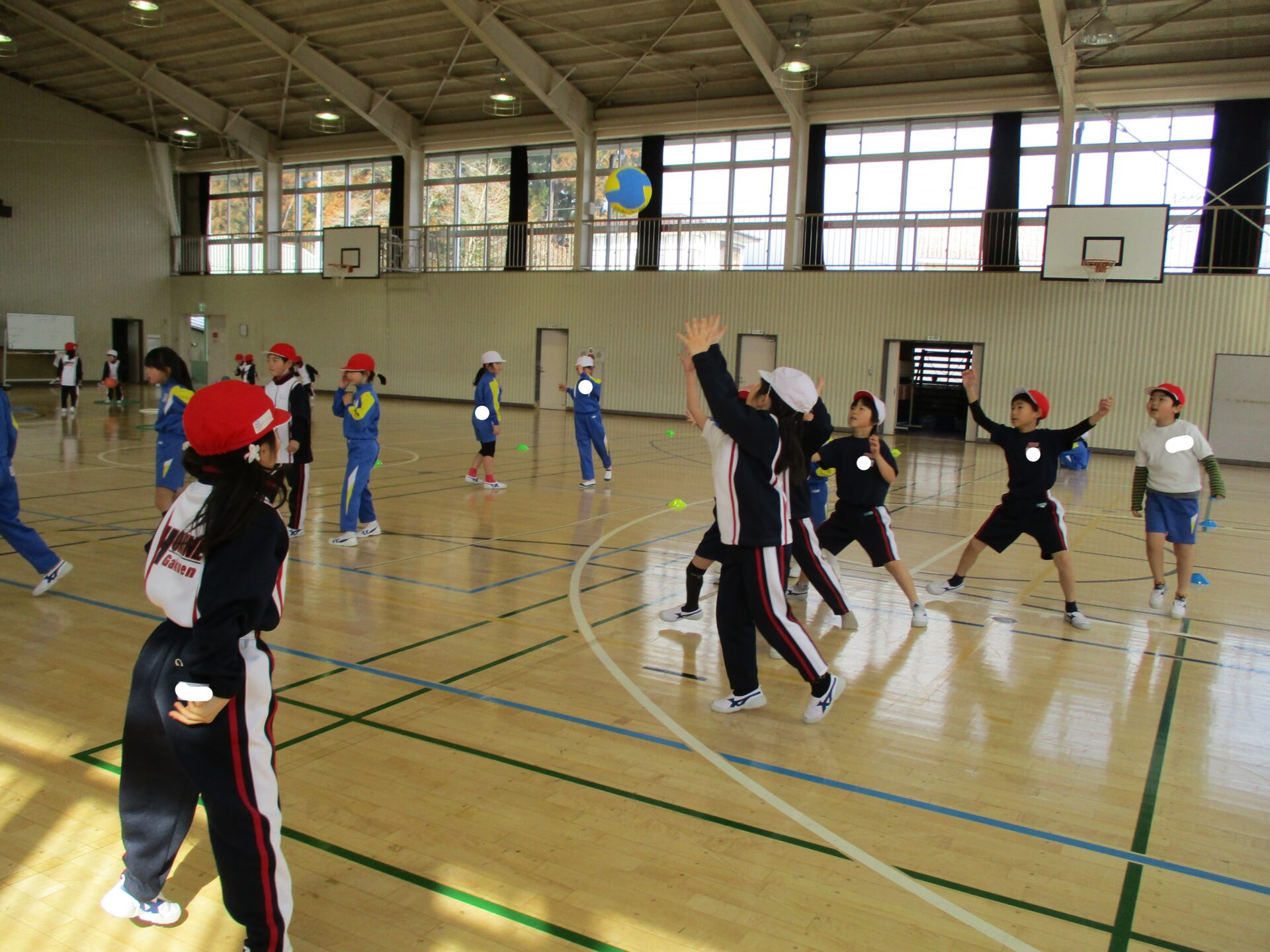 体育は「ダンクボール」という、ドリブルなしでパスでボールを運ぶゲームをしました。