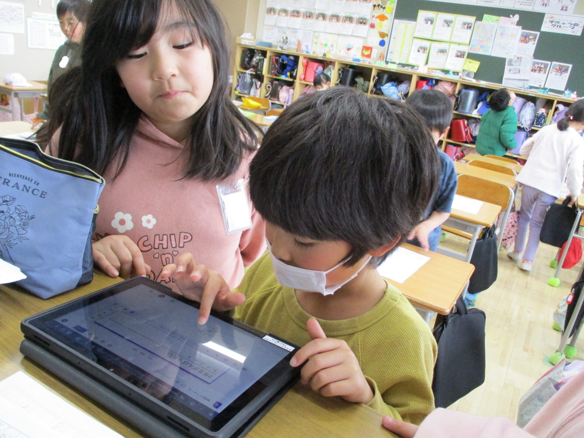 タブレットでアンケートをとって、「二年生がんばったね!の会」でやりたいことなどを書き出しました。
