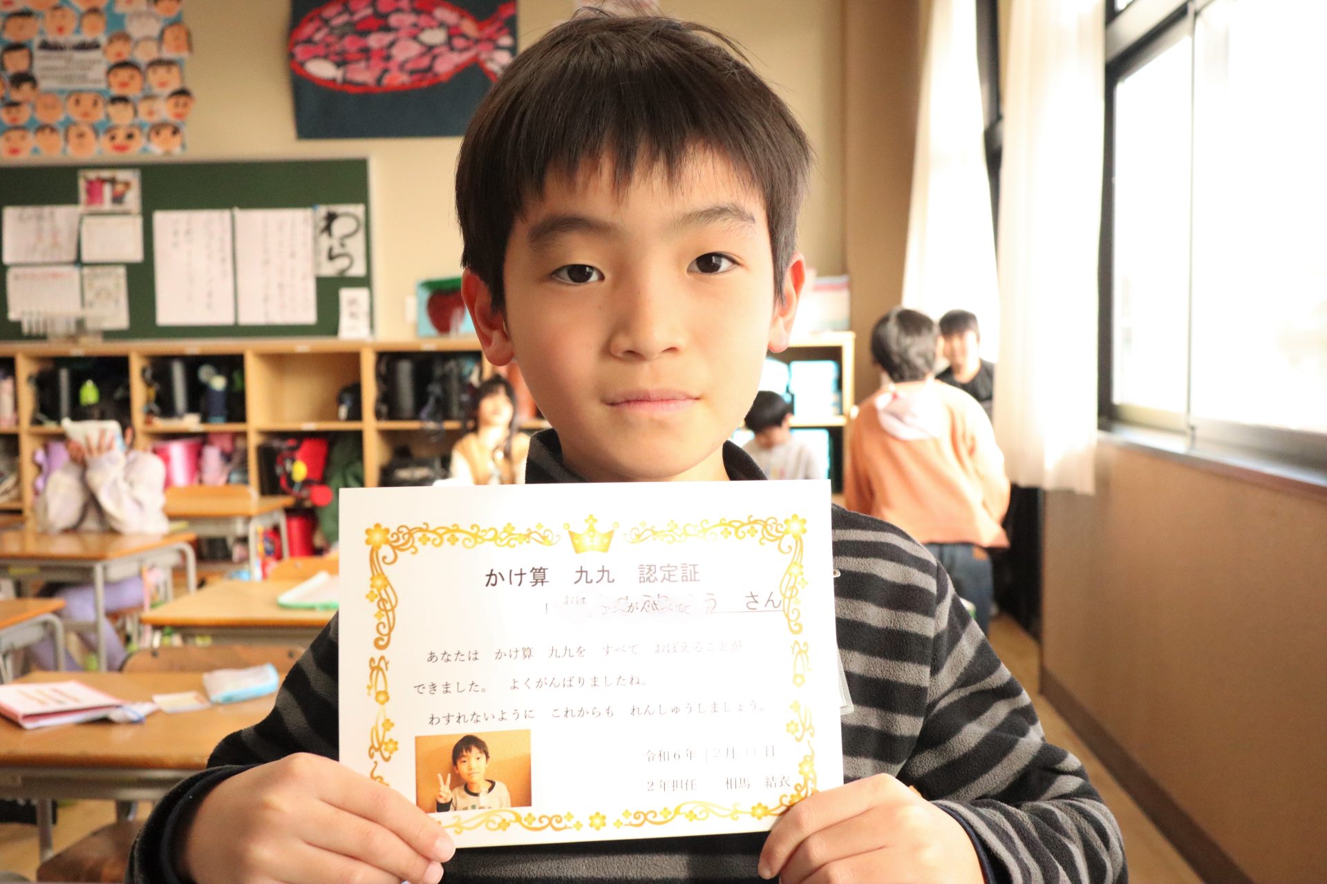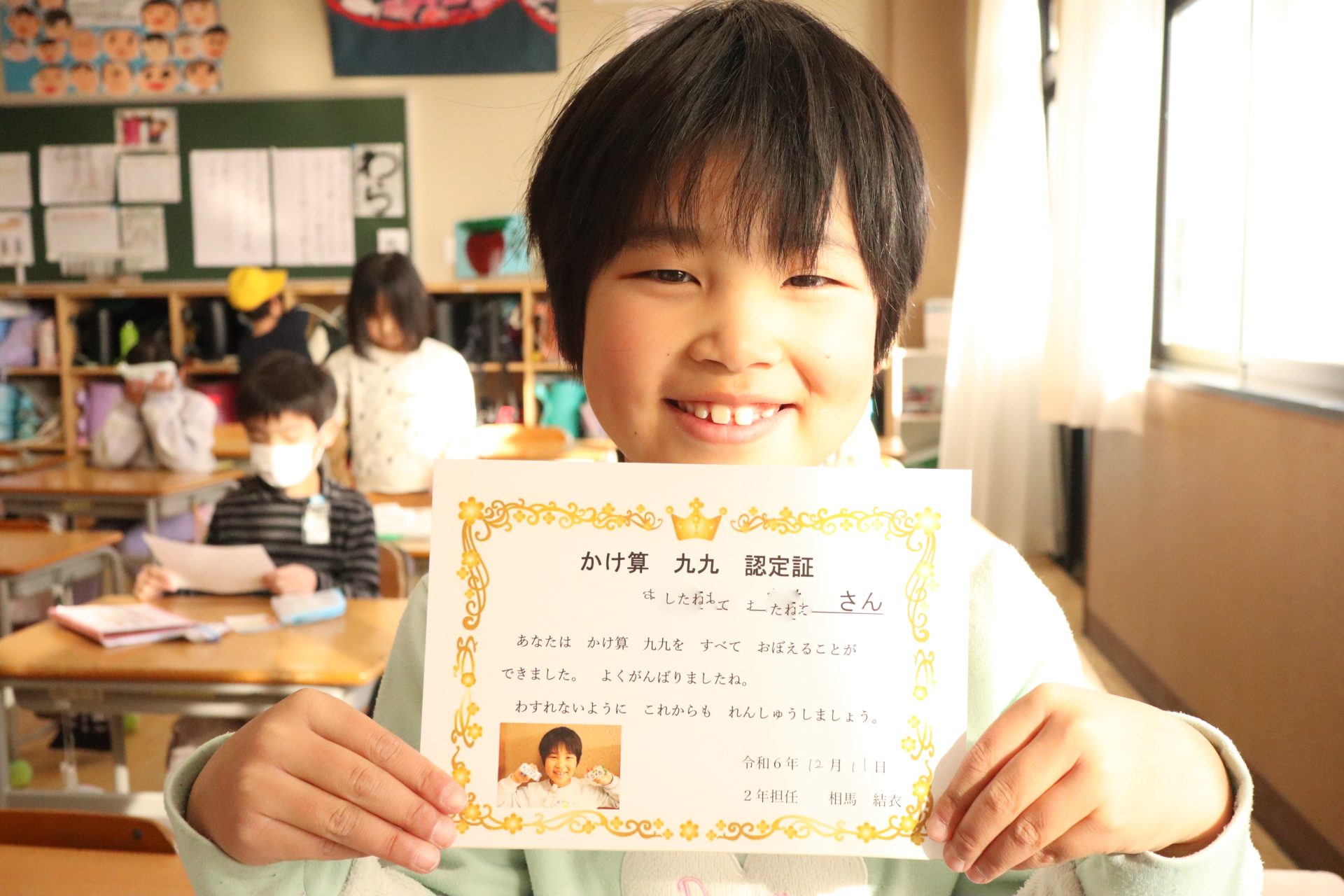 2024.12.13 2年生 今週の2年生 管理者学校 生活科の授業では、身近な物でおもちゃを作ってきました。そのおもちゃは1年生に遊んでもらえるように、いろいろと遊び方を工夫して考えてきました。今日は、2年生だけでおもちゃ屋さん、お客さんに分かれて練習してみました。実際に遊んでもらうと、直した方がいいところや場所の使い方などと改善点が出てきました。来週はその改善点を直し、冬休み前に1年生を招待しようと考えています。 今週もかけ算九九を頑張っています。ぞくぞくと合格者が増えてきました。 #2年生