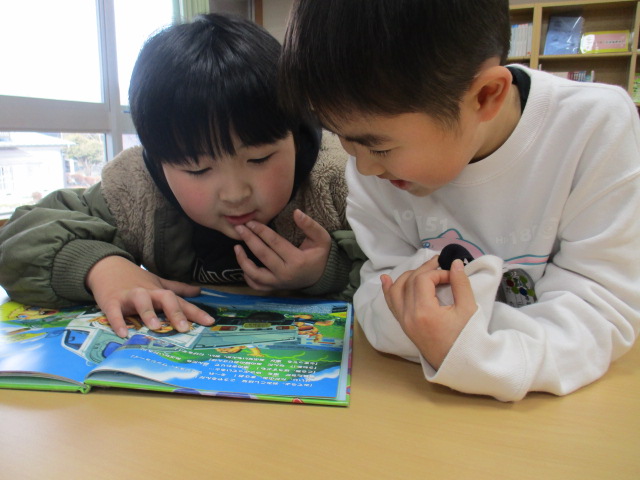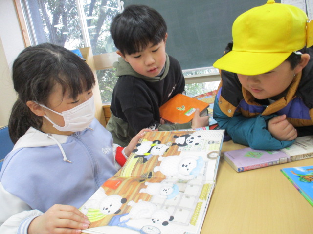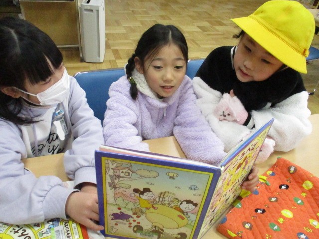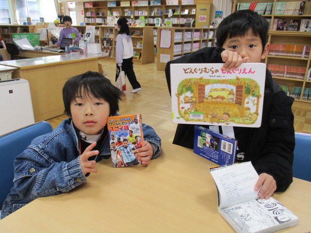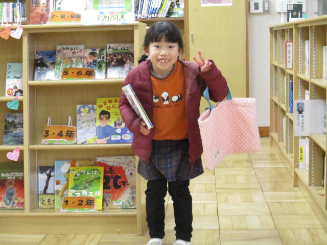図書室に行くと読みたい本がたくさんあるようで、一生懸命週末に読む本を選んでいます。