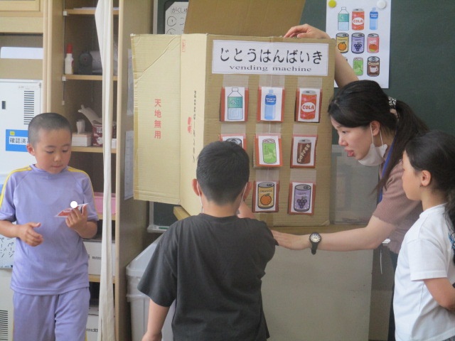 英語活動では大きな自動販売機が登場!?