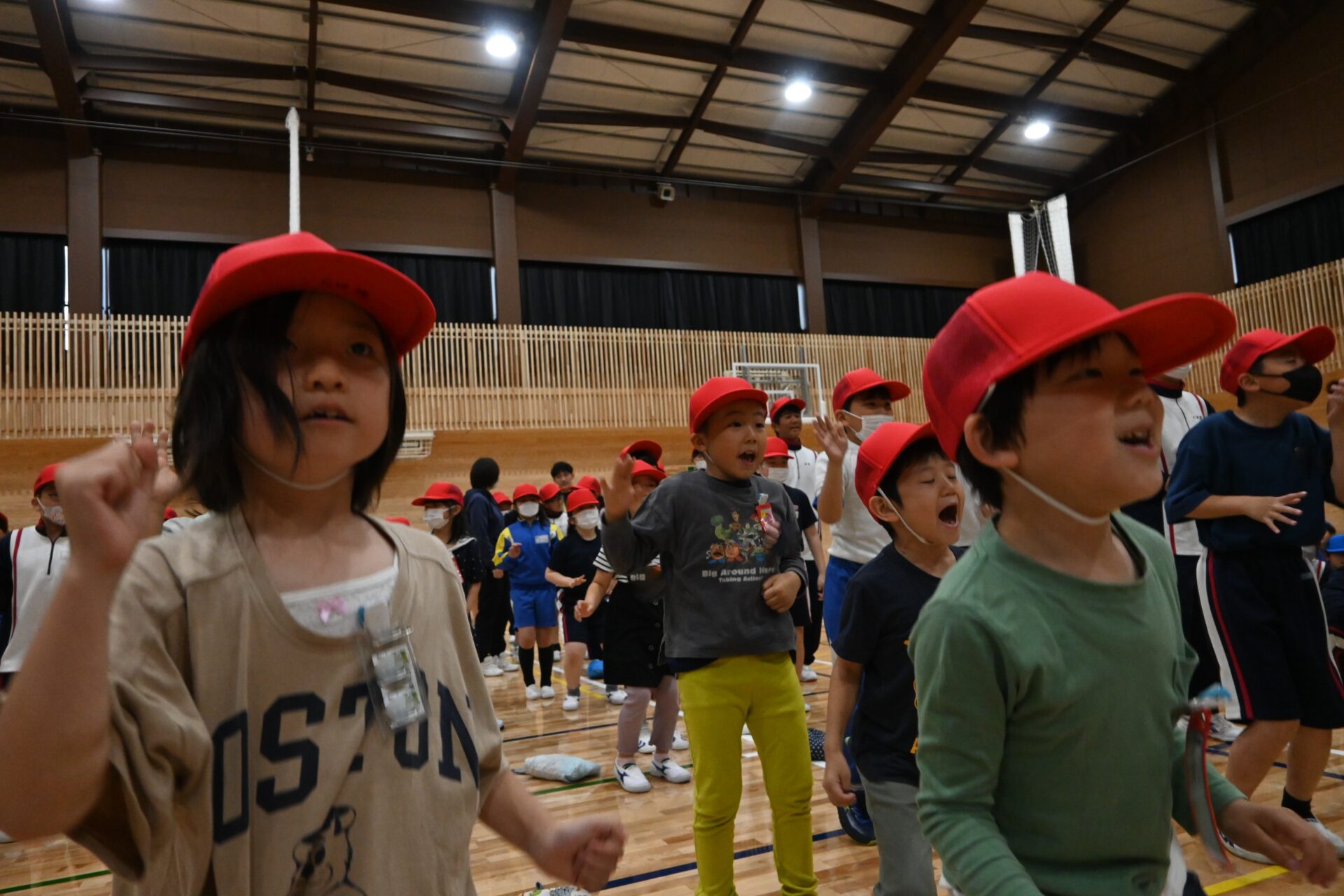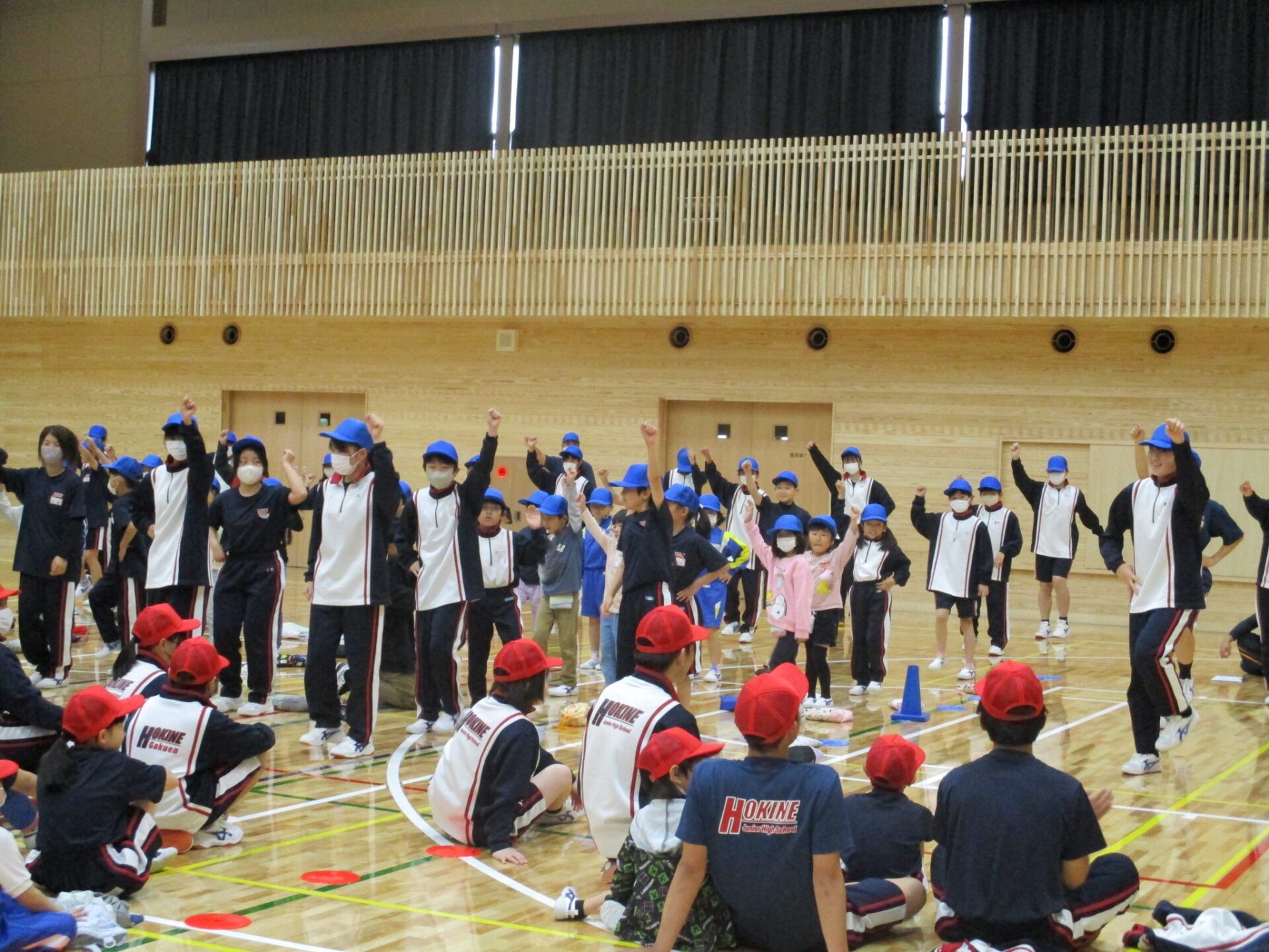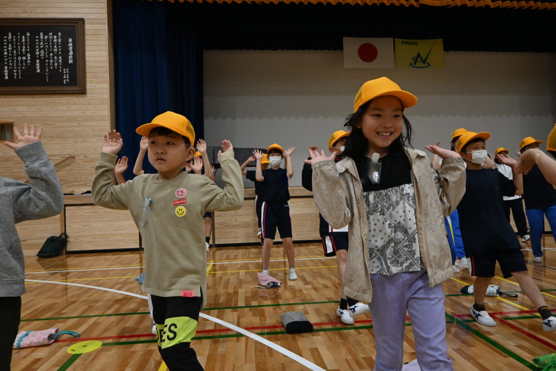 2024.05.13 2年生 体育祭まであと少し・・・ 管理者学校 いよいよ体育祭が今週の土曜日に迫ってきました。子供たちの練習にも力が入ります!今日もたくさん練習しました。 各団に分かれての応援練習。6年生を中心に各団練習に励みました。2年生も大きな声を出したり、一生懸命動いたりして頑張っています! 次の練習では、1~9年生が全員集まって、ジャンボリミッキーを踊りました。今度は9年生が中心となって下学年を引っ張ってくれています。2年生は楽しくジャンボリミッキーを踊っているので、体育祭当日も楽しく踊っている姿を見ていただきたいです。 #2年生