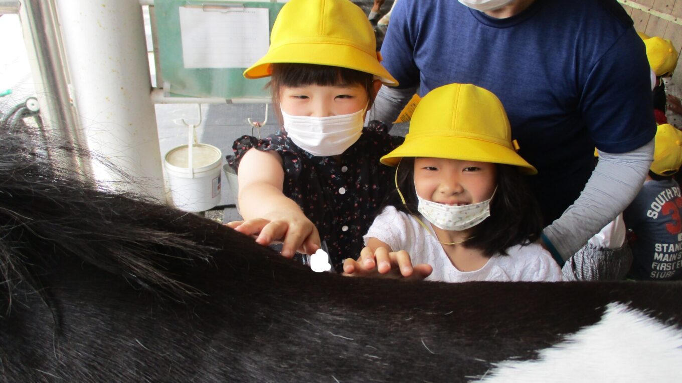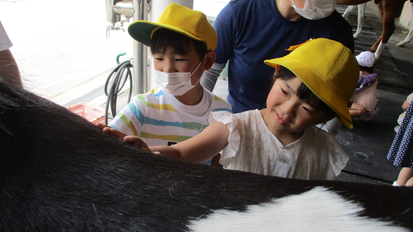 事前に「馬が驚かないように静かに見学して、お話をよく聞こう」という約束をした通り、あいさつは元気よく、見学は静かにすることができました。