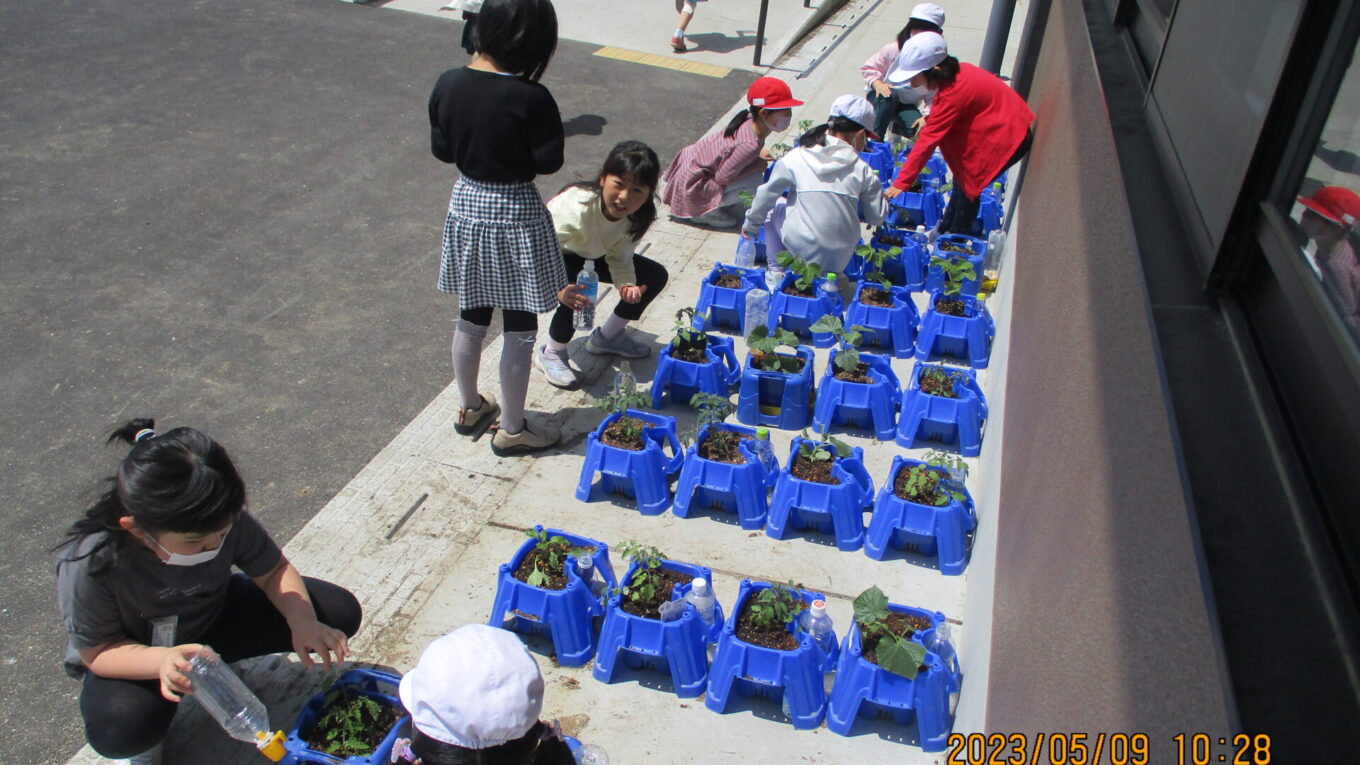 今日は早速、朝の準備の後や休み時間にお水をあげに行く姿が見られました。