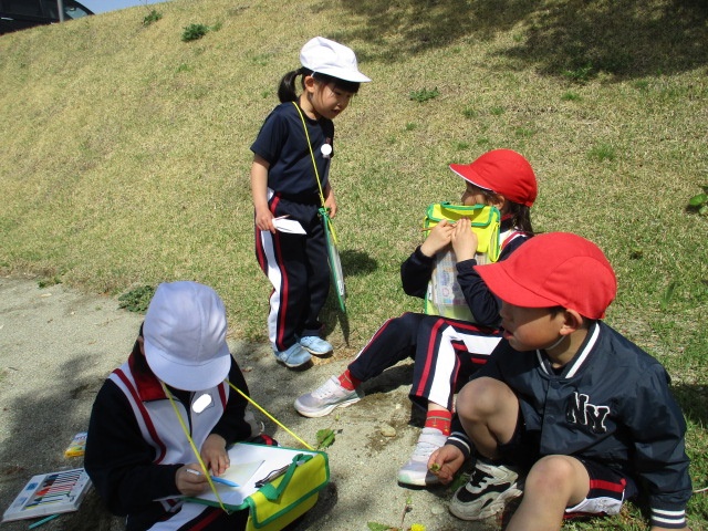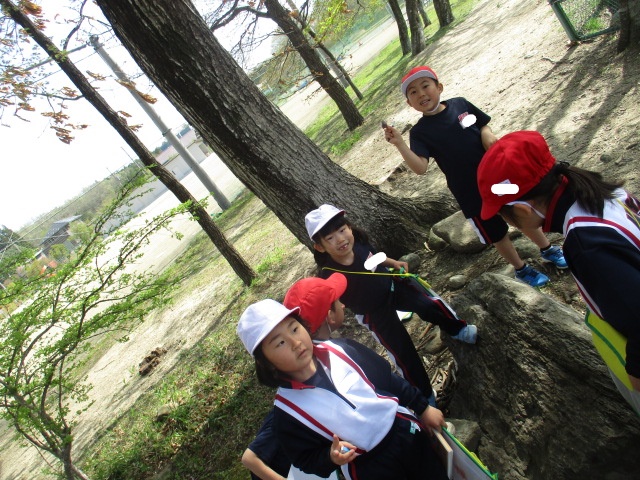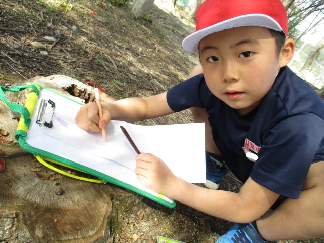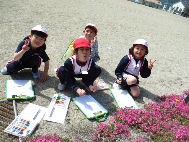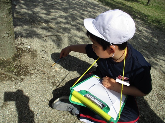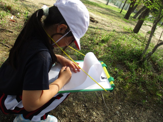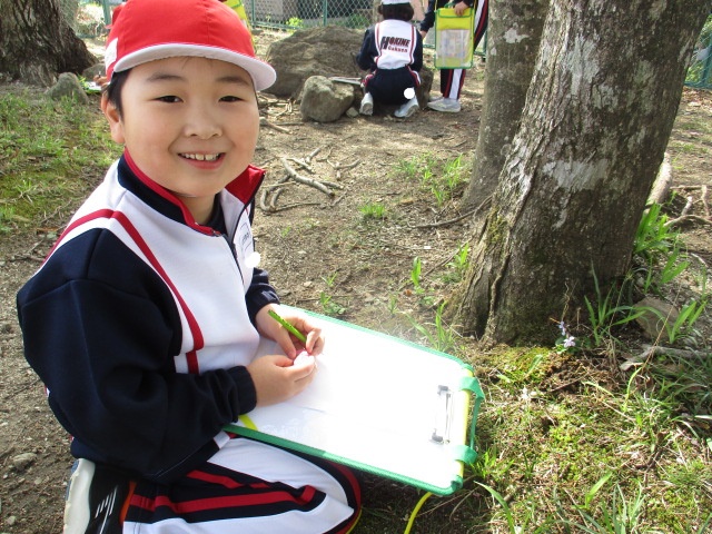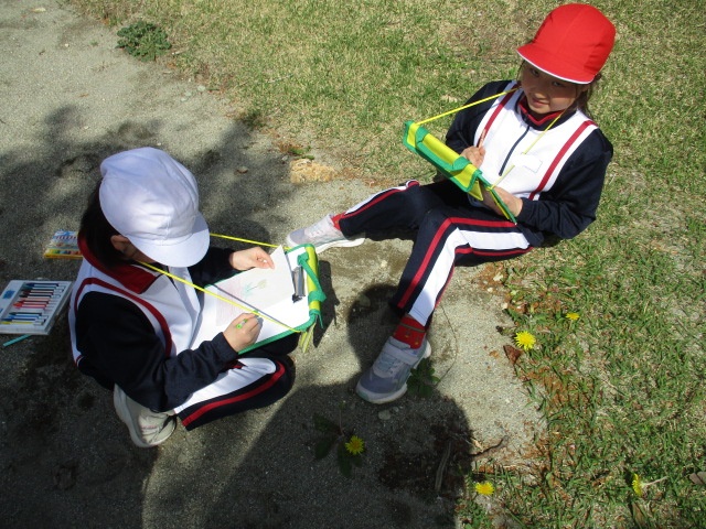 図工の時間に校庭に行って、春を感じるものを探して描きました!