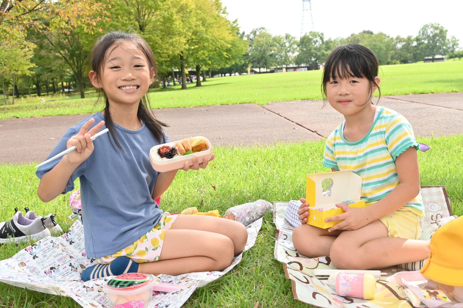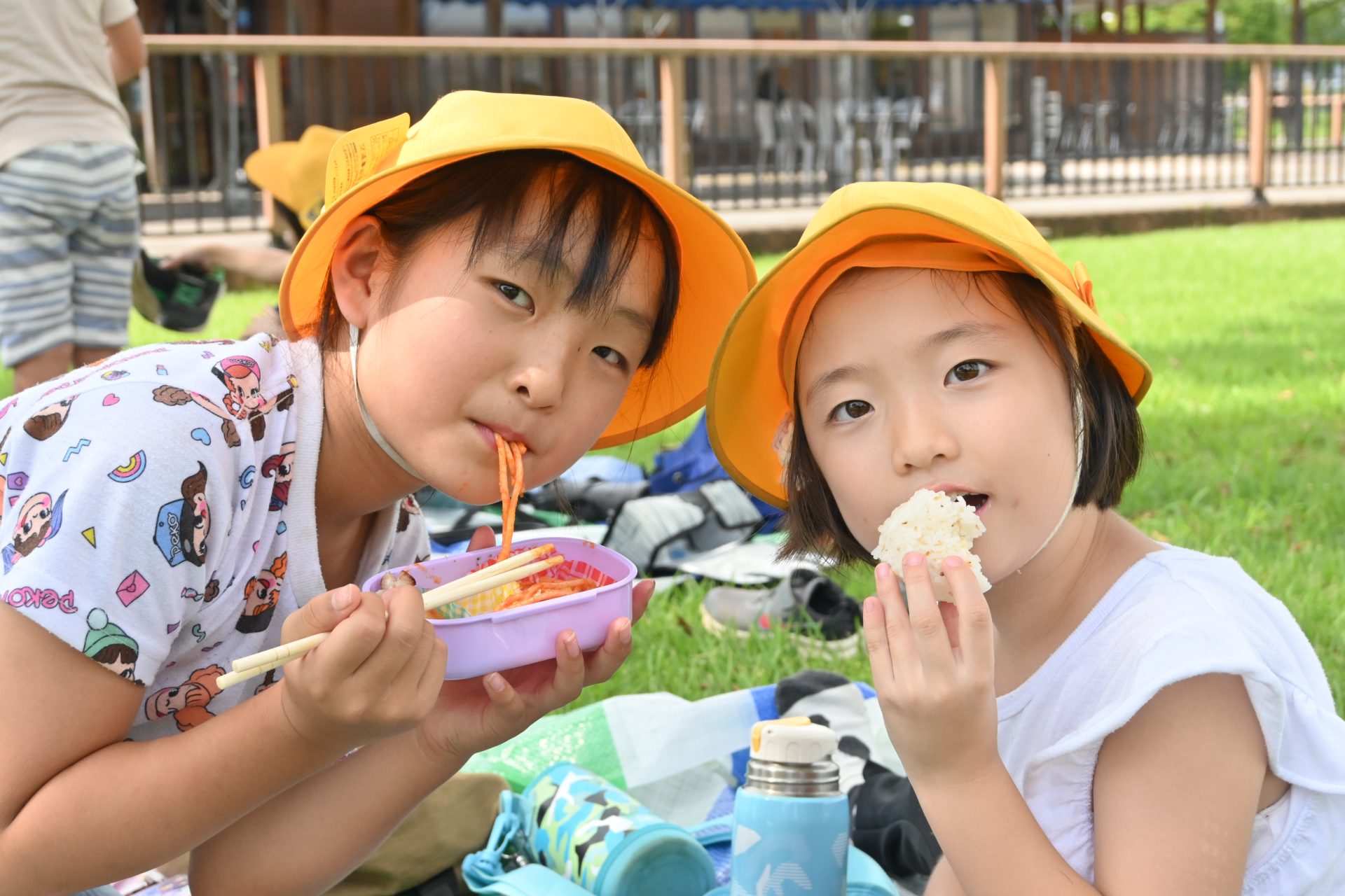 お昼は班ごとで、楽しくおしゃべりしながら、おいしいお弁当や好きなおやつを食べました。