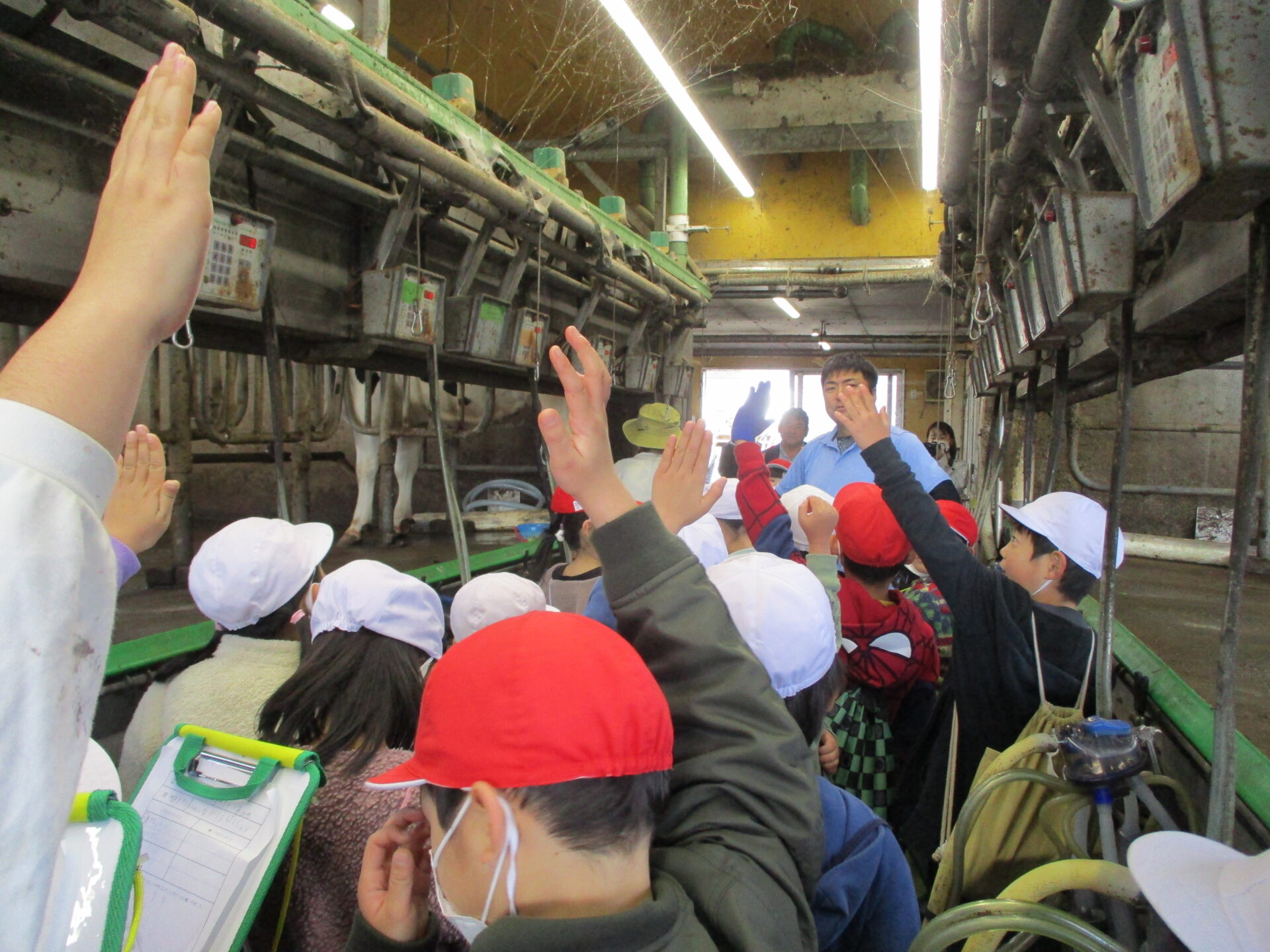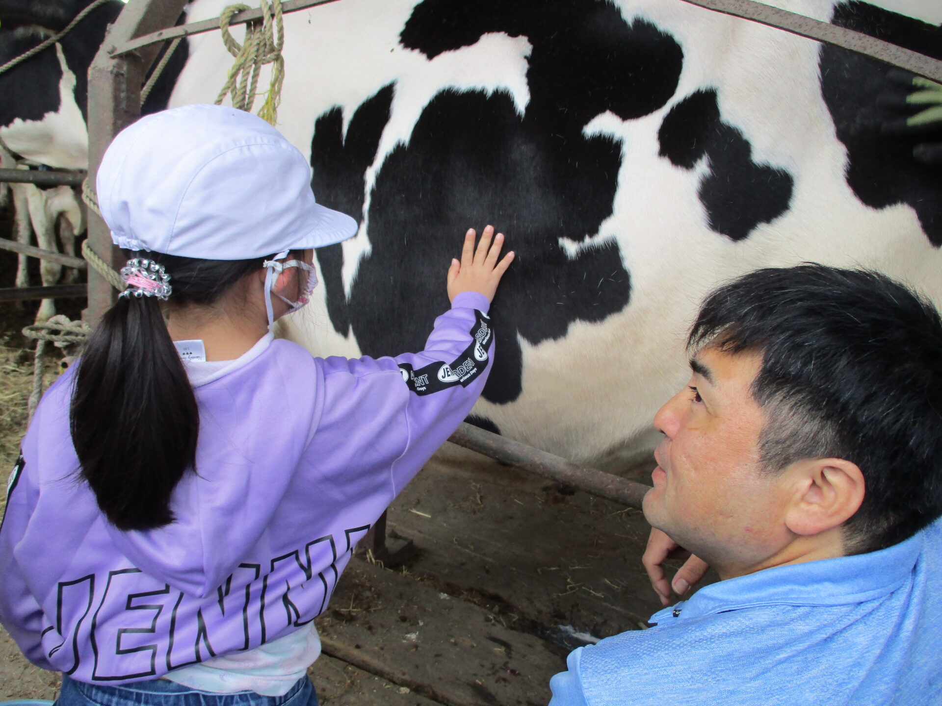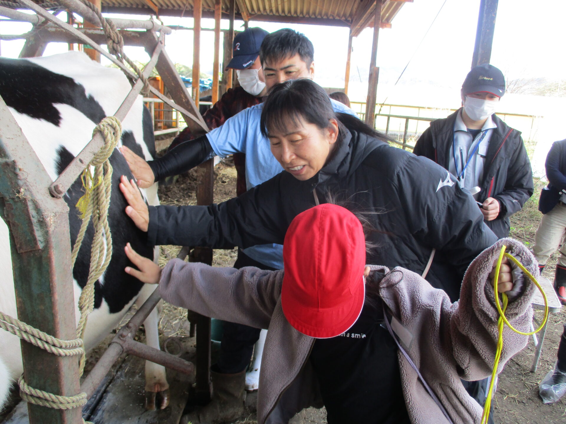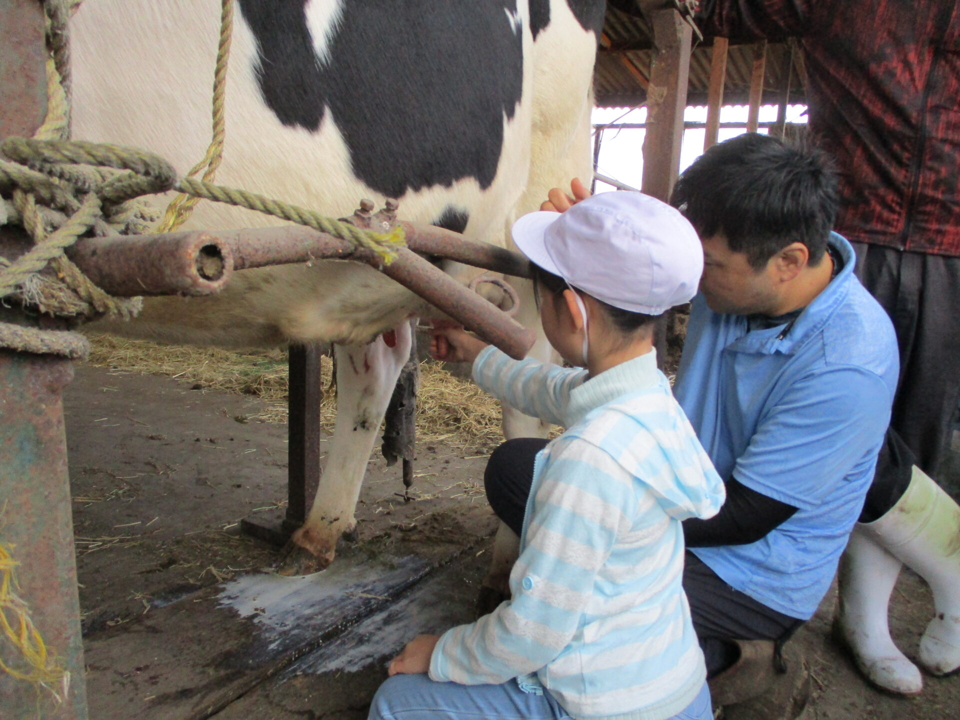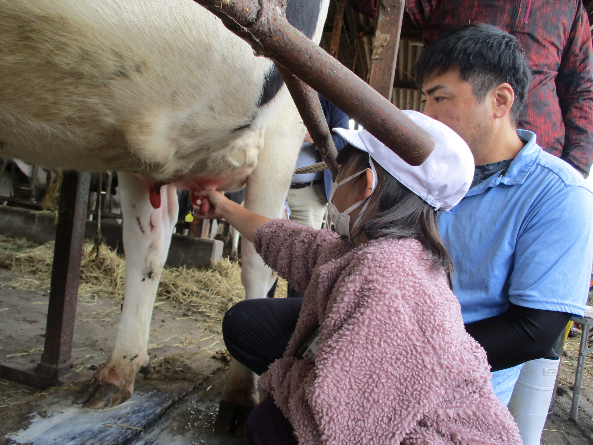 Nさんのお話の後、乳搾り体験をさせていただきました。