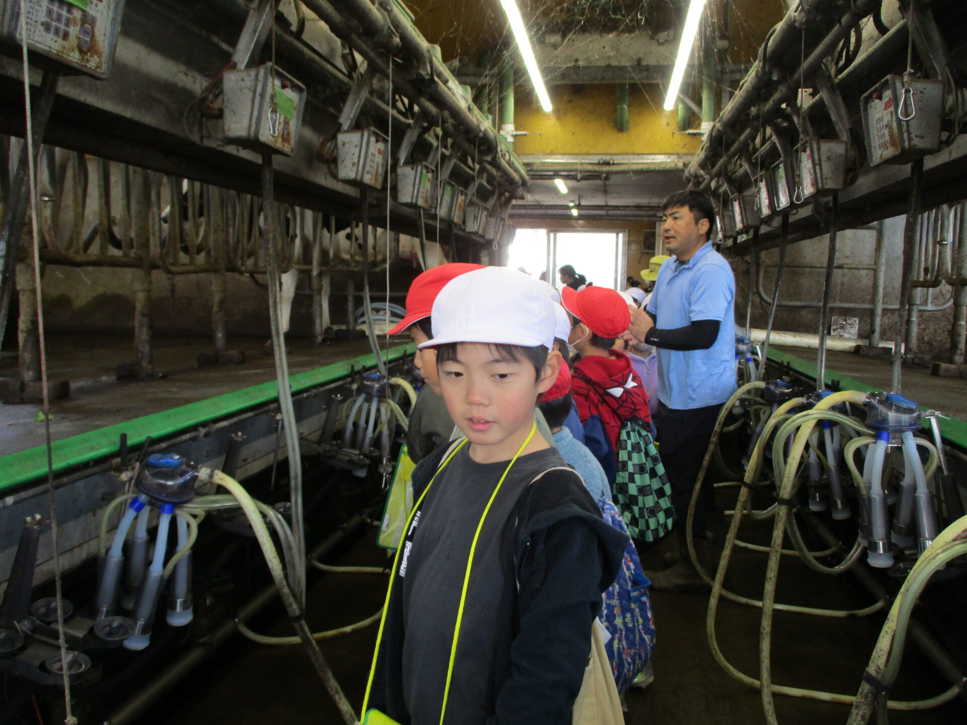 実際に牛乳を集める機械も見せていただきました。
