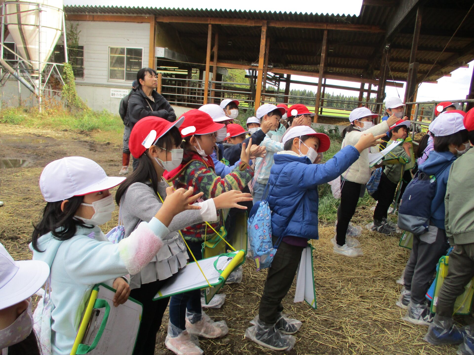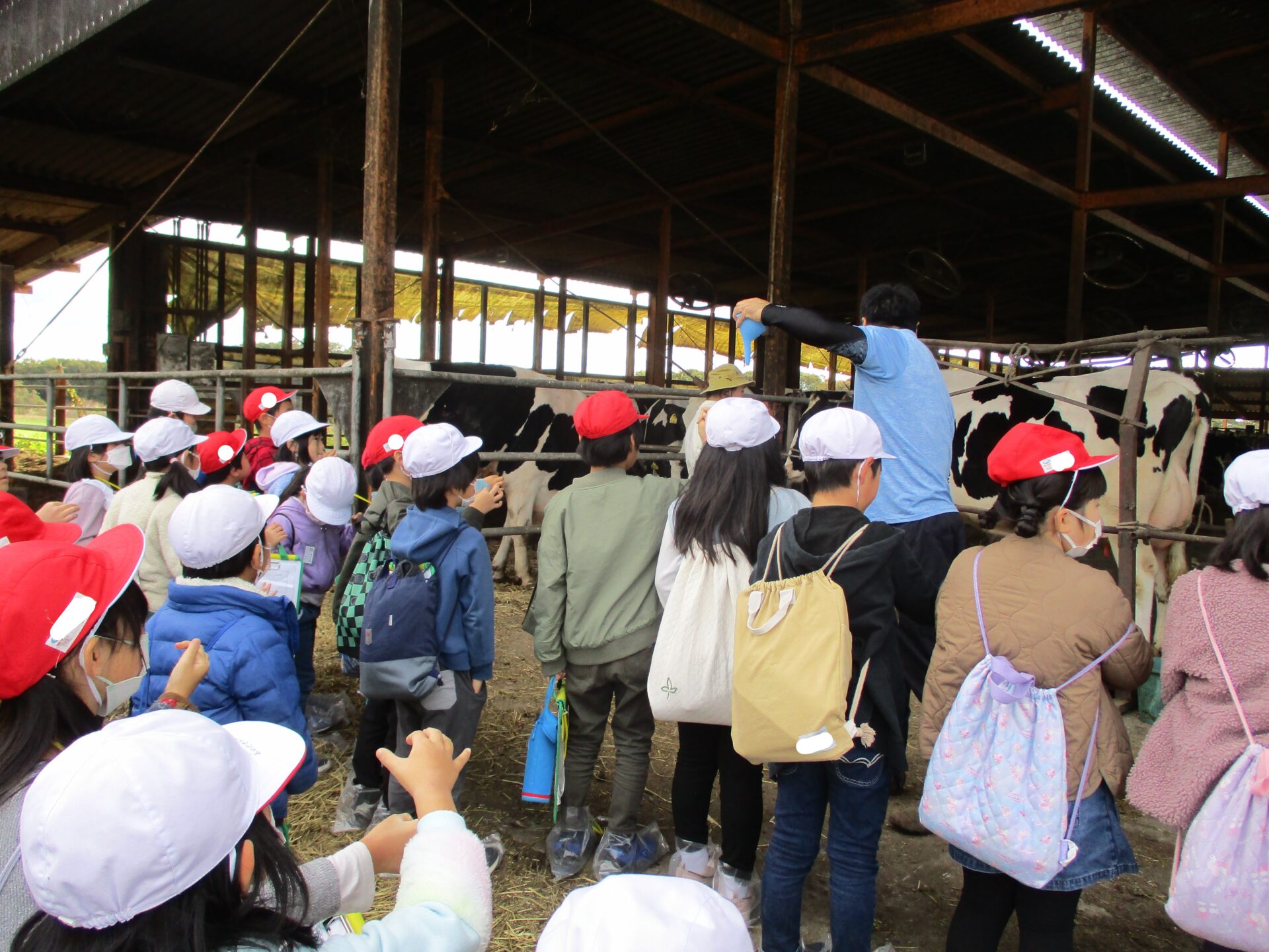 大きな牛がたくさんいて2年生は大喜びです。