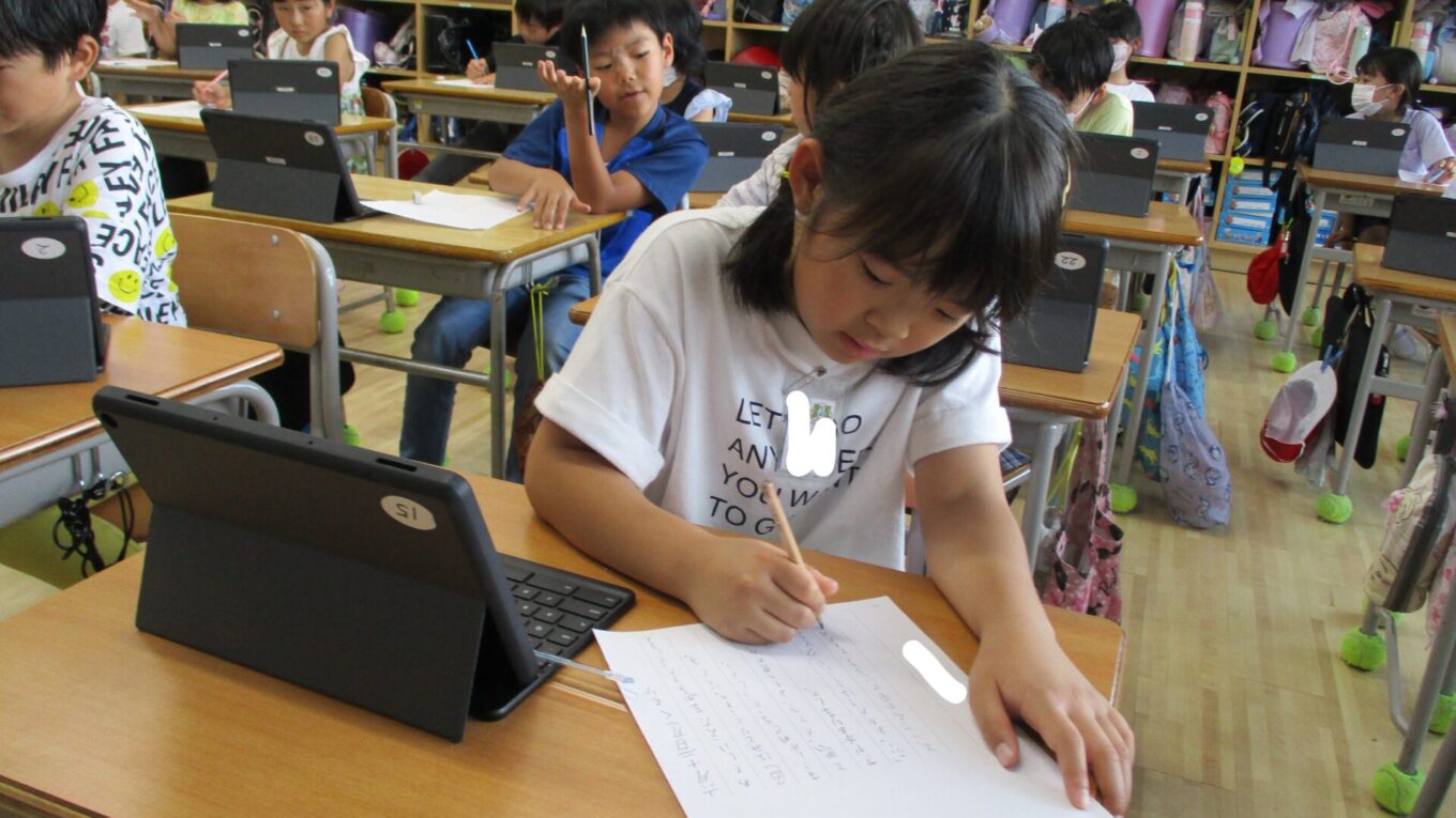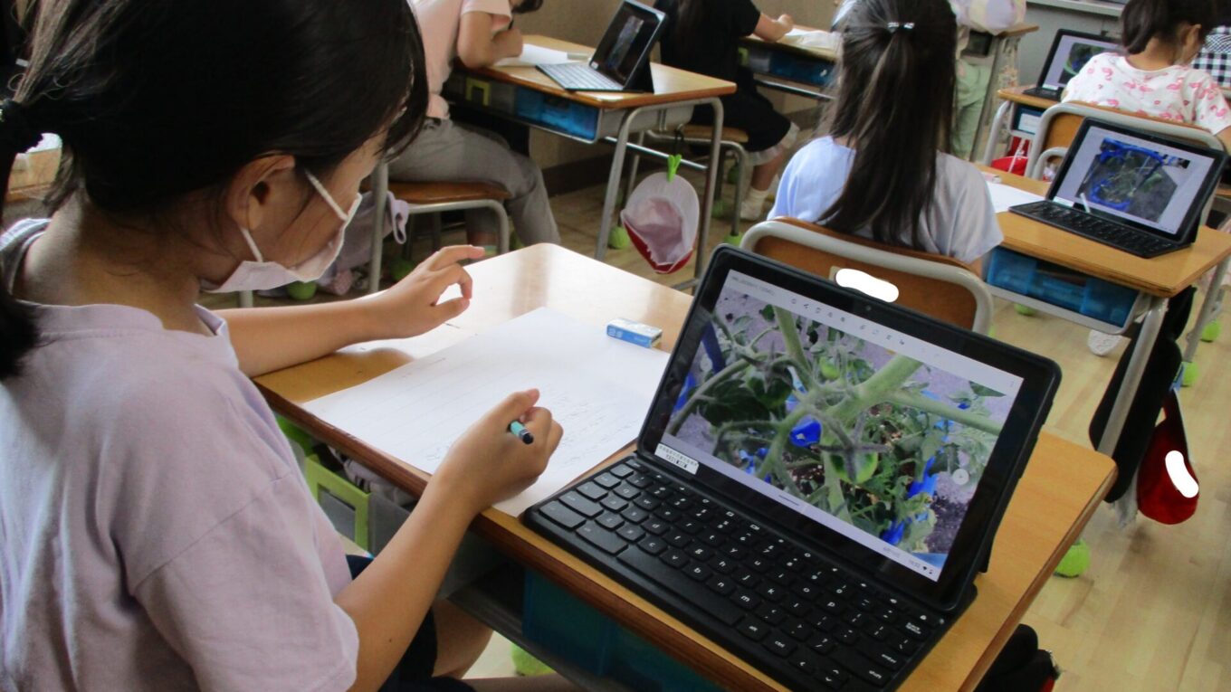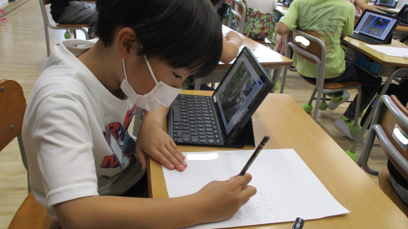 2023.06.13 2年生 目指せ、かんさつ名人! 管理者学校 今日の生活科の時間には野菜の観察日記を書きました。 長い文章を書くため、昨日タブレットで各自撮影した写真をよく見ながら文章を書き、絵も描いて仕上げました。 タブレットに保存した写真を開くことなど皆があっという間に覚えており、スムーズに活動を始めることができました。 皆、集中してプリントの最後の行までしっかり書けました。 写真を見ながら、野菜に触った感触や香りも思い出して文章にできた子もたくさんいます。 一生懸命に描いた絵も素晴らしいです!! これからも野菜のお世話と観察を頑張りましょう。 #2年生
