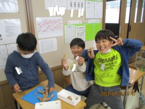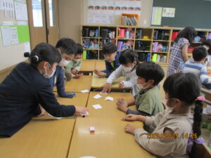 2023.05.23 2年生 雨の日の過ごし方 管理者学校 体育祭明けも全員の顔を見ることができてとても嬉しいです! 本日は雨でしたが落ち着いて過ごすことができていました。 午前中は話を静かに聞いたり、給食の片付けの時間には全員が周りを汚さずに綺麗に片付けることができました。 昼休みは室内で折り紙やねん土やお絵かきをして遊びました。 5時間目は英語で、身につけるものの名前を勉強しました。 洋服や靴のカードを使っての神経衰弱ではテンションも上がりました。 今週も頑張っていきましょう! #2年生