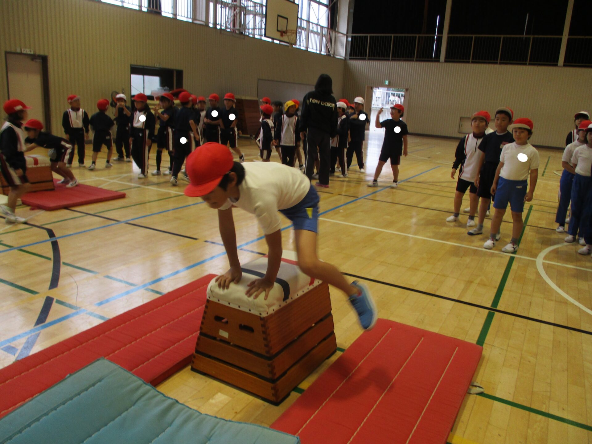 持久走大会の練習と並行して、箒根中学校の体育館では跳び箱の学習をしています。