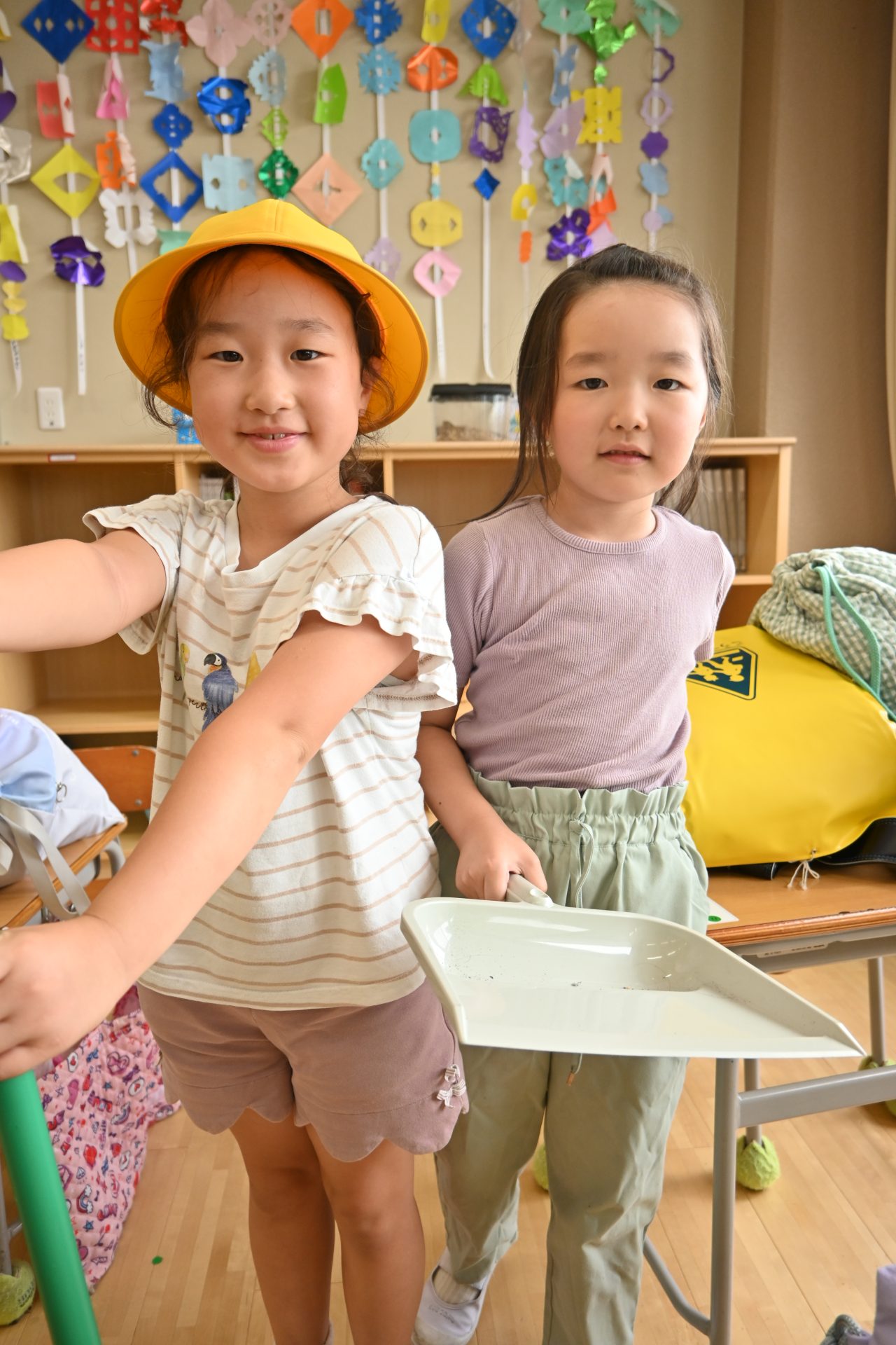 一生懸命掃除をする姿に、1年生の成長を感じました。