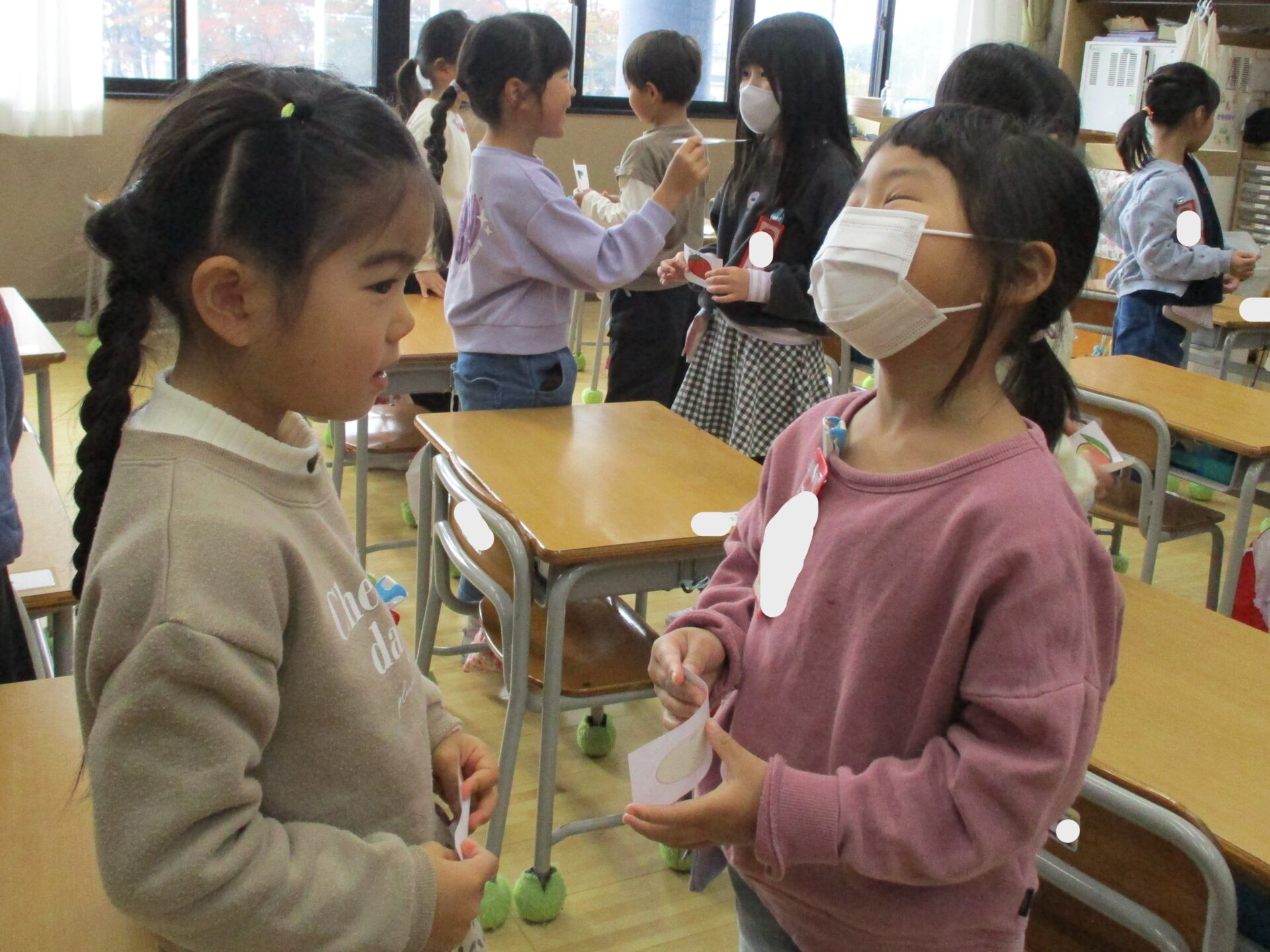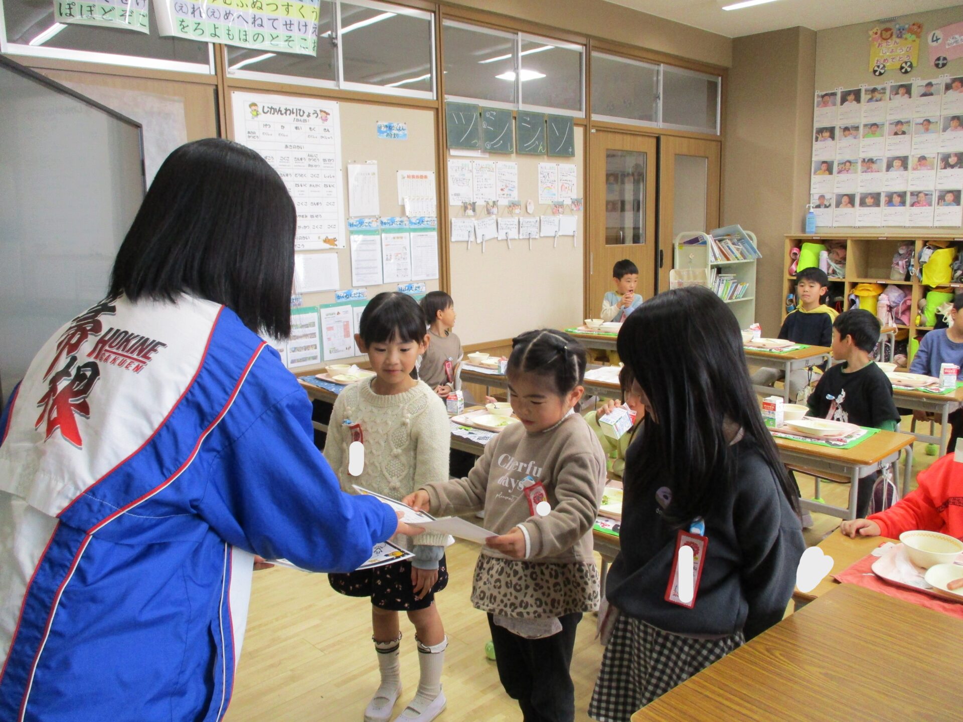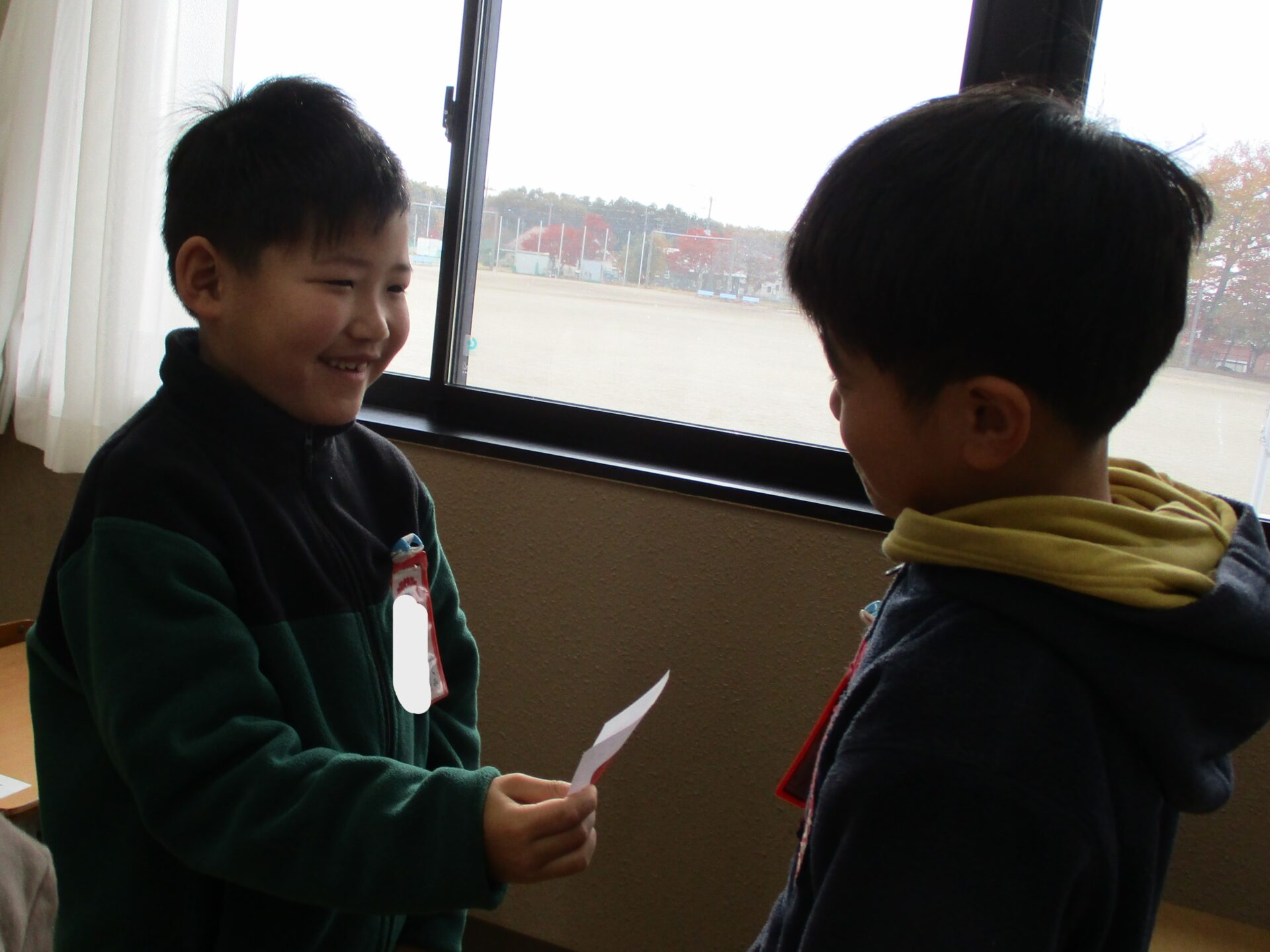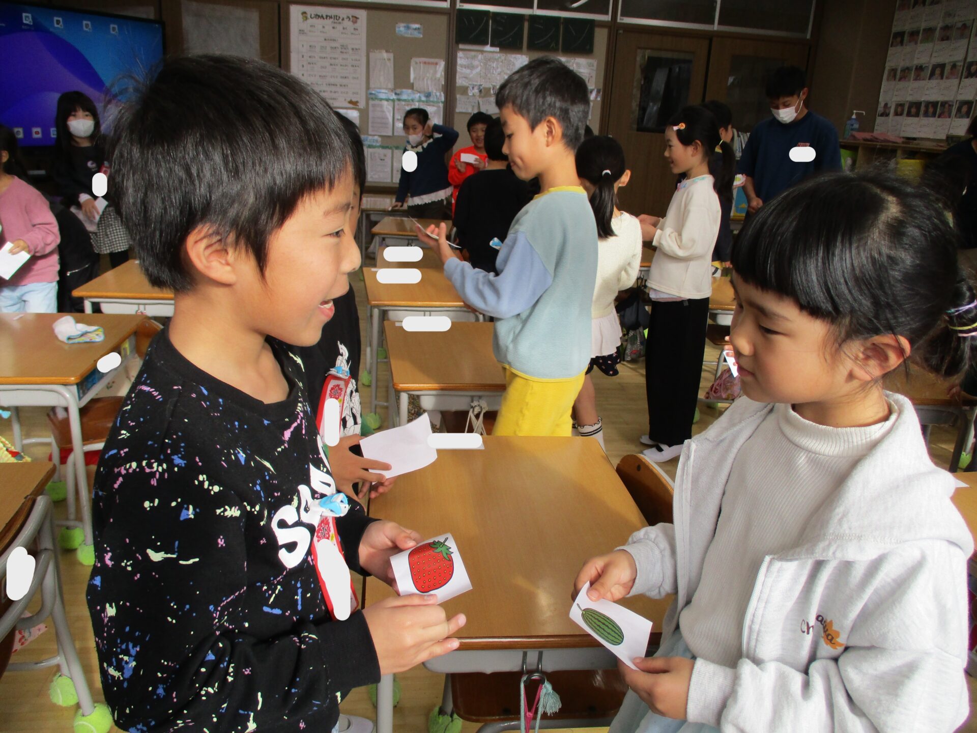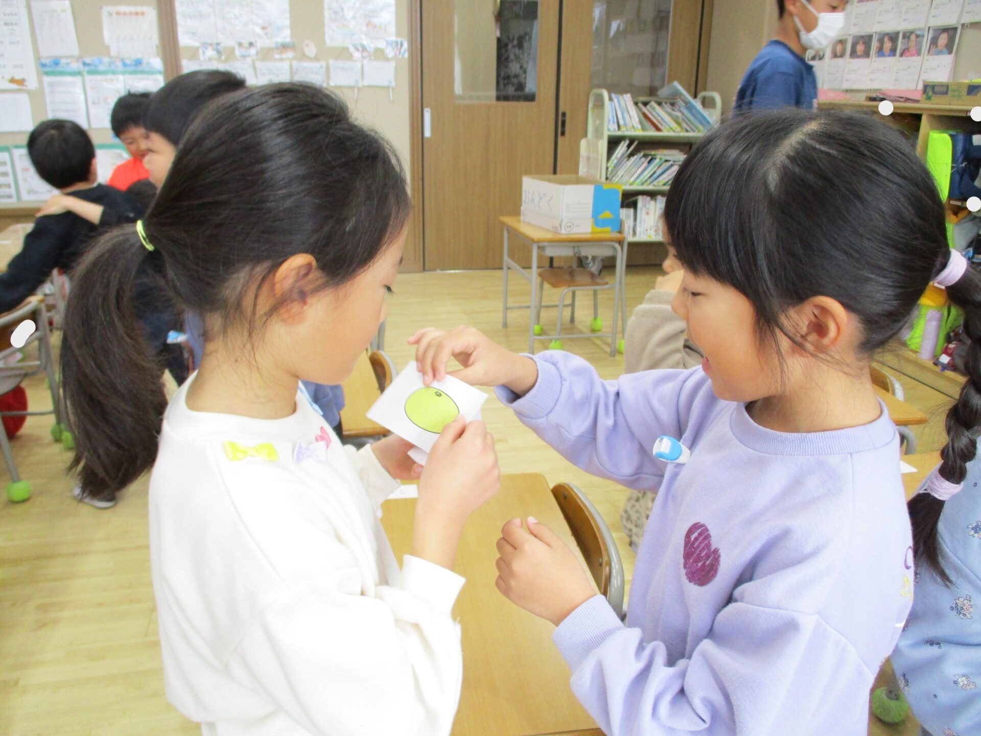 2025.11.13 1年生 たくさん本を読んだで賞 管理者学校 今日の英語では果物の名前を学習しました。 「What’s this?」とお友達に質問し、果物の名前を答えたらカードを交換しました。 8年生のお兄さんも大活躍の一日でした。 持久走もますます頑張っています。 給食の時間には、学習委員会のお姉さんから本をたくさん読んだ子が賞状をもらいました。 素晴らしいです🏆 これからもたくさん本を読みましょう📚 おうちの人と一緒に本を読んだり、読んだ本をおうちの人に教えてあげたりしてください✨ #1年生
