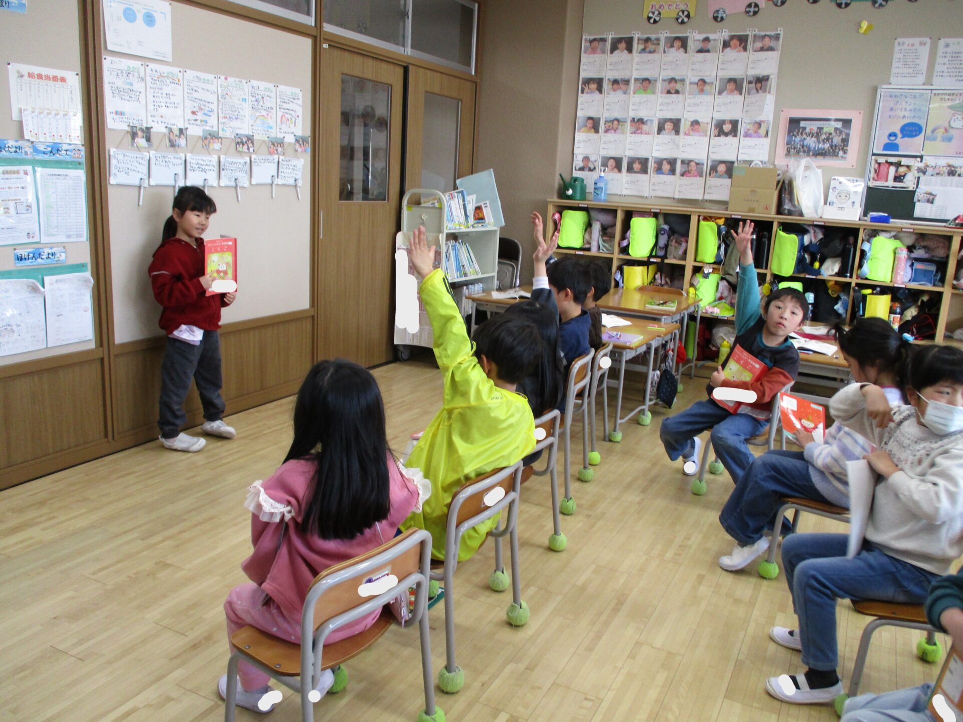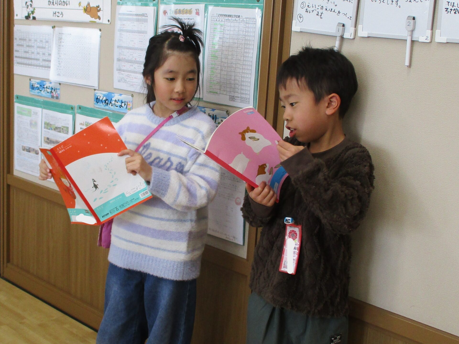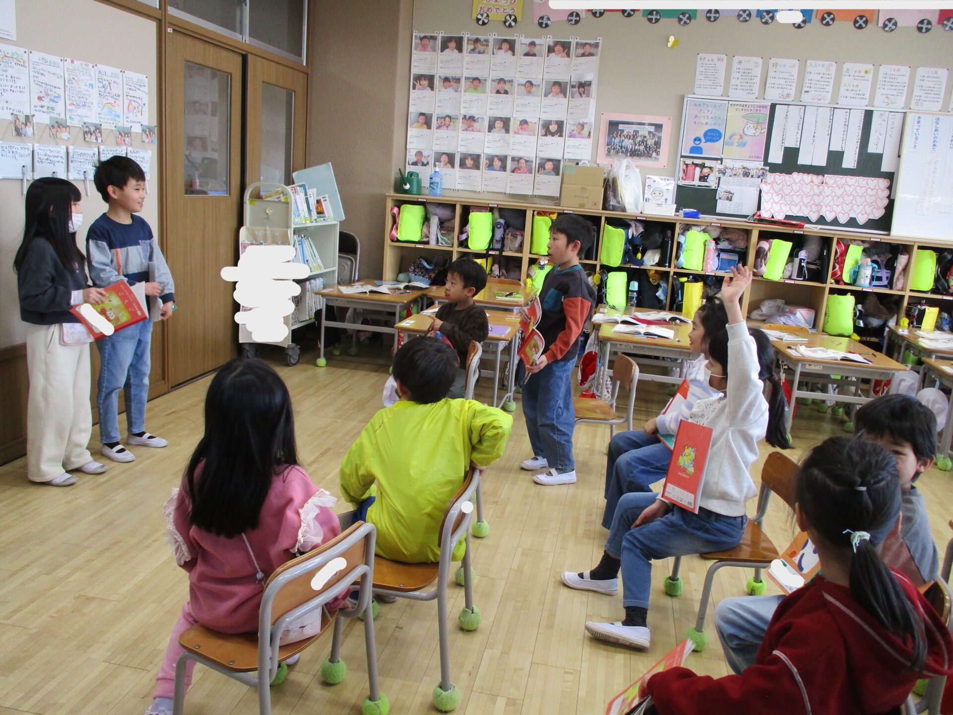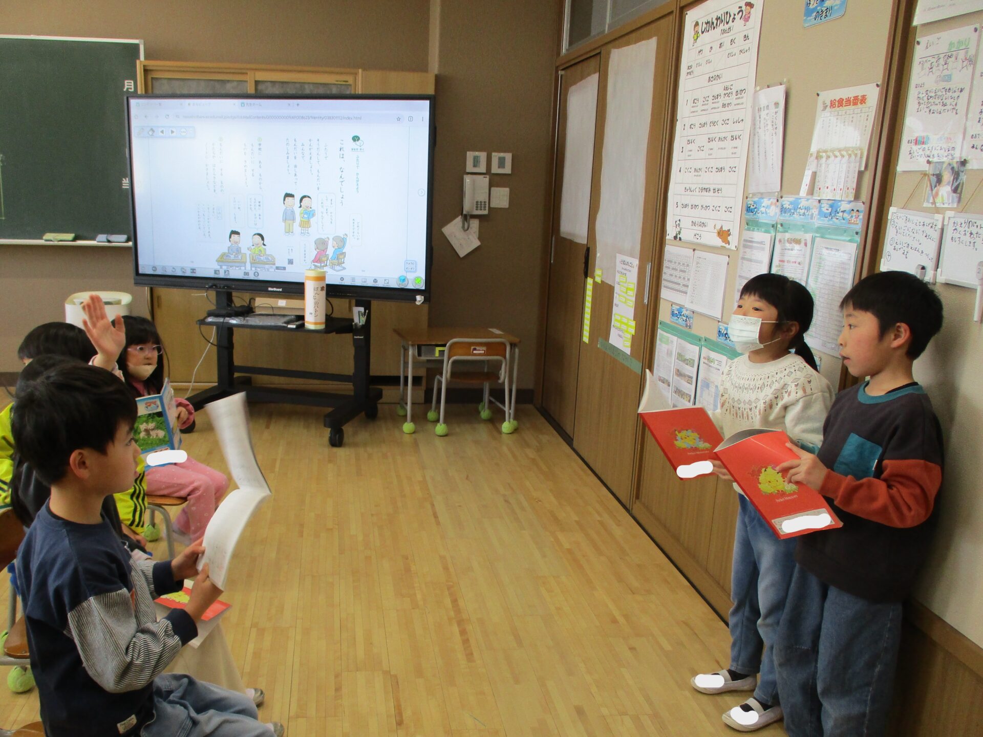 2026.02.05 1年生 クイズ大会 管理者学校 国語の「これは、なんでしょう」の学習でクイズ大会をしました。 学校にあるものの中から特徴を少しずつ言って「これは、なんでしょう。」というクイズをお友達と協力して作りました。 さらにたくさん問題を考えたペアもいたので、また楽しみたいと思います🎵 給食の配膳も自分たちで頑張っています! 学習面も生活面も頑張っている1年生です☺ #1年生