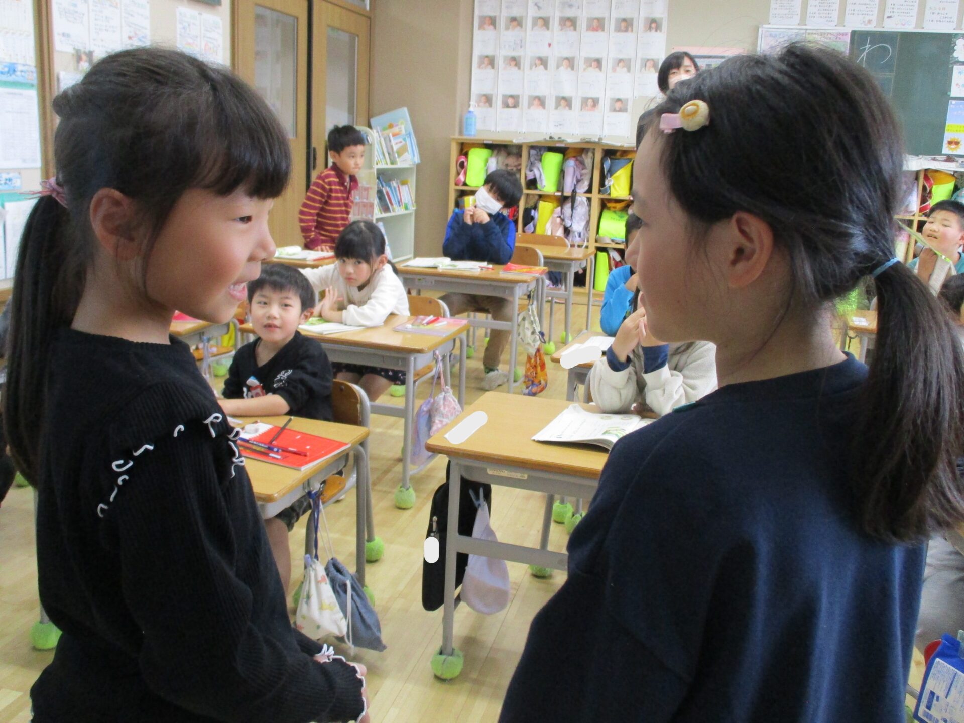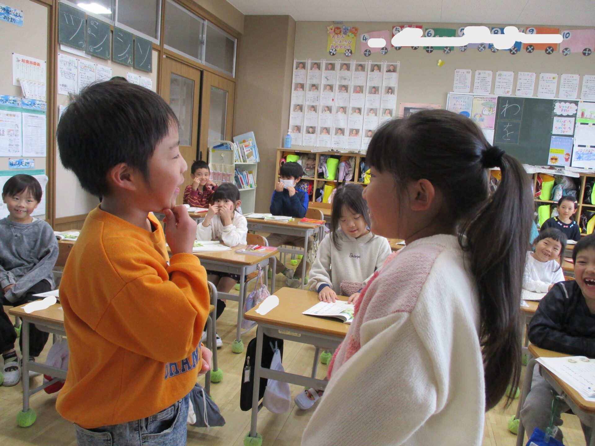 みんなの前に出て発表しました。